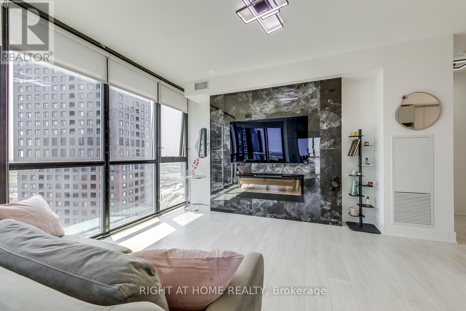 $669.97 MonthlyWelcome to this 2 Bed+2 full-Bath Corner Unit on the High Floor! This Popular Essex Model Comes Full Of Upgrades And Custom Features- Premium 24X48 Porcelain Backs-plash, Custom Kitchen Island With B/I Wine Rack And Waterfall Cabrera Marble Countertop., Custom B/I Fireplace Feature Wall Whats Audio Video Station Ready And Same Luxurious Tile As The Backs-plash, Led Under Cabinet Lighting And Elfs. 9 feet ceilings,Floor To Ceiling Windows,Unit Boasts 811 Sq.Ft+40Sq Balcony, Sit in the Balcony,Enjoy a Cup of Coffee And Gorgeous South East Views!!** EXTRAS ** 1 Owned parking , 1 Owned locker. Ideally situated just steps away from the VMC Subway, Transit, Hwy 400, Wonderland, shopping, and more. Its perfect For Modern Urban Living. (id:50787)
