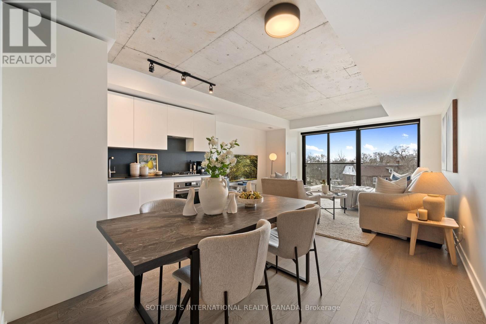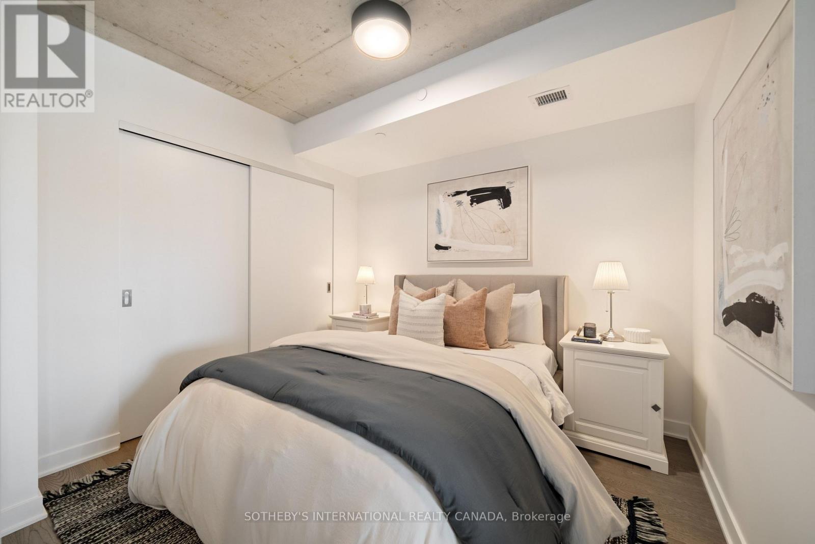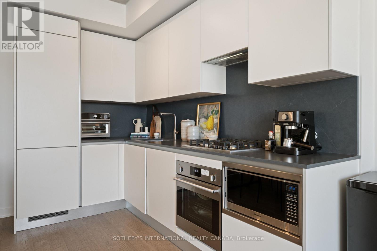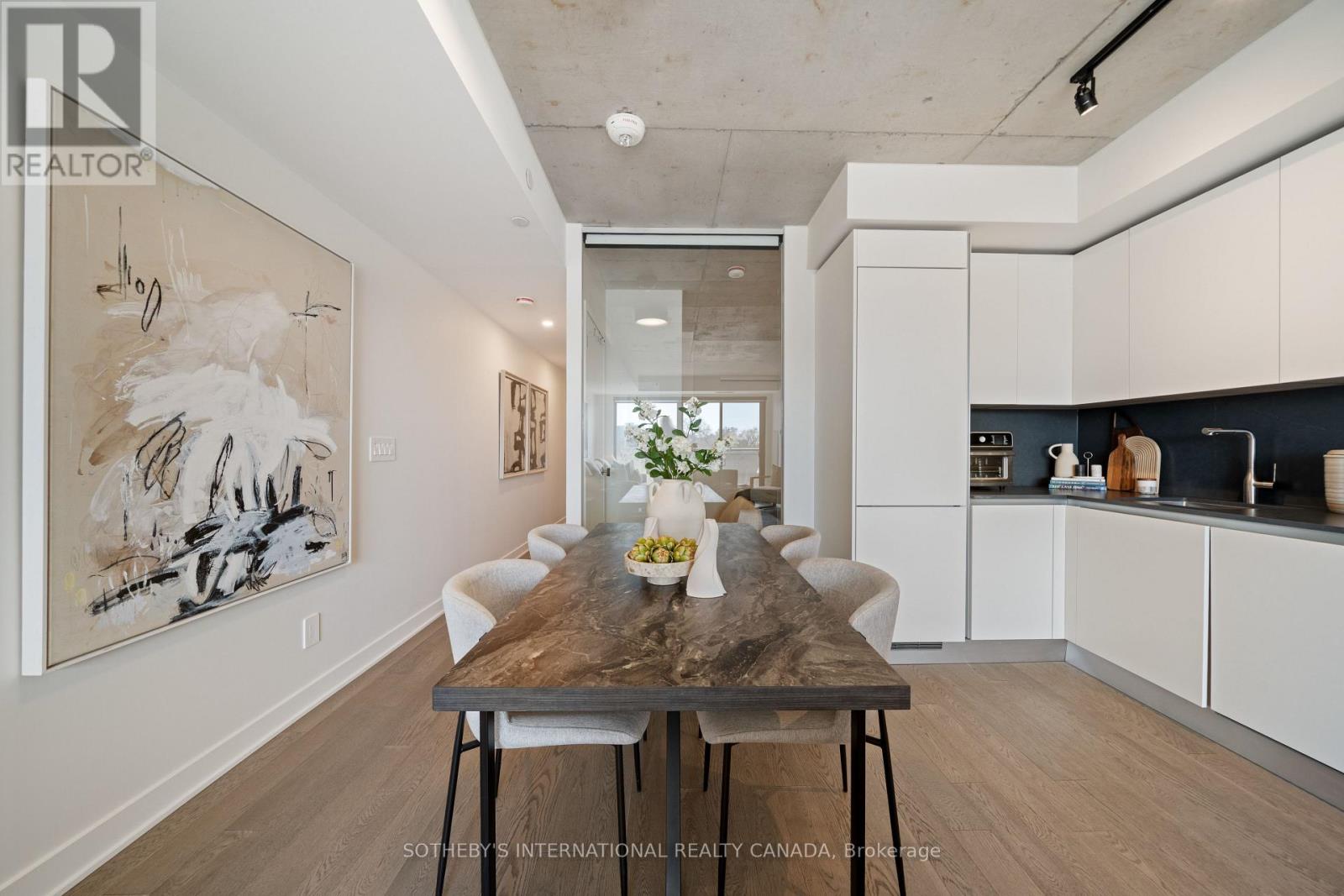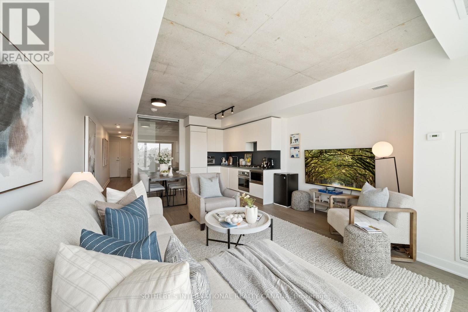 Welcome to Superkul's newest award-winning development at The Junction House- a striking blend of modern design and thoughtful urban living in one of Toronto's most vibrant neighbourhoods. This beautifully designed one-bedroom suite features soaring 9-foot ceilings and floor-to-ceiling windows, creating an airy, light-filled space with a south-facing exposure that maximizes natural sunlight throughout the day. Warm light wood flooring flows seamlessly throughout the unit, adding a natural elegance to the contemporary interior. The Scavolini kitchen is a standout, featuring sleek integrated appliances, a gas range, and refined finishes that balance functionality with sophisticated style. The generously sized living room offers unobstructed views, providing an inviting space to relax or host guests. The bright bedroom includes a large closet and continues the home's theme of comfort and natural light. The well-appointed four-piece bathroom is finished with clean, modern detailing for a spa-like feel. Residents of The Junction House enjoy exceptional building amenities, including a professional co-working space, a high-end fitness and wellness gym, and a stunning rooftop terrace complete with BBQs, fire pits, and a dedicated dog area-ideal for both relaxation and social gatherings. A perfect balance of style, comfort, and convenience in a landmark development. (id:50787)