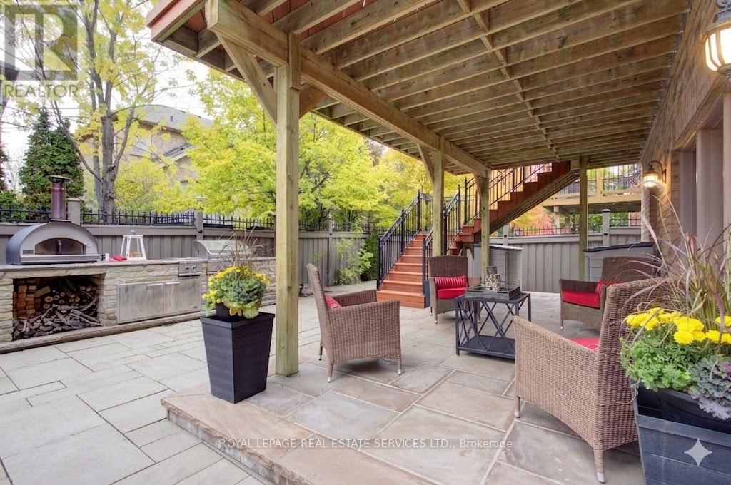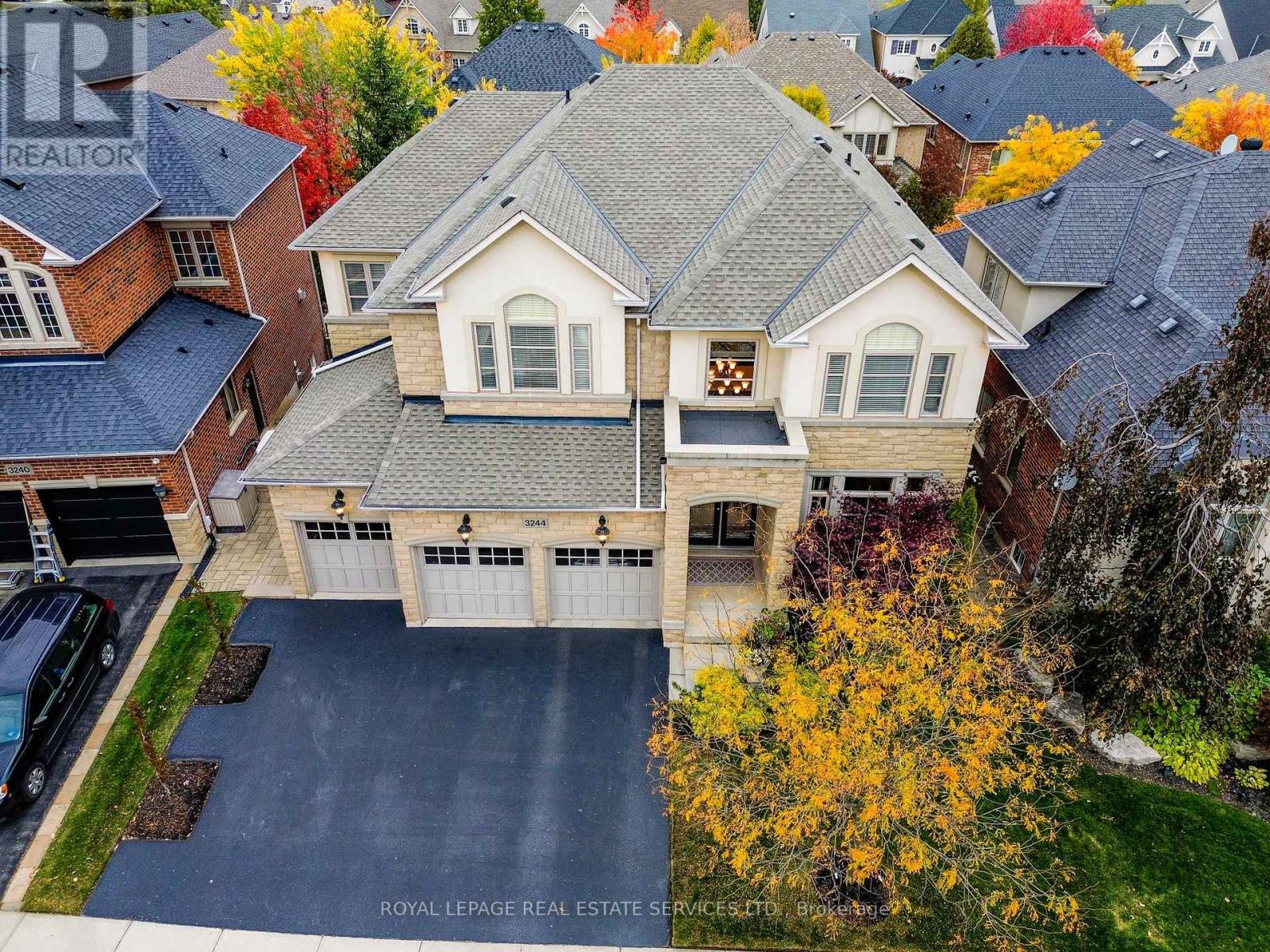 Welcome to 3244 Ribble Crescent, a stunning Fernbrook executive home with a rare triple car garage on one of Bronte Creek's most coveted streets. Surrounded by lush ravines, scenic walking trails, and Bronte Creek Provincial Park, this impressive residence offers over 6,000 sq. ft. of finished living space across three levels-perfect for growing or multi-generational families. A soaring two-storey entrance and grand foyer set the tone, leading to elegant principal rooms and an open-concept layout. The chef's kitchen anchors the main floor with solid surface counters, professional-grade Viking appliances, and an oversized breakfast area overlooking the Trex deck. The spacious family room features a Padova fireplace, with two main floor offices, imported stone floors, custom lighting, window treatments, richly stained oak flooring, and a matching grand staircase complete the level. Upstairs offers four oversized bedrooms, including a spectacular primary suite with a sitting area, spa-inspired ensuite, designer walk-in dressing room, and an additional walk-in closet. Three custom bathrooms, a spacious foyer with art niche, second-floor laundry, custom lighting, and stained hardwood floors complete the upper level. The professionally finished lower level features soaring 9' ceilings and a double French door walk-out with floor-to-ceiling windows. Highlights include a custom bar with Sub-Zero beverage centre, built-in oven and dishwasher, linear gas fireplace, 4pc bathroom, open-concept games area, theatre-style family room with imported seating, gym, large storage/utility room, and seasonal closet. The fully hardscaped backyard is a private oasis with a tranquil waterfall, outdoor kitchen with pizza oven, BBQ station, side burner and stainless storage, multiple flagstone patios, seating areas, and a grand Trex deck with wrought iron railings. Complete with full fencing, custom gates, poured stairs, beautiful landscaping, a new roof and garage doors. (id:50787)