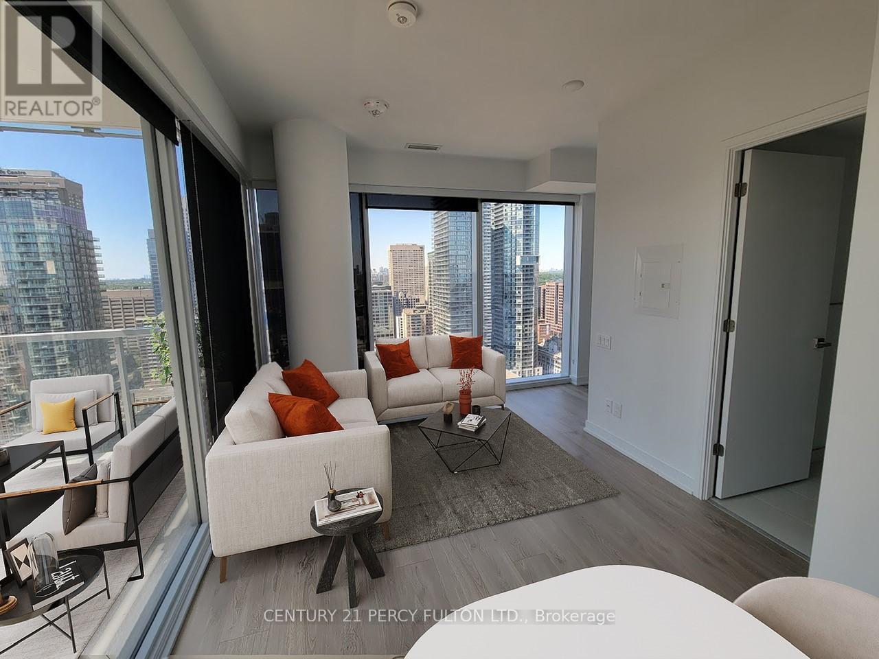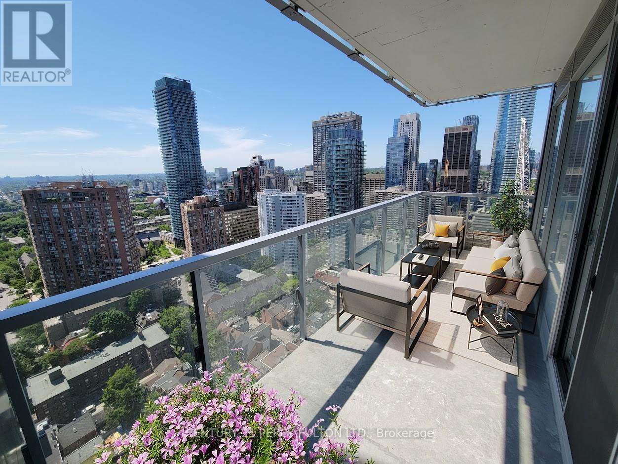 Luxurious "Gloucester On Yonge" In Core Downtown Location * Beautiful NW Corner Unit With Floor-To-Ceiling Window All Around * 9 Ft Ceilling * Clear West View * Tons Of Natural Sunlight * Direct Wellesley Subway Access * Walk Score 100 * Steps To U of T, TMU, Yorkville, Hospital Row & Financial Core * Modern Kitchen With Integrated Appliances & Cabinet Organizer * Huge Terrace Perfect For Summer Entertainment * Air Clean Filtration System * Water Leak Detection System * One Locker Space Included * 24/7 Concierge, Outdoor Pool, BBQ Terrace, World Class Gym, Guest Suites, Theatre, Library & Lounge. Photos with AI-generated furniture. (id:50787)