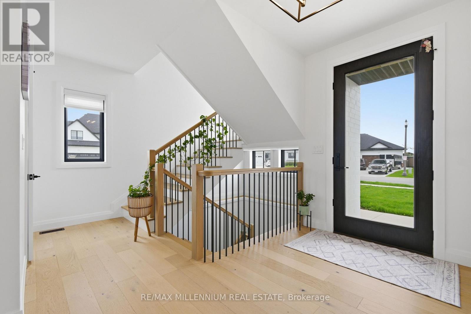 LOOK NO FURTHER! ***Premium 72 ft wide **CORNER LOT** in one of Belle River's most desirable neighborhoods.**Built in 2022**This stunning detached 2-storey family home offers approximately** 3,090 sq ft** of living space (MPAC) and features 5 spacious bedrooms and a double car garage. Conveniently located just a 2-minute drive to Belle River Public School, making it perfect for growing families.Step inside to a bright and welcoming layout highlighted by a custom-designed family-size kitchen with premium cabinetry, a large granite island, and ample counter space. The home also features a separate butler's pantry with its own sink, ideal for additional prep and storage.The kitchen opens seamlessly to a cozy family room with a fireplace, perfect for relaxing evenings. Elegant coffered ceilings add a touch of luxury and craftsmanship to the space.The main floor also includes a powder room and sliding doors leading to a fully fenced backyard with durable vinyl fencing-perfect for entertaining or family enjoyment.Upstairs, you'll find 4 generously sized bedrooms along with a convenient second-floor laundry room. The primary suite features his-and-hers closets with custom shelving and a luxurious5-piece ensuite bathroom. An additional 3-piece bathroom completes the upper level.This modern farmhouse-style home boasts a beautiful exterior with full brick veneer and stucco accents. The unfinished basement (approx. 1,442 sq ft) offers endless potential to create your dream space.Enjoy nearby amenities with Lakeview Park West Beach just a 5-minute drive away, perfect for summer days, and Belle River District High School only 3 minutes away.AND Located 9 Minutes to Highway 401Must see! An exceptional home in a fantastic family-friendly neighbourhood (id:50787)