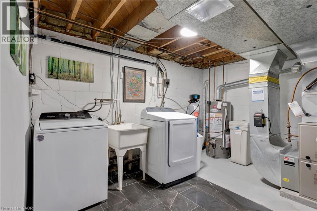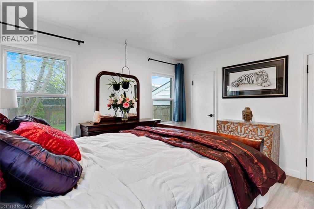Welcome to 34 Christopher Drive, a beautifully updated mid-century brick bungalow offering the perfect balance of timeless character, modern upgrades and exceptional versatility in the heart of Cambridge. Set on a generous approx. 48 × 105ft. lot, this move-in-ready home has thoughtful improvements throughout and parking for up to four vehicles. The bright and inviting main level features elegant finishes, decorative plaster ceilings and a cozy wood-burning fireplace, creating a warm and welcoming living space. Two spacious bedrooms, an updated kitchen, and a beautifully appointed 3-piece bathroom with a relaxing soaker tub provide comfortable everyday living. The fully finished lower level offers flexibility with a separate side entrance, second kitchen, large laundry room and two additional rooms with closets and windows. This layout is ideal for extended family, guests, a home office or potential income suite opportunities. Step outside to a private backyard oasis featuring mature landscaping, perennial gardens, fruit trees and no rear neighbours, providing a peaceful setting for relaxation and entertaining. A covered patio, fire pit area, and charming cedar shed enhance the outdoor space, while the large rear gate offers convenient access for boat or trailer storage and potential future outdoor projects. Major upgrades including new windows, furnace, air conditioning, hot water tank and a durable steel roof offer long-term comfort and peace of mind. Ideally located just minutes from Downtown Galt, the Grand River, Churchill Park, schools, shopping and transit. This home offers exceptional convenience in one of Cambridge’s most desirable central neighbourhoods. The backyard gardens feature apple trees, grapes, raspberries, rhubarb, mulberries, and mature plantings, creating a truly unique and productive outdoor retreat. This is a rare opportunity to own a beautifully maintained bungalow on a spacious lot with income potential in a prime Cambridge location. (id:50787)