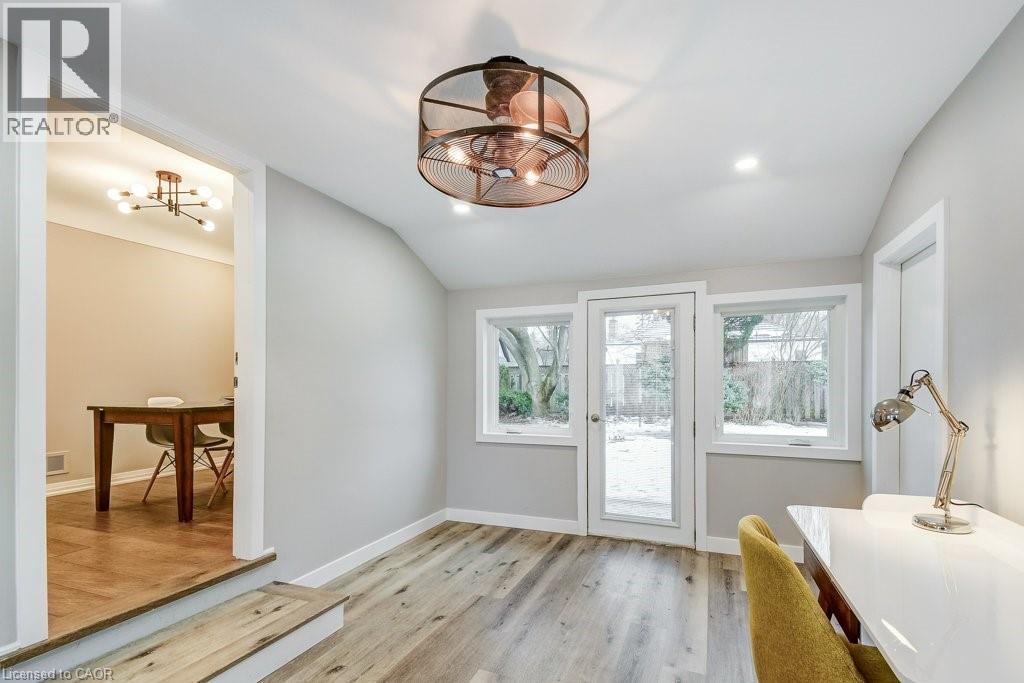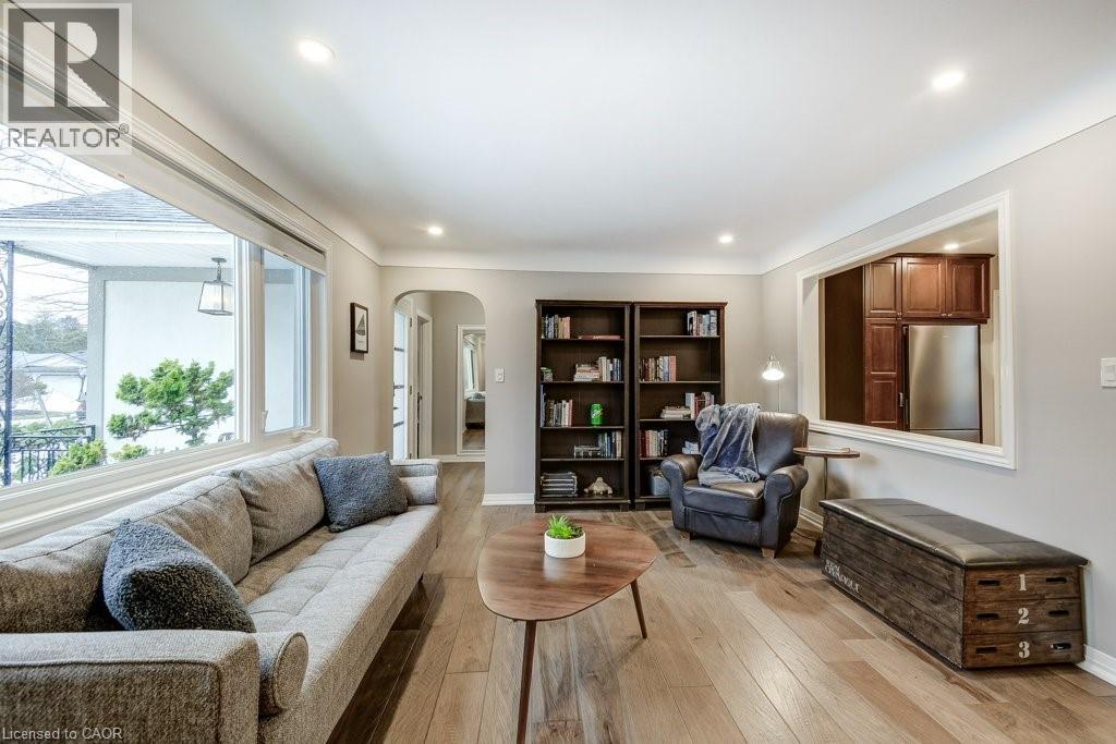 Charming Ancaster bungalow on a premium wide lot. Nestled on a quiet street with mature trees and gorgeous curb appeal, just a short walk to Wilson Street and local town amenities. The open-concept layout features a bright kitchen and dining area overlooking the private backyard, perfect for everyday living and entertaining. The spacious great room with a cozy gas fireplace connects the main living spaces and showcases a large picture window overlooking the peaceful street. Stunning hickory hardwood flooring adds warmth and character throughout the main living areas. A generous heated sunroom offers valuable additional living space and includes access to the garage, backyard, and front yard, ideal for relaxing, indoor gardening, or working from home. Located close to parks and scenic escarpment trails, and just minutes to the Hamilton Golf and Country Club, this home is perfect for those who appreciate both nature and suburban convenience. Easy access to Hwy 403, Hwy 6, and the Lincoln M. Alexander Parkway makes commuting simple. (id:50787)
