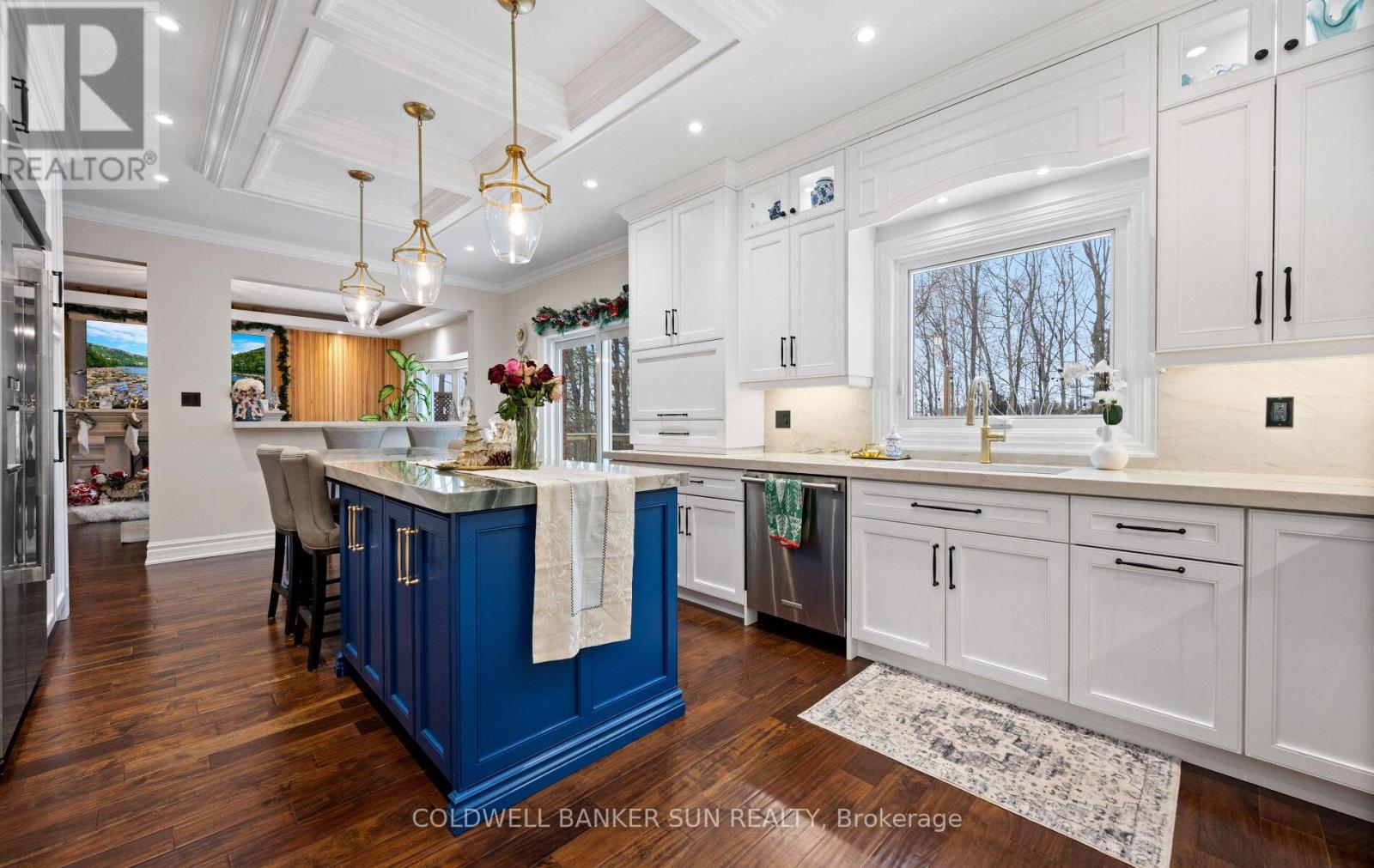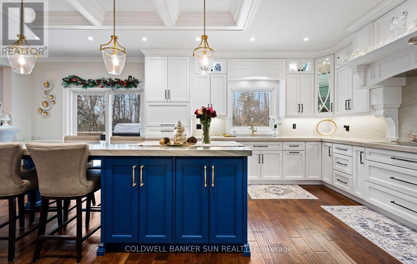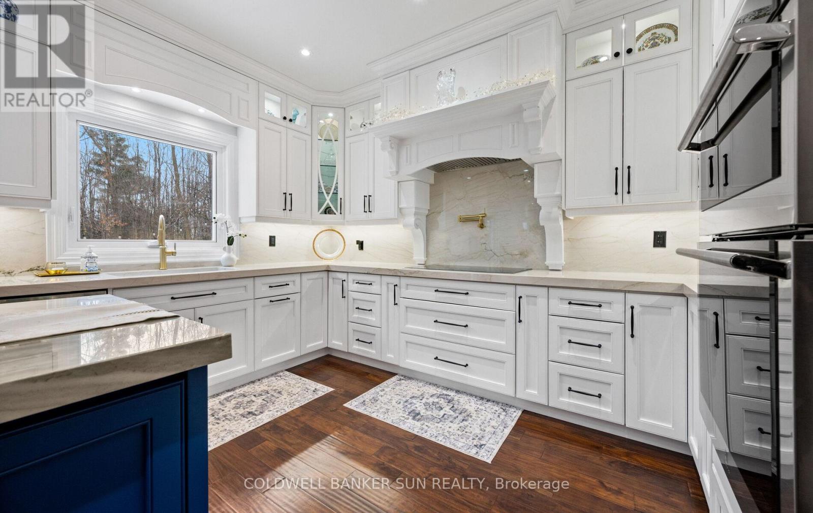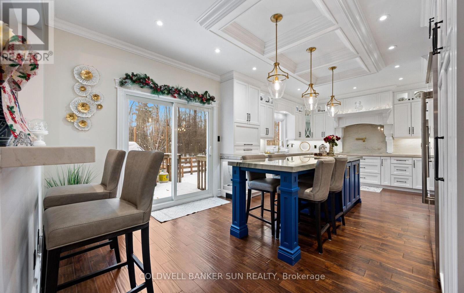 Welcome home to 34 Previn Court! This unique residence is the perfect place to embrace new beginnings. Ideal for multigenerational living and set on one of Alliston's most desirable streets, this showstopping home is conveniently tucked away at the end of a quiet cul-de-sac on a nearly half-acre, pie-shaped ravine lot. Cherish rare privacy and the feel of a wooded retreat-while being just minutes from top schools, parks, shopping, dining, and commuter routes. With over $200,000 in renovations and more than 4,000 sq. ft. of finished living area, there's room for the whole family and more. The full walkout basement features a second kitchen, additional bedroom, and bathroom-perfect for in-laws, extended family, or guests. The redesigned exterior delivers fresh, modern curb appeal with new windows and doors, elegant refacing, ambient soffit lighting, and updated garage doors. A 3-car garage plus parking for six ensures comfort and convenience for large families and visitors alike. Inside, refined finishes elevate every room: wainscoting, coffered ceilings, crown molding, new main-floor flooring, pot lights, and a beautifully refinished staircase. The one-of-a-kind designer like, gourmet kitchen, shines with rare Brazilian quartzite counters and is open to formal living and dining areas designed for easy everyday living and comfortable, effortless entertaining. The main-floor office offers flexibility as a workspace or potential extra bedroom/media area. Making your way upstairs, the spacious floor plan includes the option to add a 5th bedroom allowing for up to 7 bedrooms total. The primary suite is a serene escape featuring a spa-like ensuite, while the backyard offers a peaceful haven with expansive decks overlooking the tranquil ravine. For the new year, make 34 Previn Court your new beginning. Homes like this are rarely available-don't miss your chance. (id:50787)