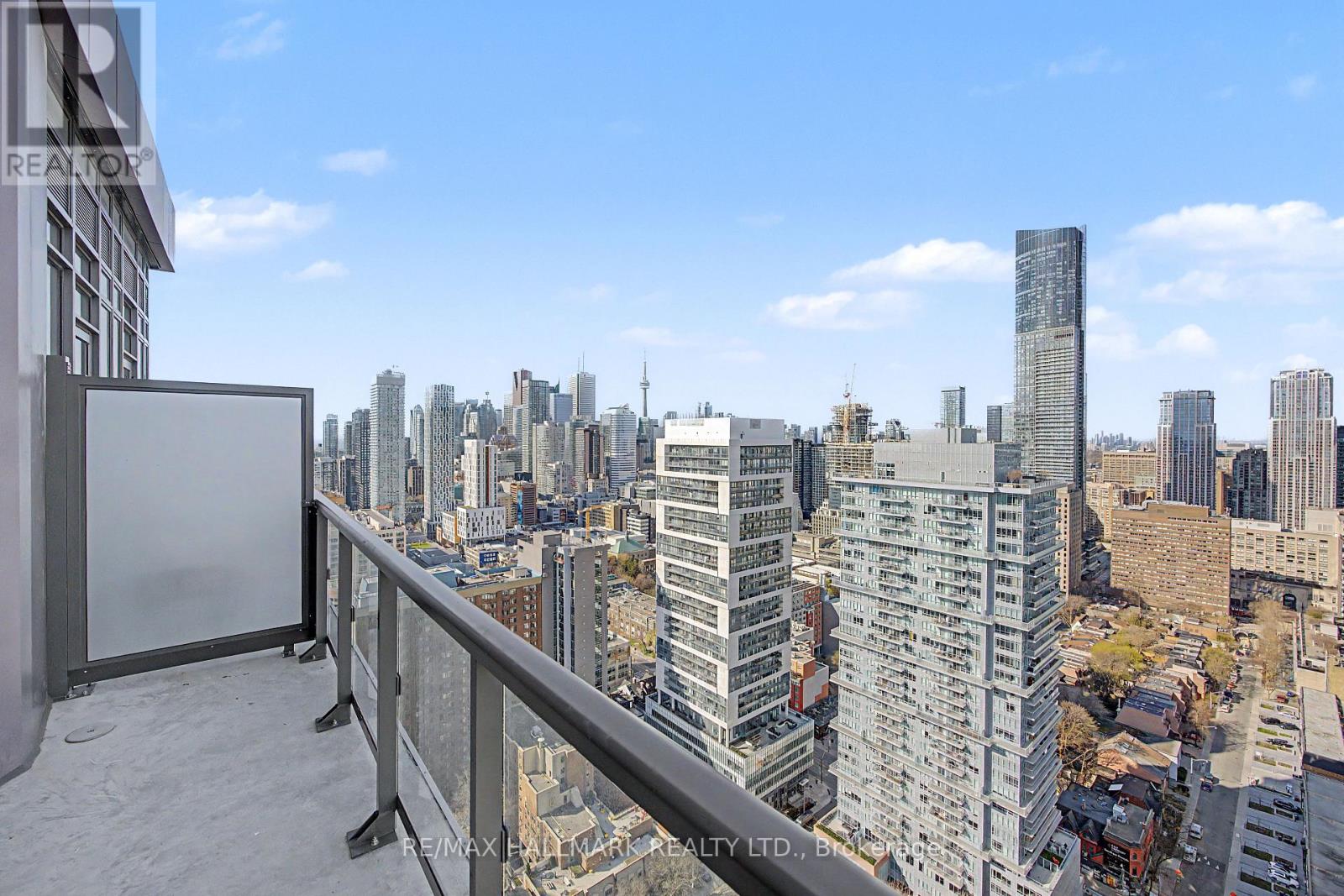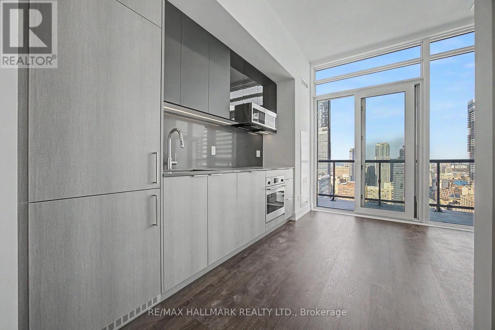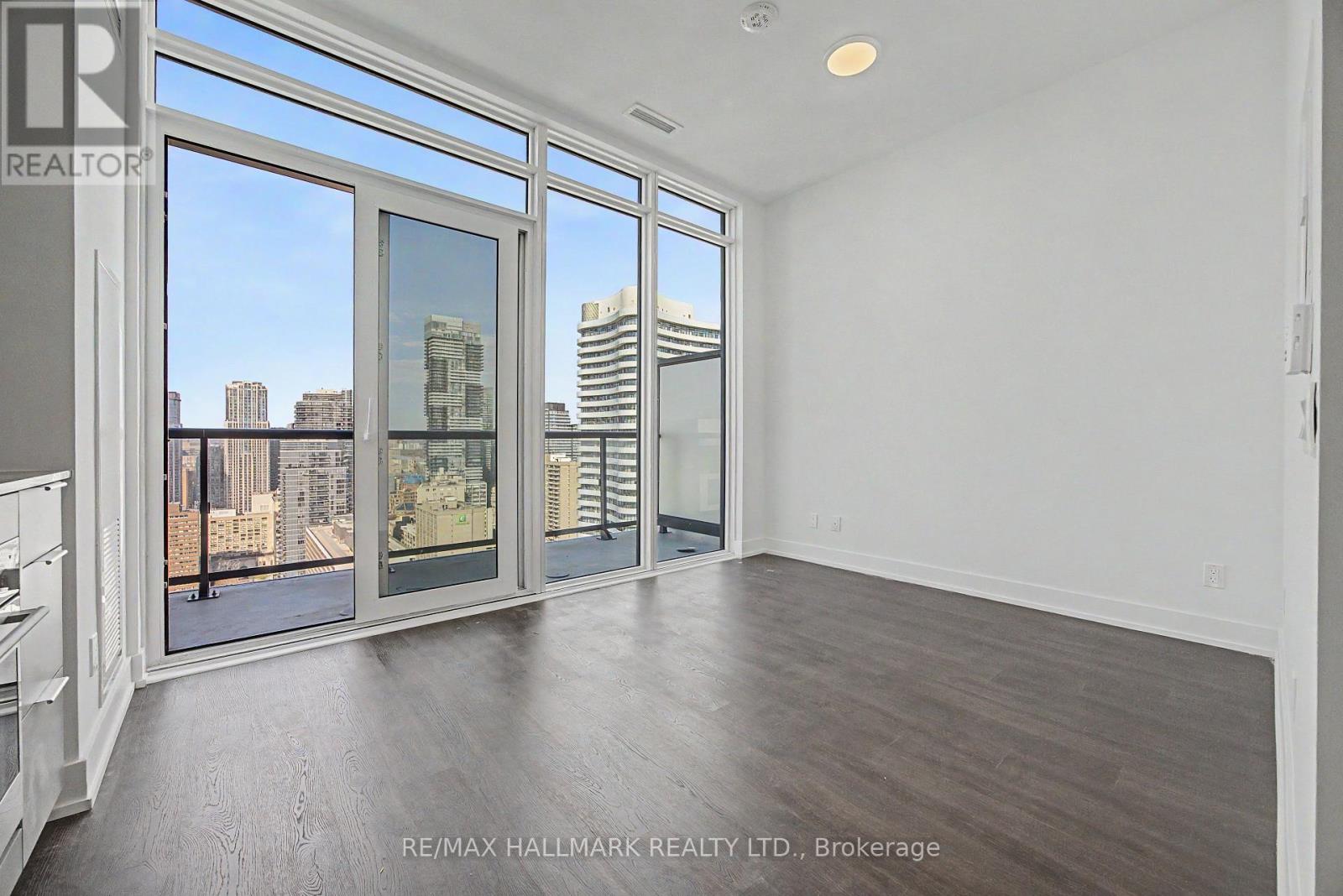 Live at the very top of JAC Condos in this never-lived-in studio featuring rare 10 ft ceilings and floor-to-ceiling windows that flood the space with natural light. Enjoy a walk-out balcony with clear skyline and CN Tower views, perfect for morning coffee. Sleek open-concept design with built-in appliances offers both style and function. Steps to Toronto Metropolitan University, College Station, TTC, CF Toronto Eaton Centre and the Financial District. Building amenities include Fireside Lounge, Tech Lounge, Courtyard, Veranda, Library, Meditation Rooms, Yoga Studio, Pet Spa, Cycle Works, Media Lounge, E-Sports Lounge, Gardening Room, Music Room, Workroom, Rooftop Terrace, BBQ and Alfresco Dining, Sun Deck, Party Room, Fitness Studio, and Private Dining or Meeting Room. Newcomers and students welcome! One locker is included (id:50787)