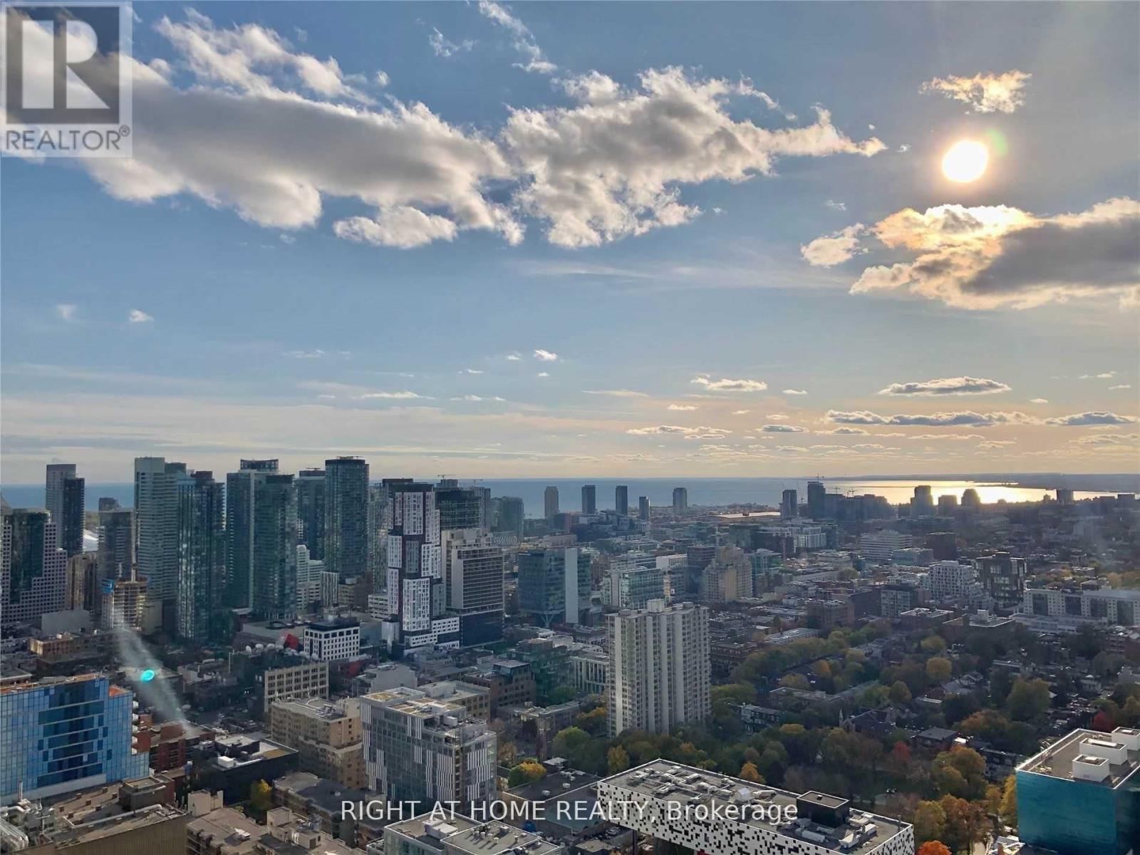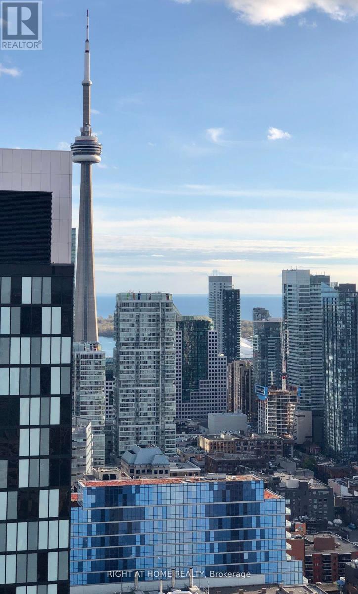 Perfectly located at the iconic corner of University & Dundas, this bright and spacious 980 sq.ft. suite (820 interior + 160 sq. ft. balcony) features a split 2-bedroom, 2-bathroom layout with breathtaking views of the CN Tower and Lake Ontario. Soaring 9-ft ceilings and a modern chef inspired kitchen with quartz countertops and premium built-in appliances create a stylish, functional space. The primary bedroom offers a custom built-in closet and a 4-piece ensuite with soaker tub. The versatile second bedroom suits professionals, students, or small families. A second separate bathroom has a 3 pc tub/shower. Enjoy an oversized balcony for outdoor living inthe heart of the city. Direct underground access to St. Patrick Subway Station. 100 Walk Score.Steps to U of T, TMU, OCAD, major hospitals, Eaton Centre, Chinatown and Shops (id:50787)