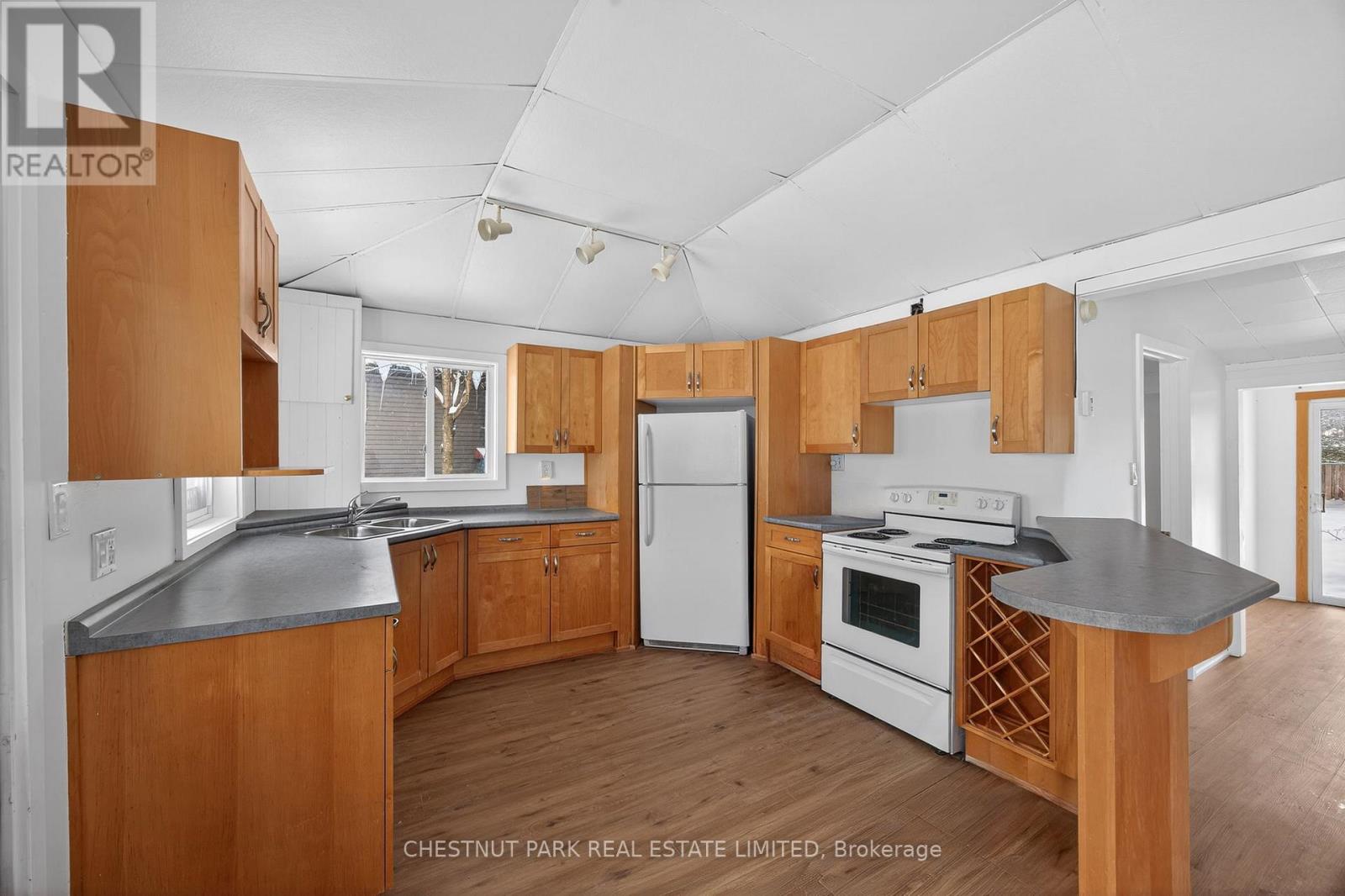 3410 Beachview Avenue is a newly renovated property located in the charming cottage community of Cumberland Beach, just steps from the shores of Lake Couchiching. Easily accessible at just over an hour from the GTA and located off Highway 11, this home offers the perfect blend of comfort and convenience. The inviting bungalow sits on a generous lot, presenting excellent potential to build, expand, or grow in the future. Inside you'll find a bright open-concept living space and brand new laminate flooring throughout. The spacious kitchen features a breakfast bar and there's also a brand-new four-piece bathroom with custom tile. Complete with private drive and two garden sheds, this home has everything you need to enjoy year-round living or the perfect summer getaway. (id:50787)