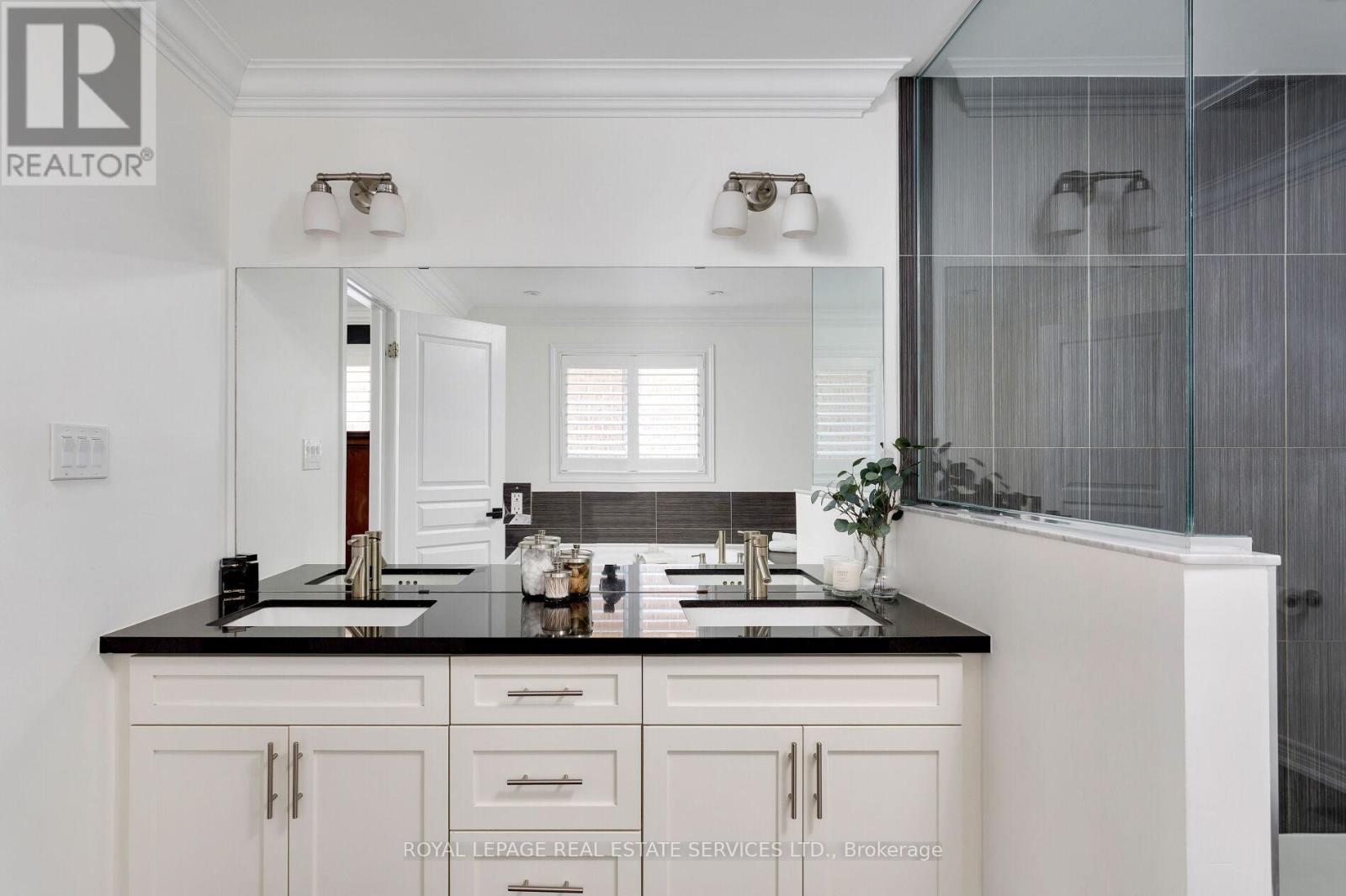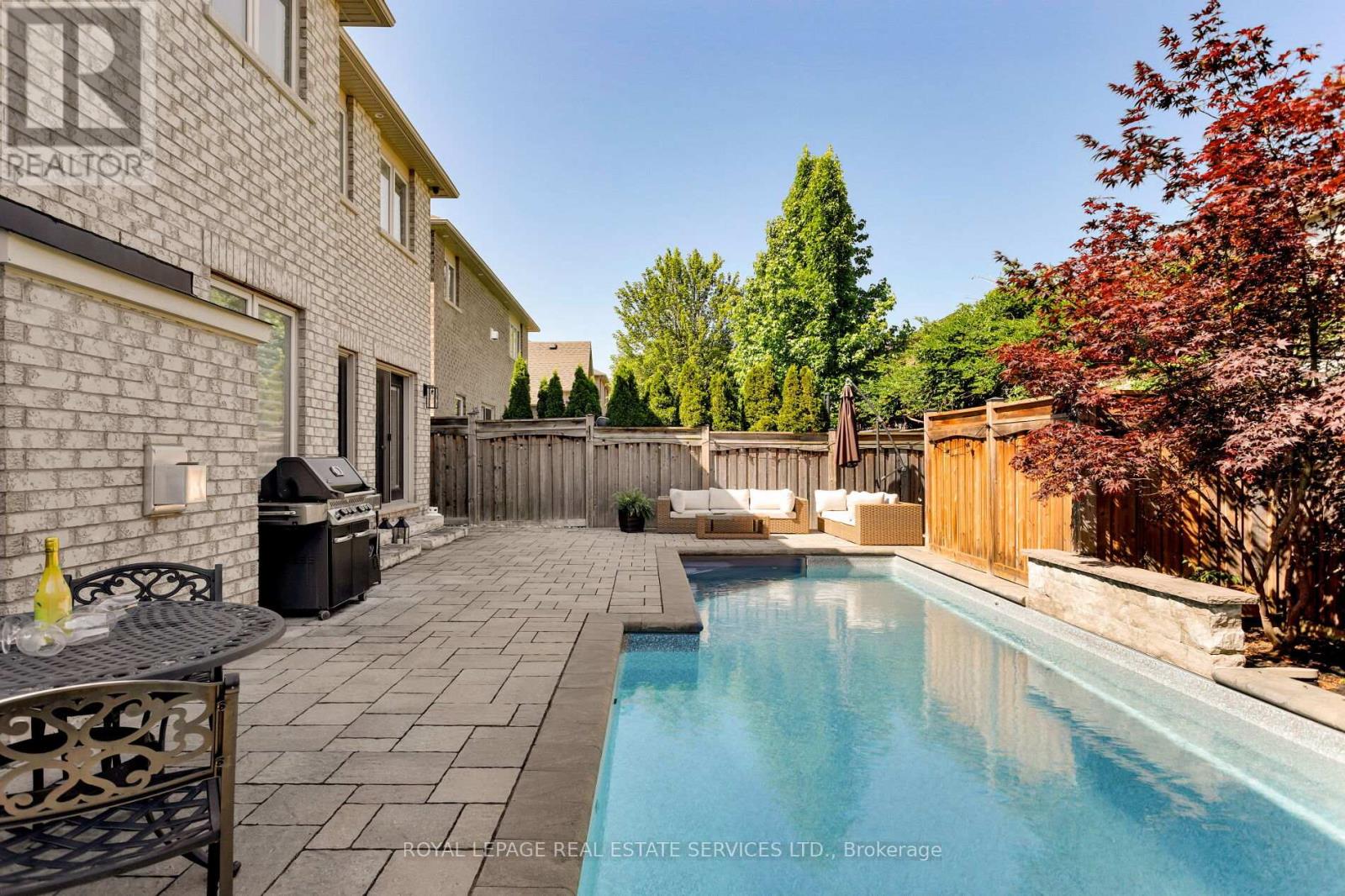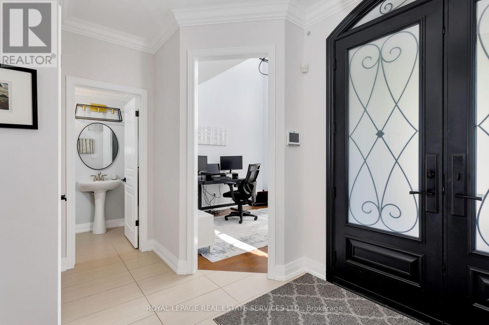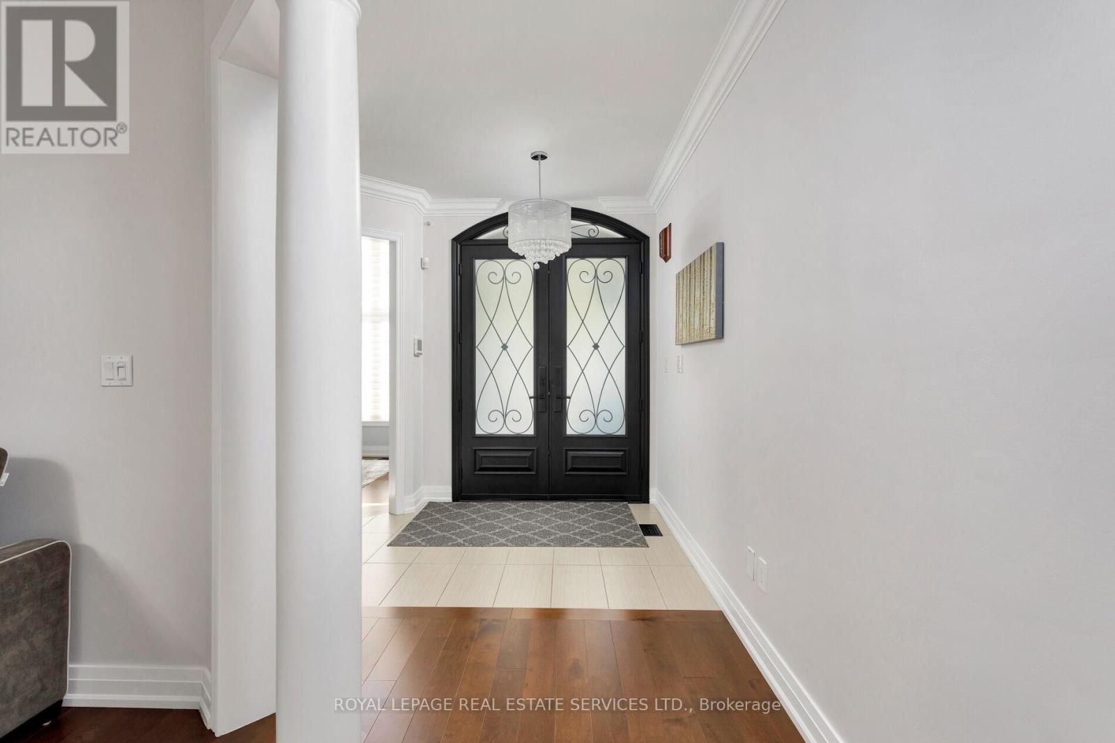 Discover luxury living in this Branthaven executive home in Oakvilles prestigious Bronte Creek neighbourhood, just steps from trails, Colonel William Woods Park, & Bronte Creek Provincial Park ideal for hiking, biking, & family adventures. This exceptional Bronte Creek real estate gem sits on a re-landscaped lot with a stone & stucco facade, stone tile walkways, manicured gardens, soffit lighting, & a private backyard oasis featuring a saltwater pool, sheer descent waterfall, & extensive stone patio for outdoor entertaining. Inside, exceptional upgraded living space includes 4+1 bedrooms, 4.5 bathrooms, & a professionally finished basement (2020) with a recreation room, wet bar, glass-enclosed gym, a fifth bedroom, & a modern 3-piece bath. Elegant finishes, wide-plank hardwood floors, crown mouldings, designer tiles, custom cabinetry, custom blinds, California shutters, & stone countertops are complemented by 9-foot ceilings & expansive windows. The main level offers formal living & dining rooms, a custom kitchen with premium appliances, a dramatic two-storey family room with fireplace, a private office, a dream laundry room & chic powder room. Upstairs features 4 spacious bedrooms & 3 spa-like bathrooms, including a primary retreat with a 5-piece ensuite boasting a lavish soaker tub & separate glass shower. Recent upgrades include 2 updated upstairs bathrooms, new second level laminate floors & baseboards, 100 new pot lights, updated fire stones in the electric fireplace, integrated wall vents, designer feature wall in the dining room, fresh paint, new door hardware, & a Tesla charger added to the garage. Located minutes from top-rated schools, shopping, restaurants, Oakville Trafalgar Hospital, & major highways, this showpiece family home in Bronte Creek offers luxurious living in a prime Oakville location. (id:50787)