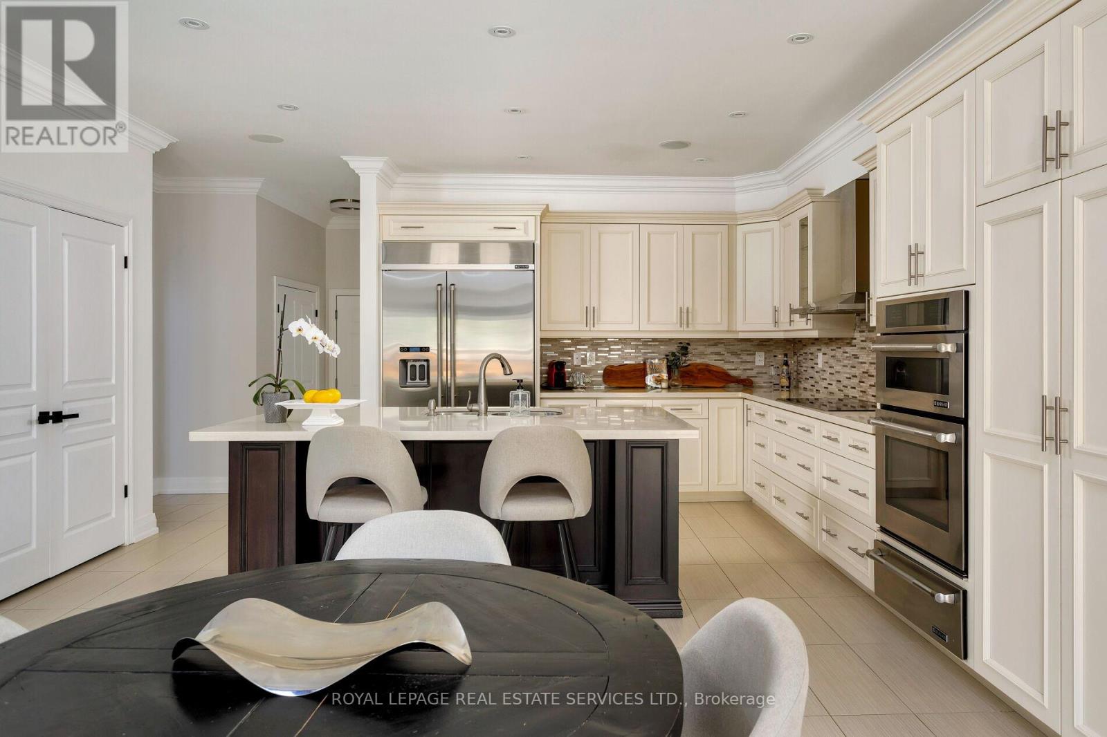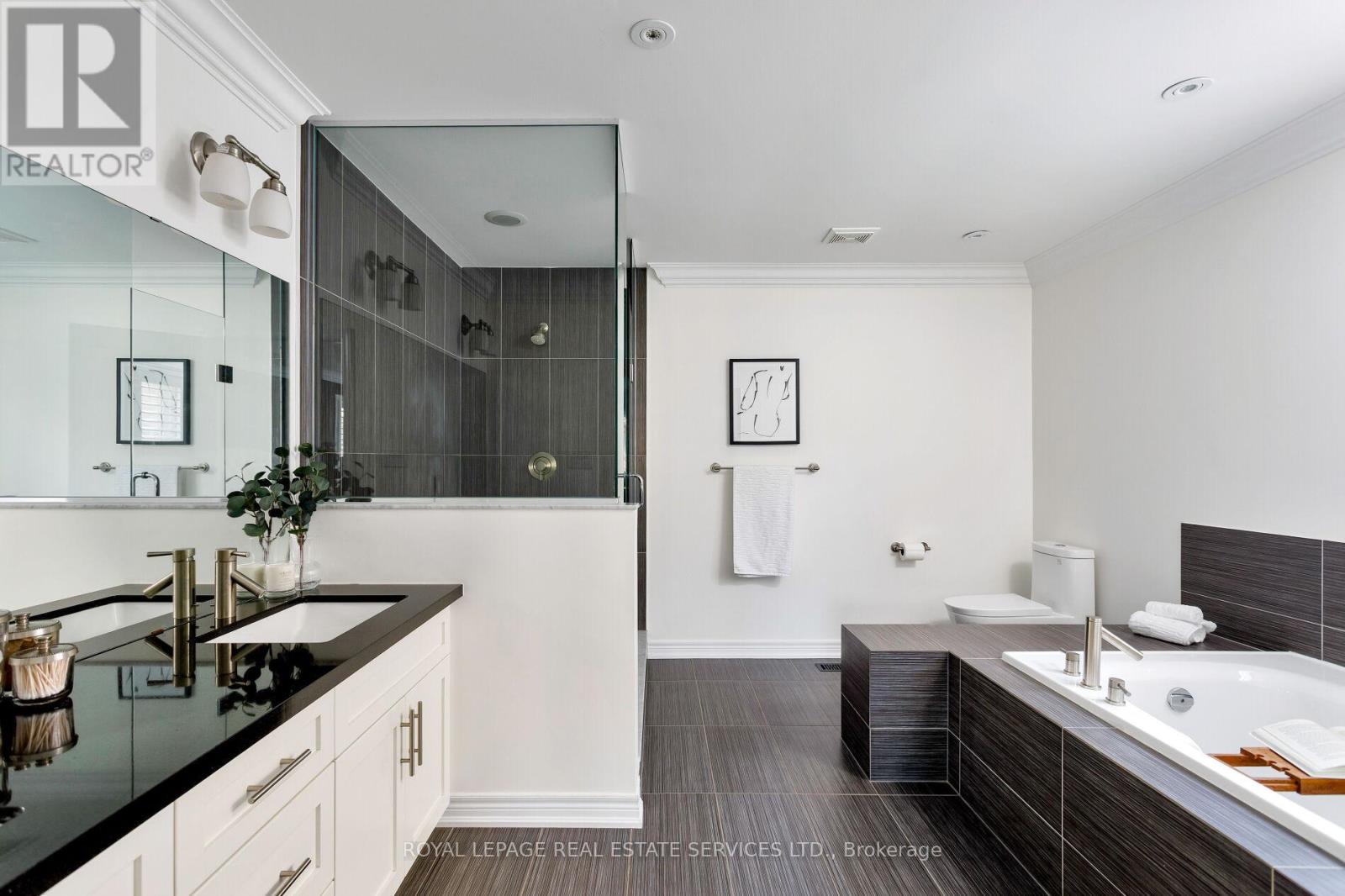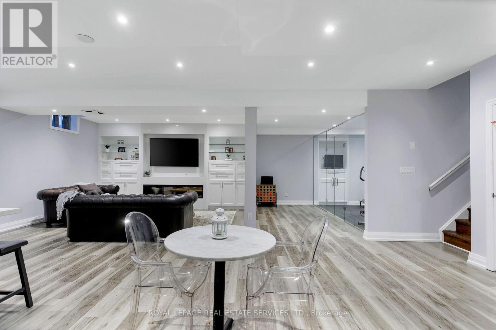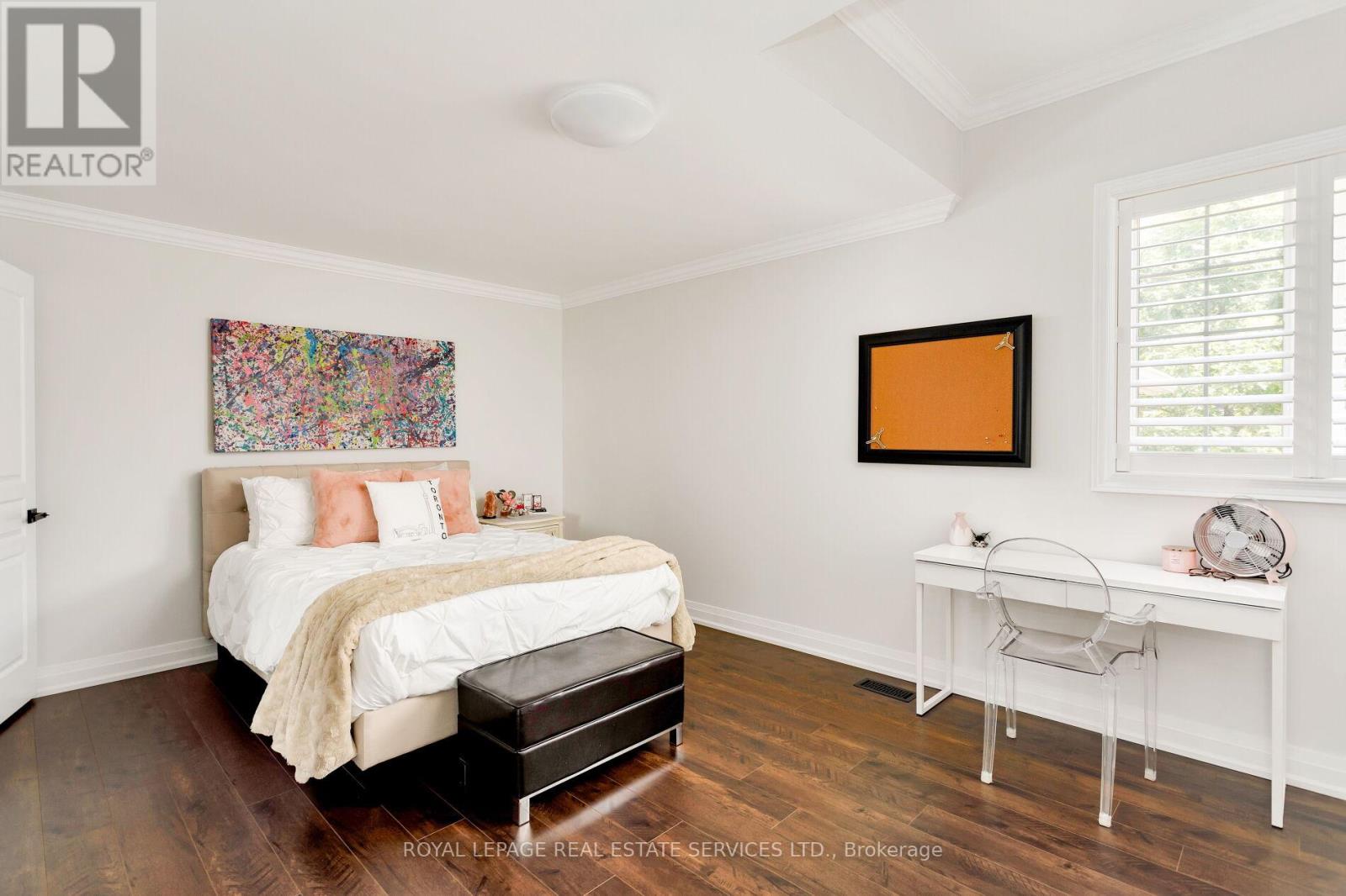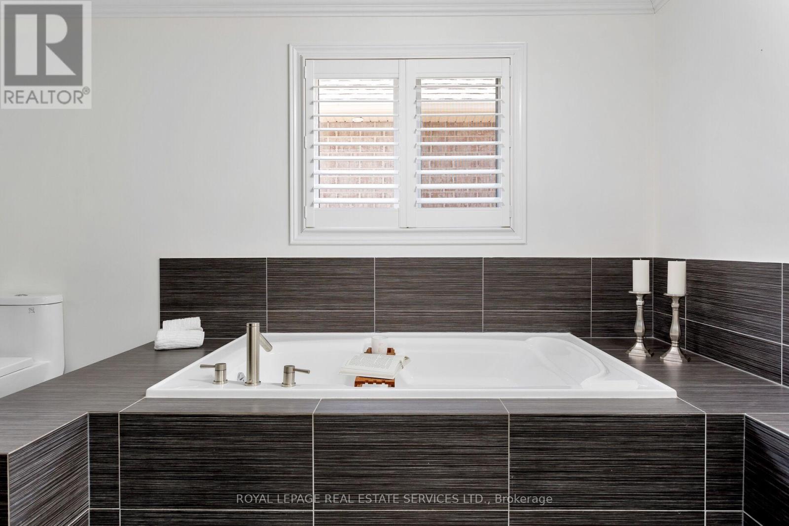 Discover luxury living in this Branthaven executive home in Oakvilles prestigious Bronte Creek neighbourhood, just steps from trails, Colonel William Woods Park, & Bronte Creek Provincial Park ideal for hiking, biking, & family adventures. This exceptional Bronte Creek real estate gem sits on a re-landscaped lot with a stone & stucco facade, stone tile walkways, manicured gardens, soffit lighting, & a private backyard oasis featuring a saltwater pool, sheer descent waterfall, & extensive stone patio for outdoor entertaining. Inside, exceptional upgraded living space includes 4+1 bedrooms, 4.5 bathrooms, & a professionally finished basement (2020) with a recreation room, wet bar, glass-enclosed gym, a fifth bedroom, & a modern 3-piece bath. Elegant finishes, wide-plank hardwood floors, crown mouldings, designer tiles, custom cabinetry, custom blinds, California shutters, & stone countertops are complemented by 9-foot ceilings & expansive windows. The main level offers formal living & dining rooms, a custom kitchen with premium appliances, a dramatic two-storey family room with fireplace, a private office, a dream laundry room & chic powder room. Upstairs features 4 spacious bedrooms & 3 spa-like bathrooms, including a primary retreat with a 5-piece ensuite boasting a lavish soaker tub & separate glass shower. Recent upgrades include 2 updated upstairs bathrooms, new second level laminate floors & baseboards, 100 new pot lights, updated fire stones in the electric fireplace, integrated wall vents, designer feature wall in the dining room, fresh paint, new door hardware, & a Tesla charger added to the garage. Located minutes from top-rated schools, shopping, restaurants, Oakville Trafalgar Hospital, & major highways, this showpiece family home in Bronte Creek offers luxurious living in a prime Oakville location. (id:50787)
