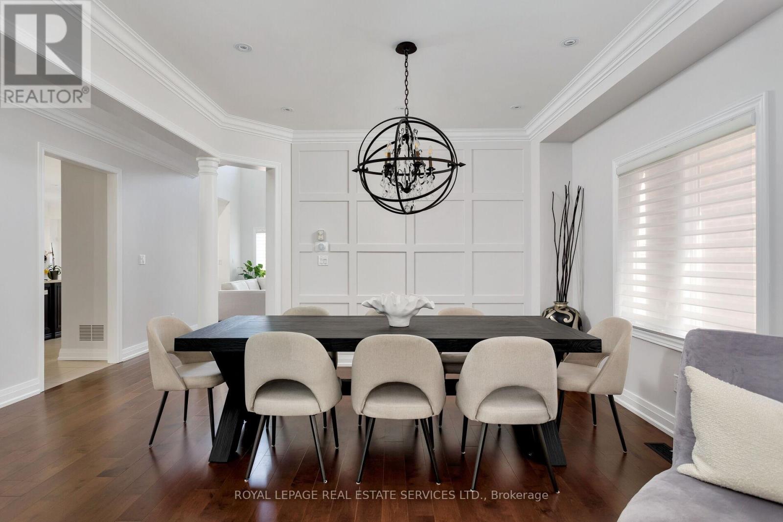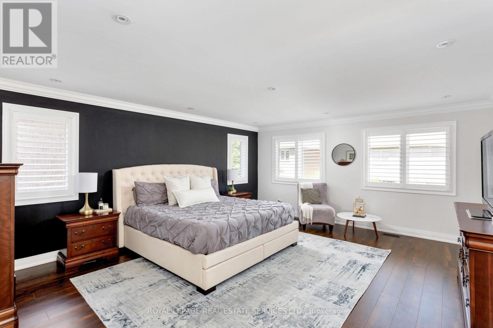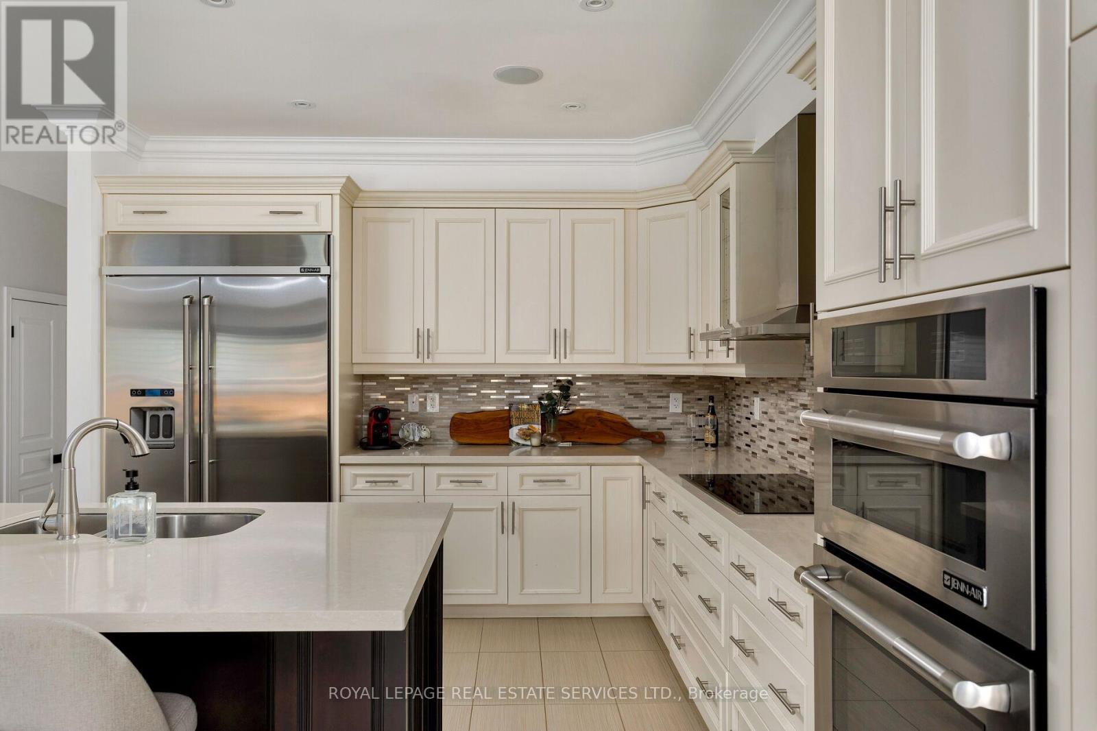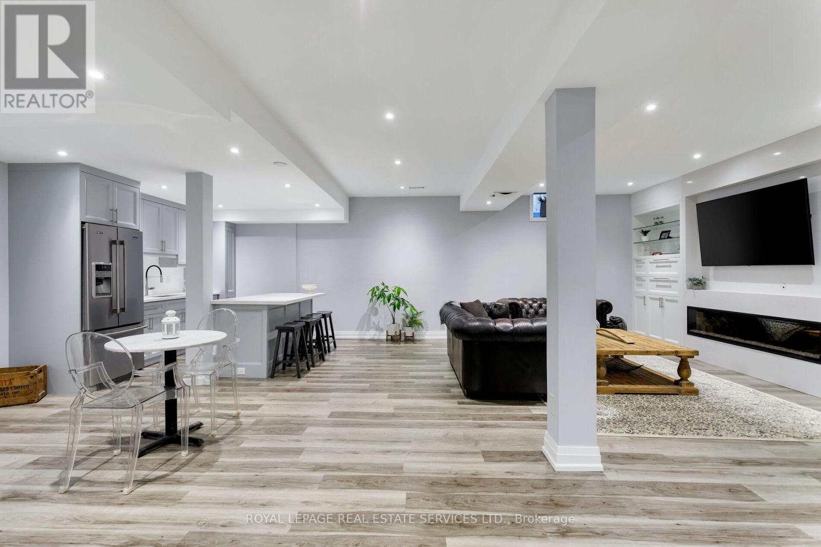 Discover luxury living in this Branthaven executive home in Oakvilles prestigious Bronte Creek neighbourhood, just steps from trails, Colonel William Woods Park, & Bronte Creek Provincial Park ideal for hiking, biking, & family adventures. This exceptional Bronte Creek real estate gem sits on a re-landscaped lot with a stone & stucco facade, stone tile walkways, manicured gardens, soffit lighting, & a private backyard oasis featuring a saltwater pool, sheer descent waterfall, & extensive stone patio for outdoor entertaining. Inside, exceptional upgraded living space includes 4+1 bedrooms, 4.5 bathrooms, & a professionally finished basement (2020) with a recreation room, wet bar, glass-enclosed gym, a fifth bedroom, & a modern 3-piece bath. Elegant finishes, wide-plank hardwood floors, crown mouldings, designer tiles, custom cabinetry, custom blinds, California shutters, & stone countertops are complemented by 9-foot ceilings & expansive windows. The main level offers formal living & dining rooms, a custom kitchen with premium appliances, a dramatic two-storey family room with fireplace, a private office, a dream laundry room & chic powder room. Upstairs features 4 spacious bedrooms & 3 spa-like bathrooms, including a primary retreat with a 5-piece ensuite boasting a lavish soaker tub & separate glass shower. Recent upgrades include 2 updated upstairs bathrooms, new second level laminate floors & baseboards, 100 new pot lights, updated fire stones in the electric fireplace, integrated wall vents, designer feature wall in the dining room, fresh paint, new door hardware, & a Tesla charger added to the garage. Located minutes from top-rated schools, shopping, restaurants, Oakville Trafalgar Hospital, & major highways, this showpiece family home in Bronte Creek offers luxurious living in a prime Oakville location. (id:50787)