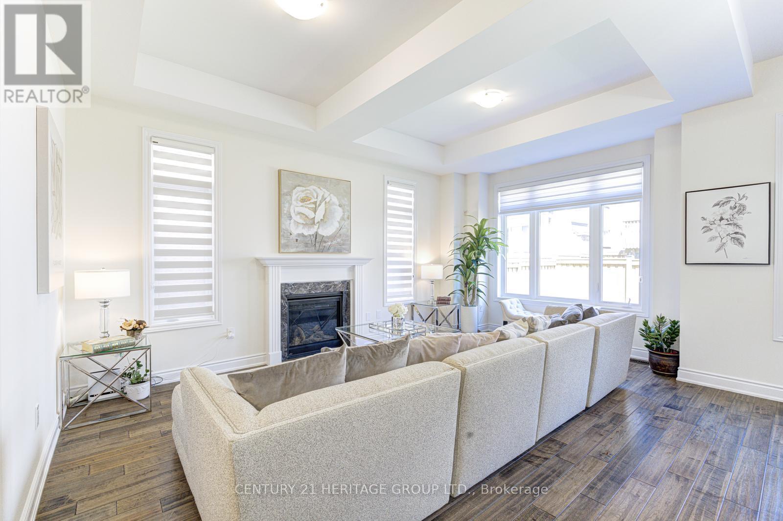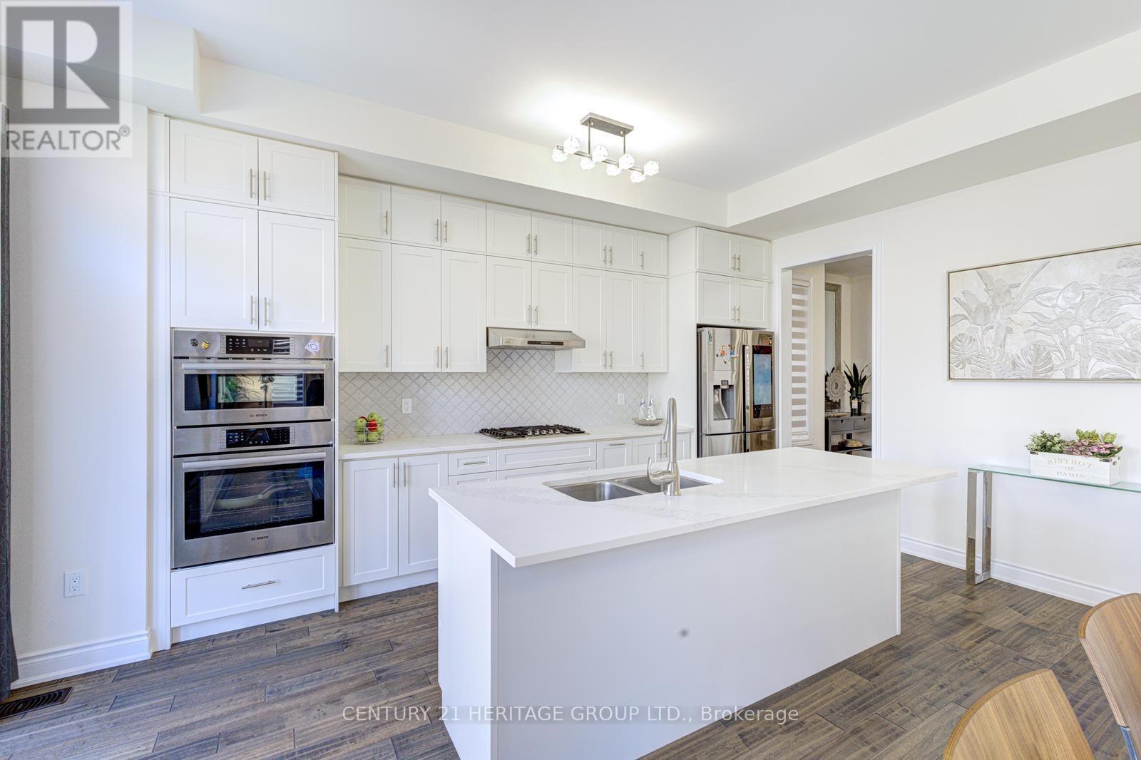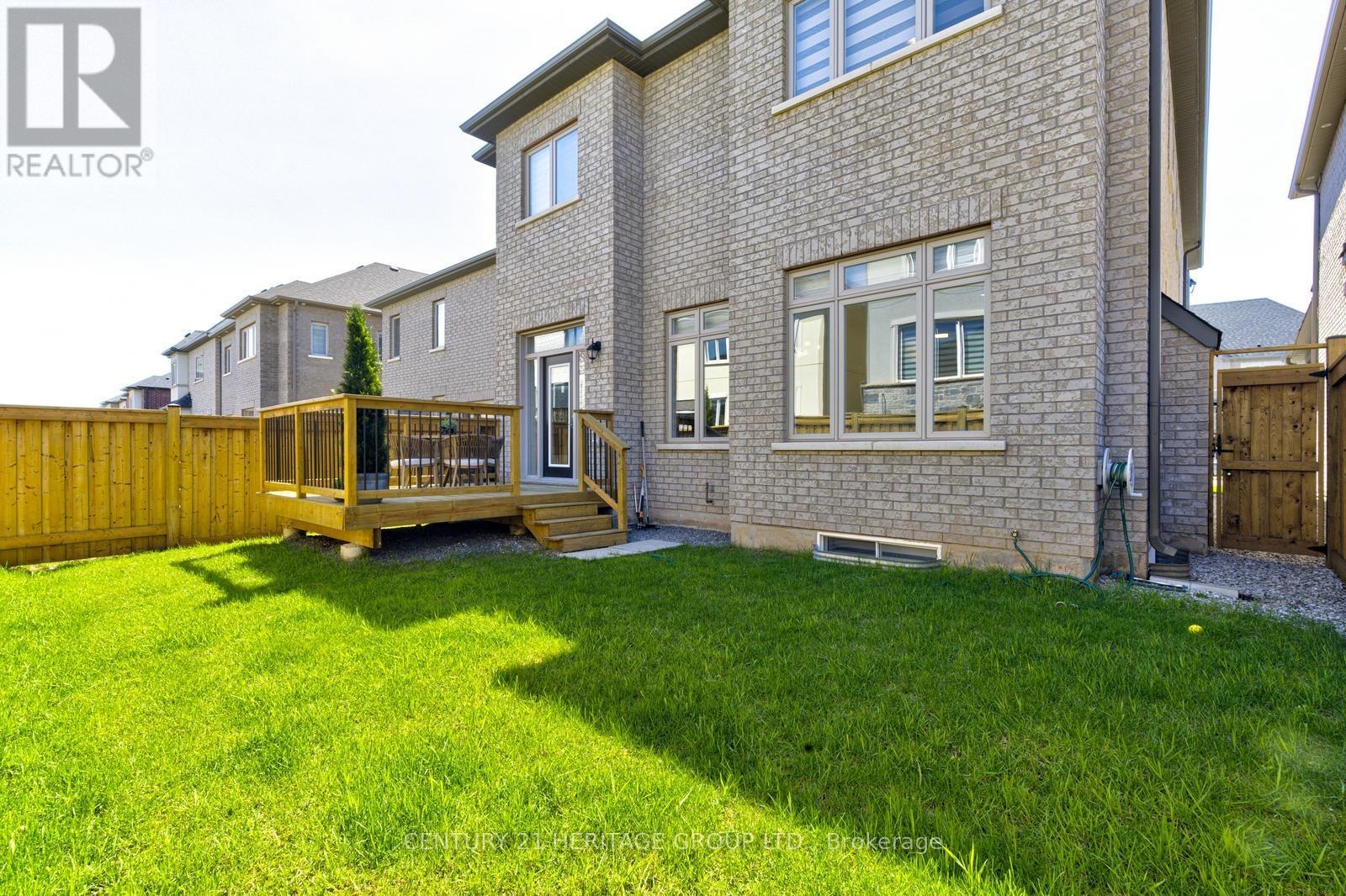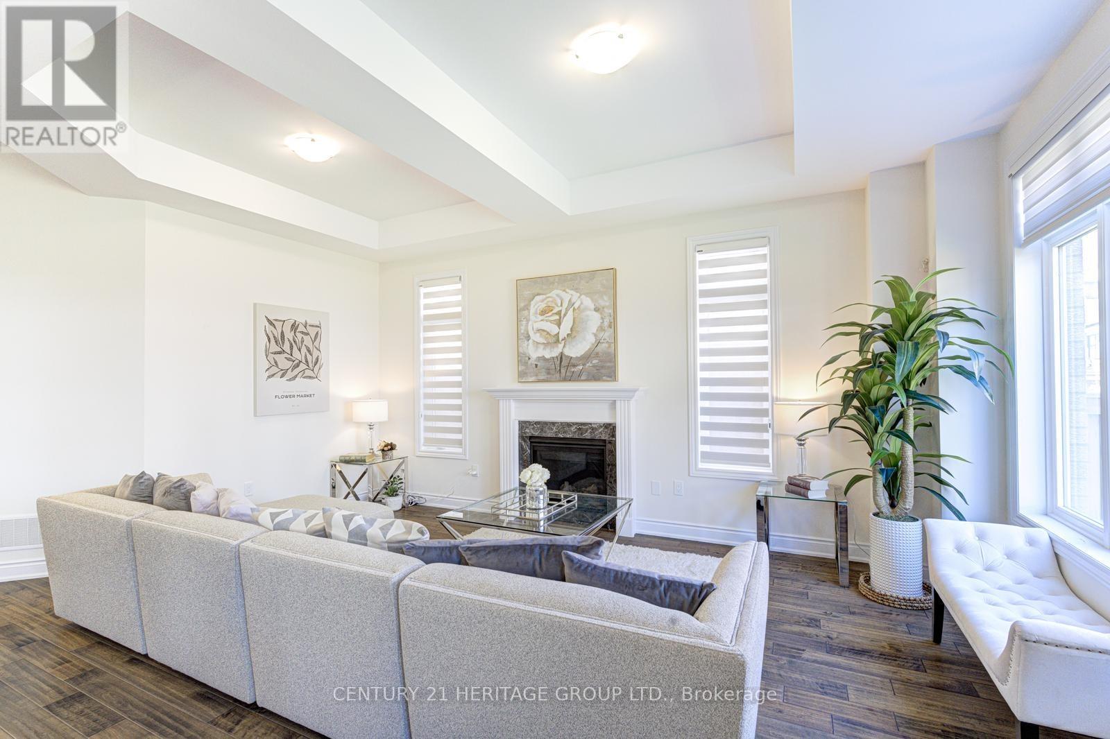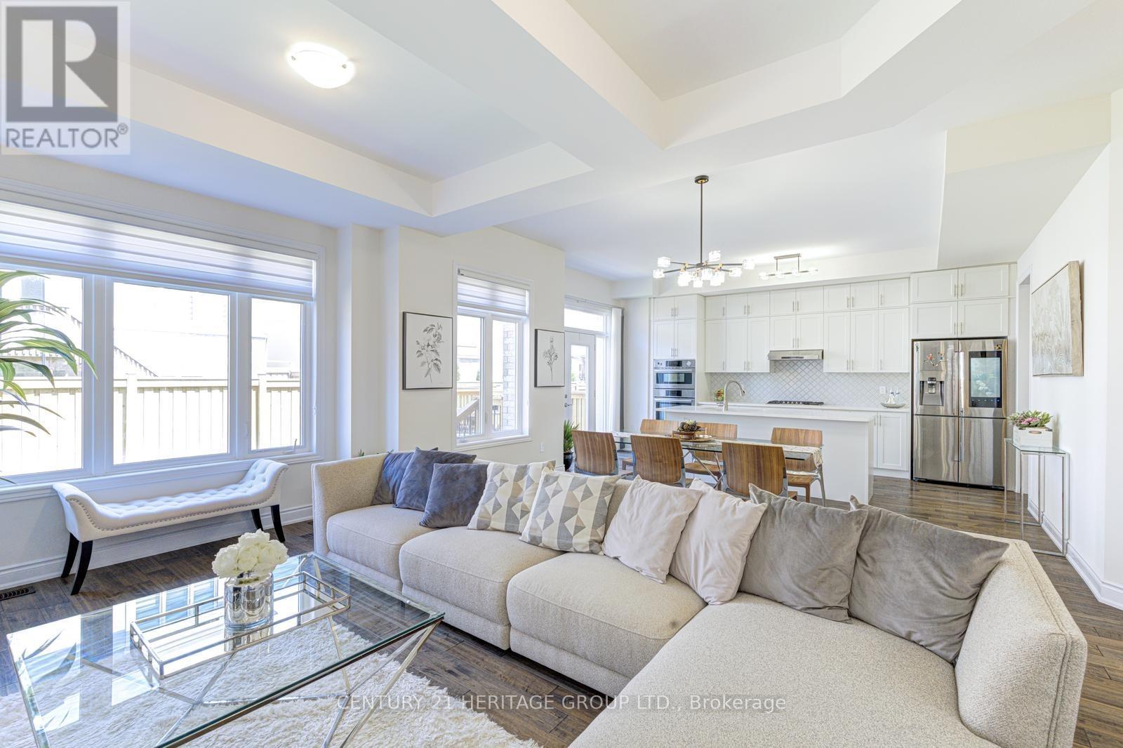 This stunning 4-year-new luxury home offers over 3,000 sq ft above grade and approximately 4,000 sq ft of total living space, including the finished basement. Featuring top-quality hardwood flooring throughout, this elegant residence blends modern design with exceptional comfort. The gourmet kitchen is equipped with high-end Bosch appliances, including a 5-burner cooktop, a large center island, and a premium Samsung refrigerator. It opens to a beautiful deck with a BBQ rough-in-perfect for entertaining family and friends. The open-concept main floor showcases a spacious family room and dining area, highlighted by a cozy electric fireplace and abundant natural light from large windows on both sides. A versatile main-floor den with French doors can easily serve as a home office, living room, or even a bedroom. Upstairs, you'll find a generous open-concept loft space, ideal as a family lounge or convertible into a fifth bedroom. The second floor also features a conveniently located laundry room with high-end LG washer and dryer. Additional upgrades include stylish zebra blinds throughout, as well as custom double-layered sheer curtains on the large patio door. The basement boasts high ceilings and enlarged windows, bringing in plenty of natural light. The home also includes a high-ceiling garage with EV rough-in and an upgraded air conditioning system. Ideally located close to parks, schools, highways, hospitals, and shopping, this exceptional property offers the perfect combination of luxury, convenience, and lifestyle. (id:50787)