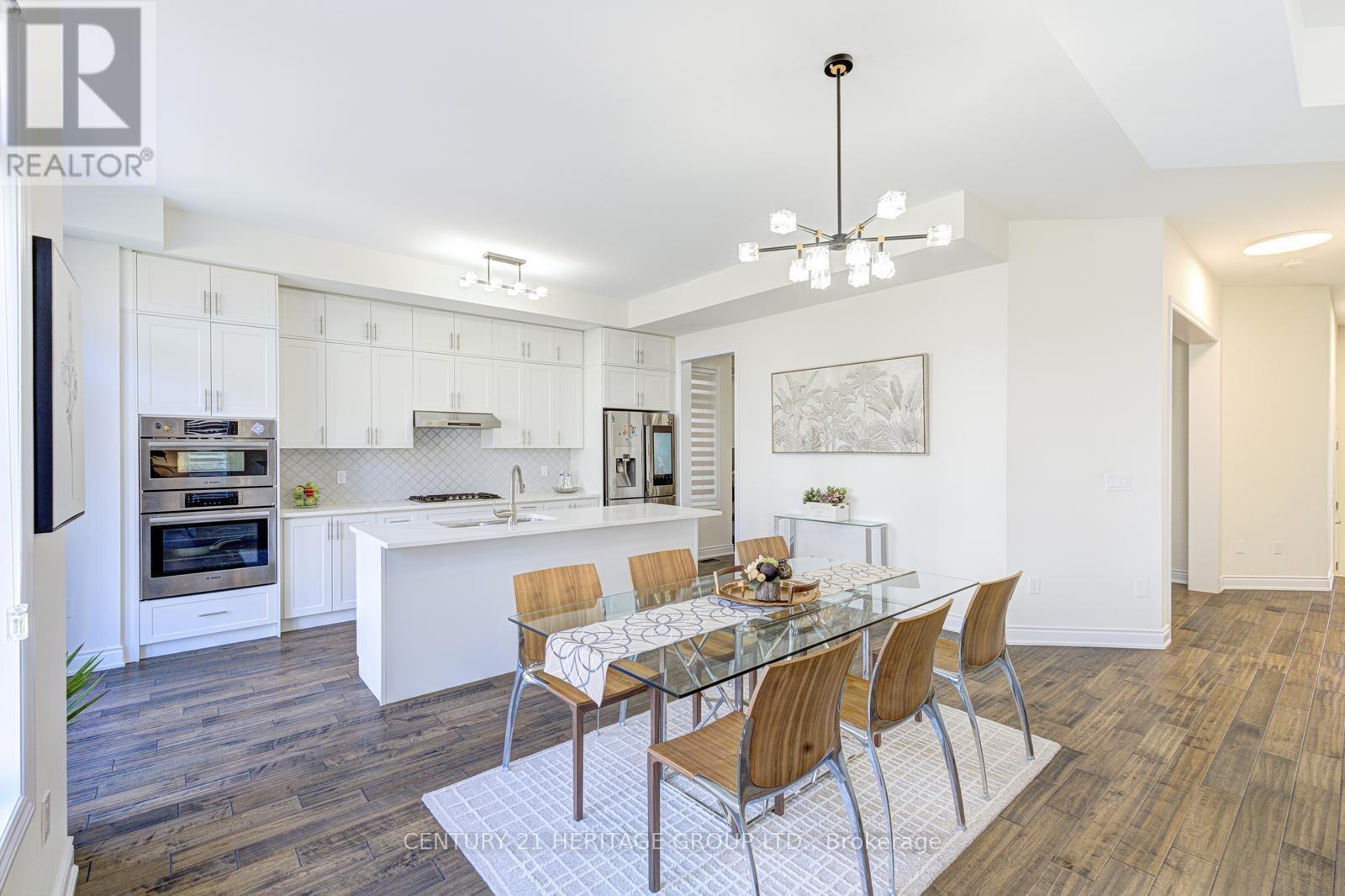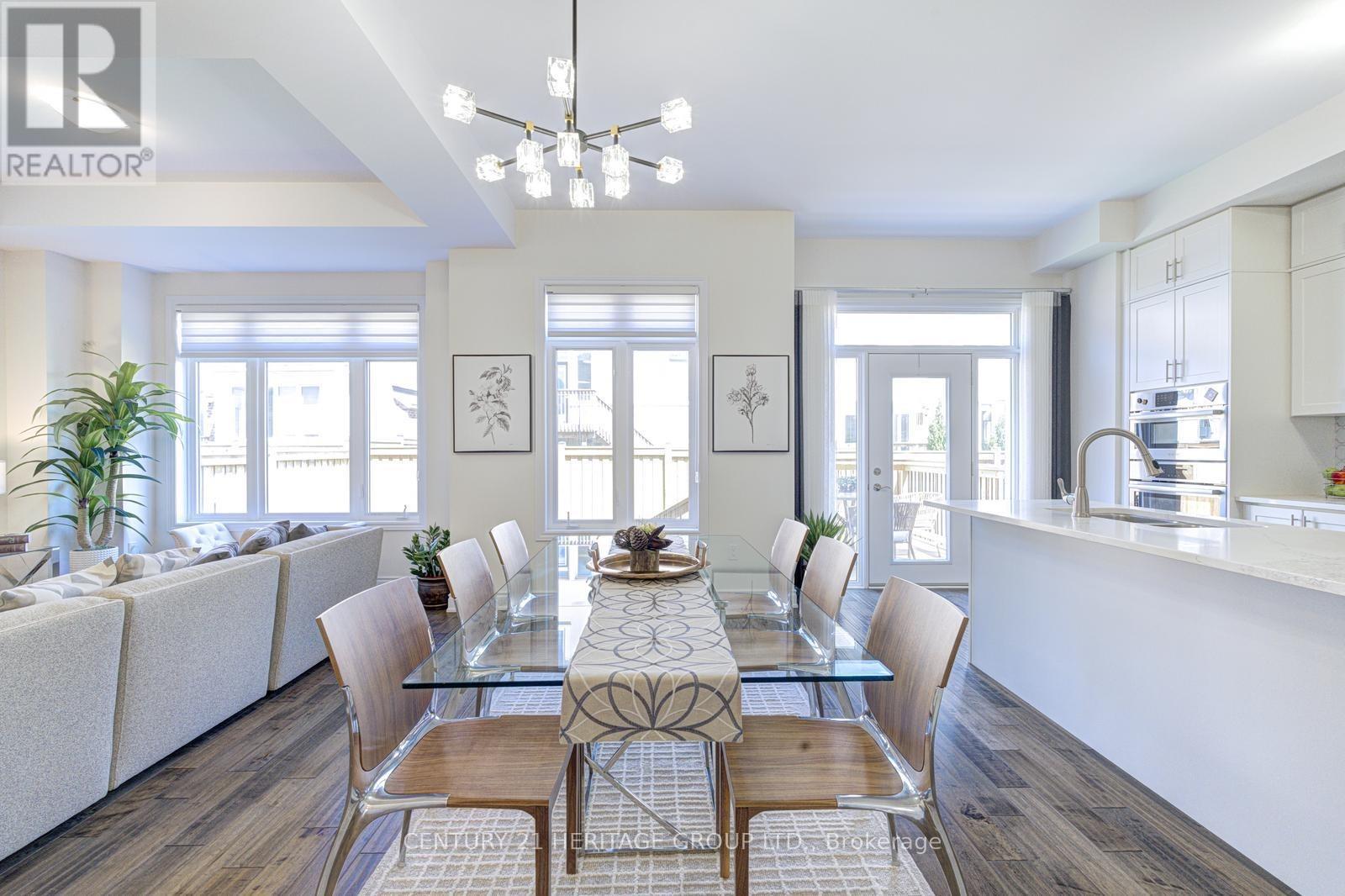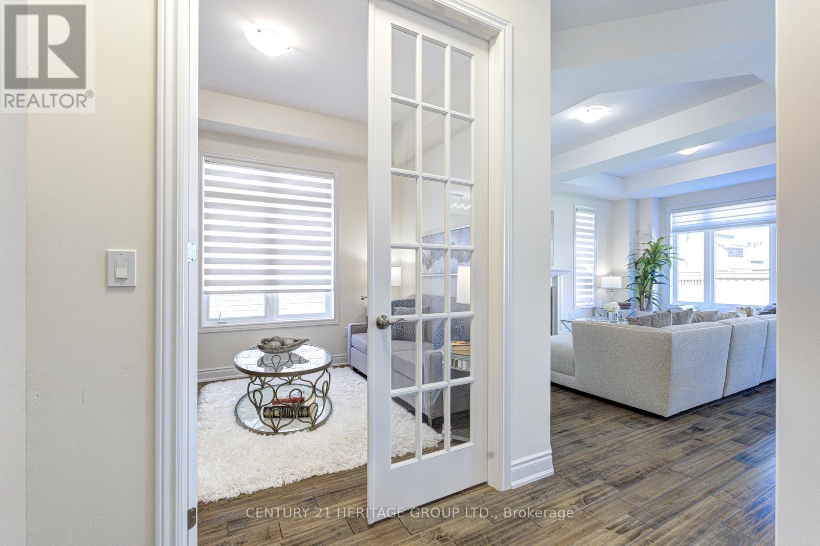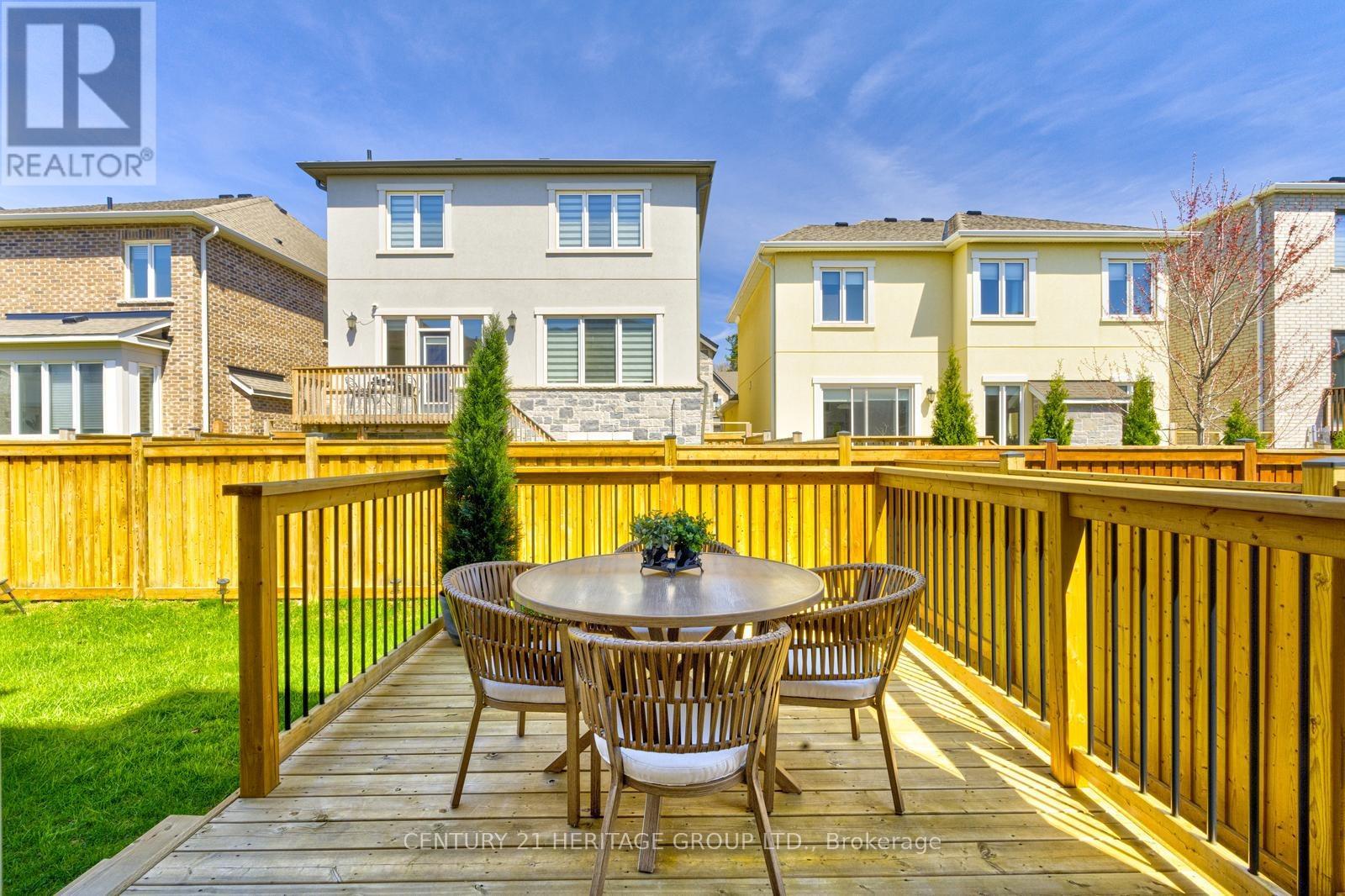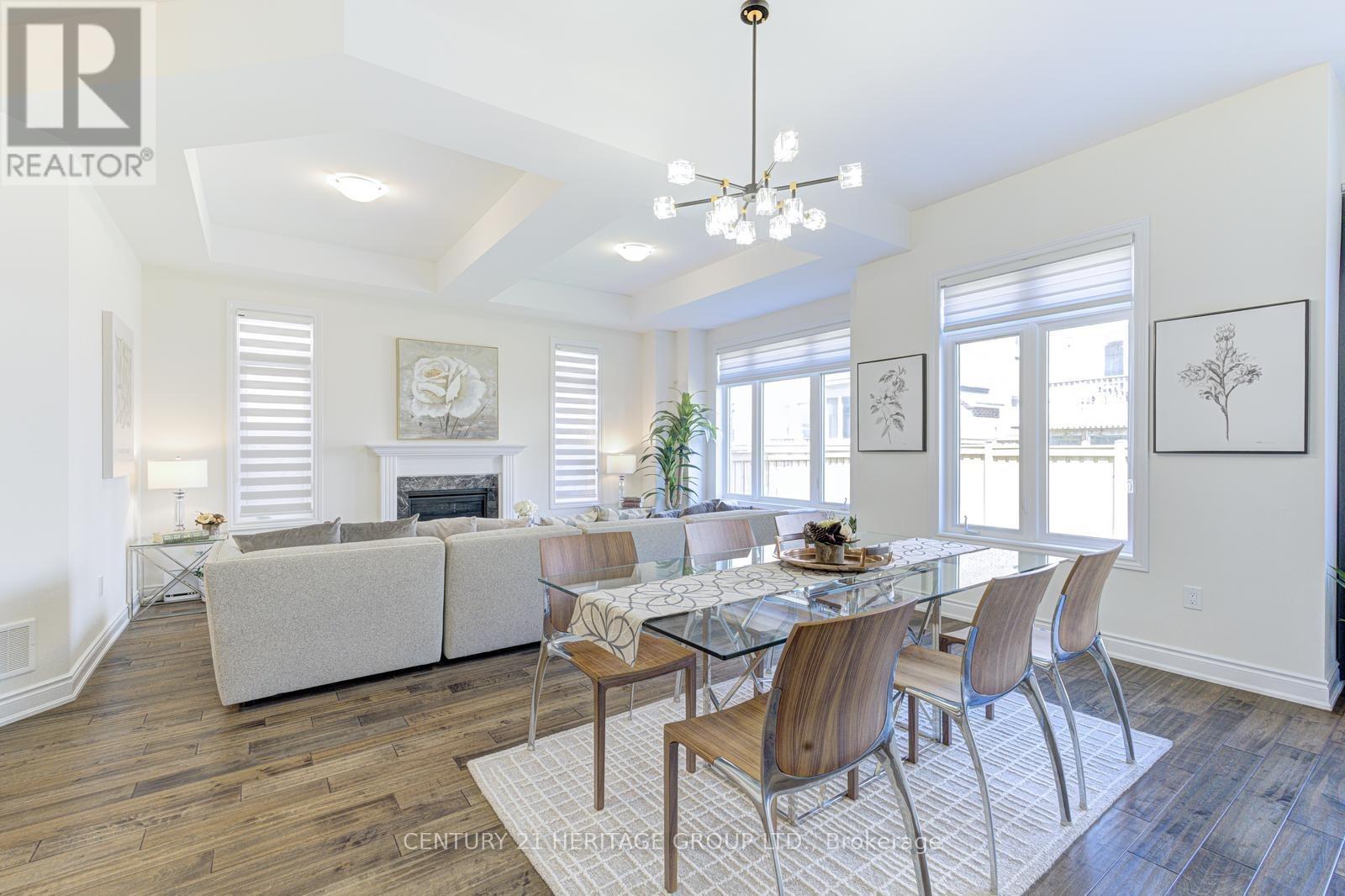 This stunning 4-year-new luxury home offers over 3,000 sq ft above grade and approximately 4,000 sq ft of total living space, including the finished basement. Featuring top-quality hardwood flooring throughout, this elegant residence blends modern design with exceptional comfort. The gourmet kitchen is equipped with high-end Bosch appliances, including a 5-burner cooktop, a large center island, and a premium Samsung refrigerator. It opens to a beautiful deck with a BBQ rough-in-perfect for entertaining family and friends. The open-concept main floor showcases a spacious family room and dining area, highlighted by a cozy electric fireplace and abundant natural light from large windows on both sides. A versatile main-floor den with French doors can easily serve as a home office, living room, or even a bedroom. Upstairs, you'll find a generous open-concept loft space, ideal as a family lounge or convertible into a fifth bedroom. The second floor also features a conveniently located laundry room with high-end LG washer and dryer. Additional upgrades include stylish zebra blinds throughout, as well as custom double-layered sheer curtains on the large patio door. The basement boasts high ceilings and enlarged windows, bringing in plenty of natural light. The home also includes a high-ceiling garage with EV rough-in and an upgraded air conditioning system. Ideally located close to parks, schools, highways, hospitals, and shopping, this exceptional property offers the perfect combination of luxury, convenience, and lifestyle. (id:50787)