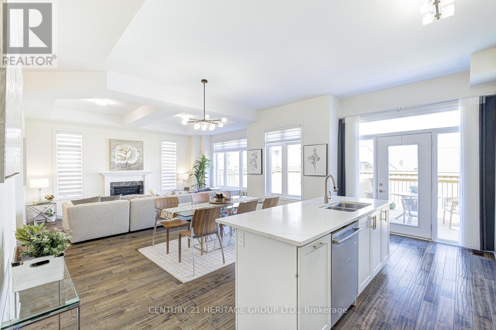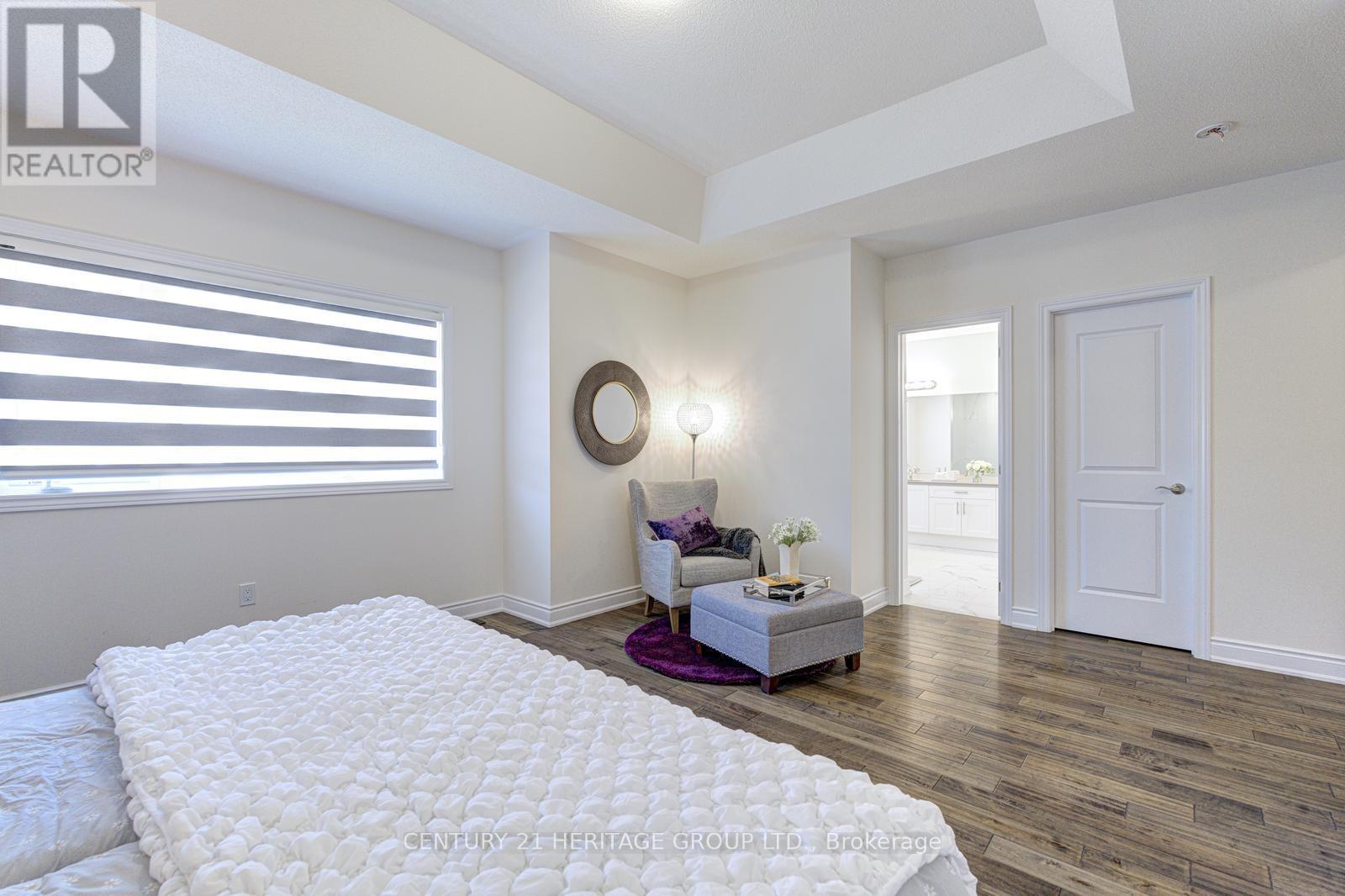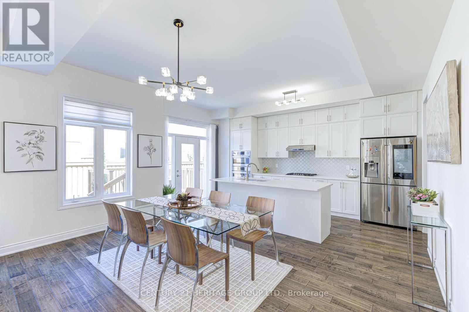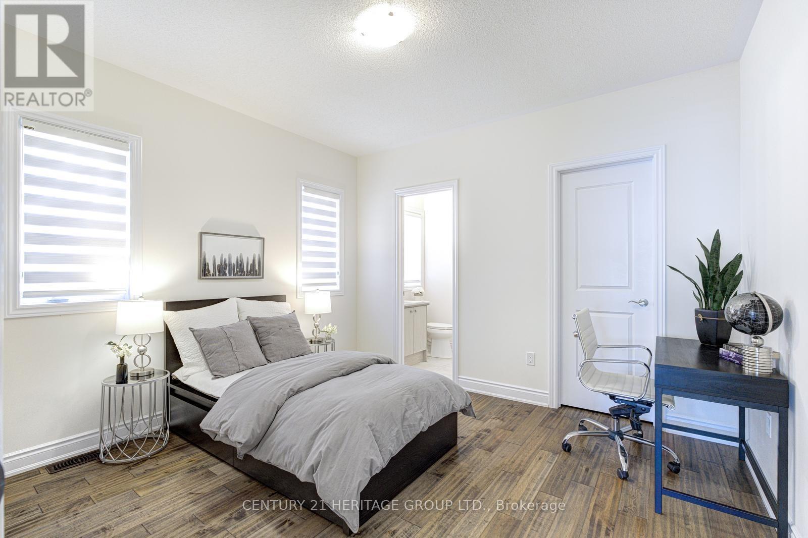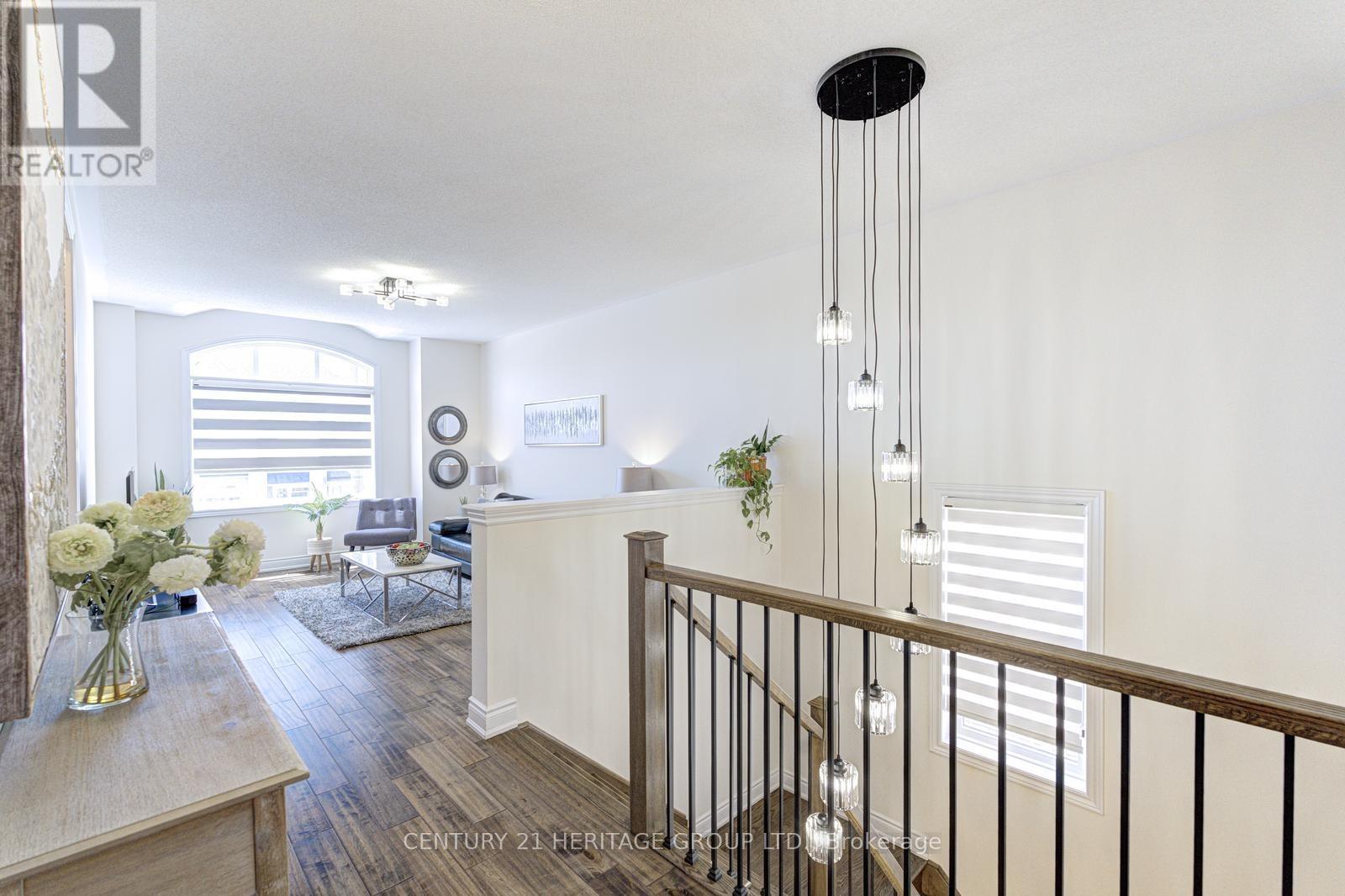 This stunning 4-year-new luxury home offers over 3,000 sq ft above grade and approximately 4,000 sq ft of total living space, including the finished basement. Featuring top-quality hardwood flooring throughout, this elegant residence blends modern design with exceptional comfort. The gourmet kitchen is equipped with high-end Bosch appliances, including a 5-burner cooktop, a large center island, and a premium Samsung refrigerator. It opens to a beautiful deck with a BBQ rough-in-perfect for entertaining family and friends. The open-concept main floor showcases a spacious family room and dining area, highlighted by a cozy electric fireplace and abundant natural light from large windows on both sides. A versatile main-floor den with French doors can easily serve as a home office, living room, or even a bedroom. Upstairs, you'll find a generous open-concept loft space, ideal as a family lounge or convertible into a fifth bedroom. The second floor also features a conveniently located laundry room with high-end LG washer and dryer. Additional upgrades include stylish zebra blinds throughout, as well as custom double-layered sheer curtains on the large patio door. The basement boasts high ceilings and enlarged windows, bringing in plenty of natural light. The home also includes a high-ceiling garage with EV rough-in and an upgraded air conditioning system. Ideally located close to parks, schools, highways, hospitals, and shopping, this exceptional property offers the perfect combination of luxury, convenience, and lifestyle. (id:50787)
