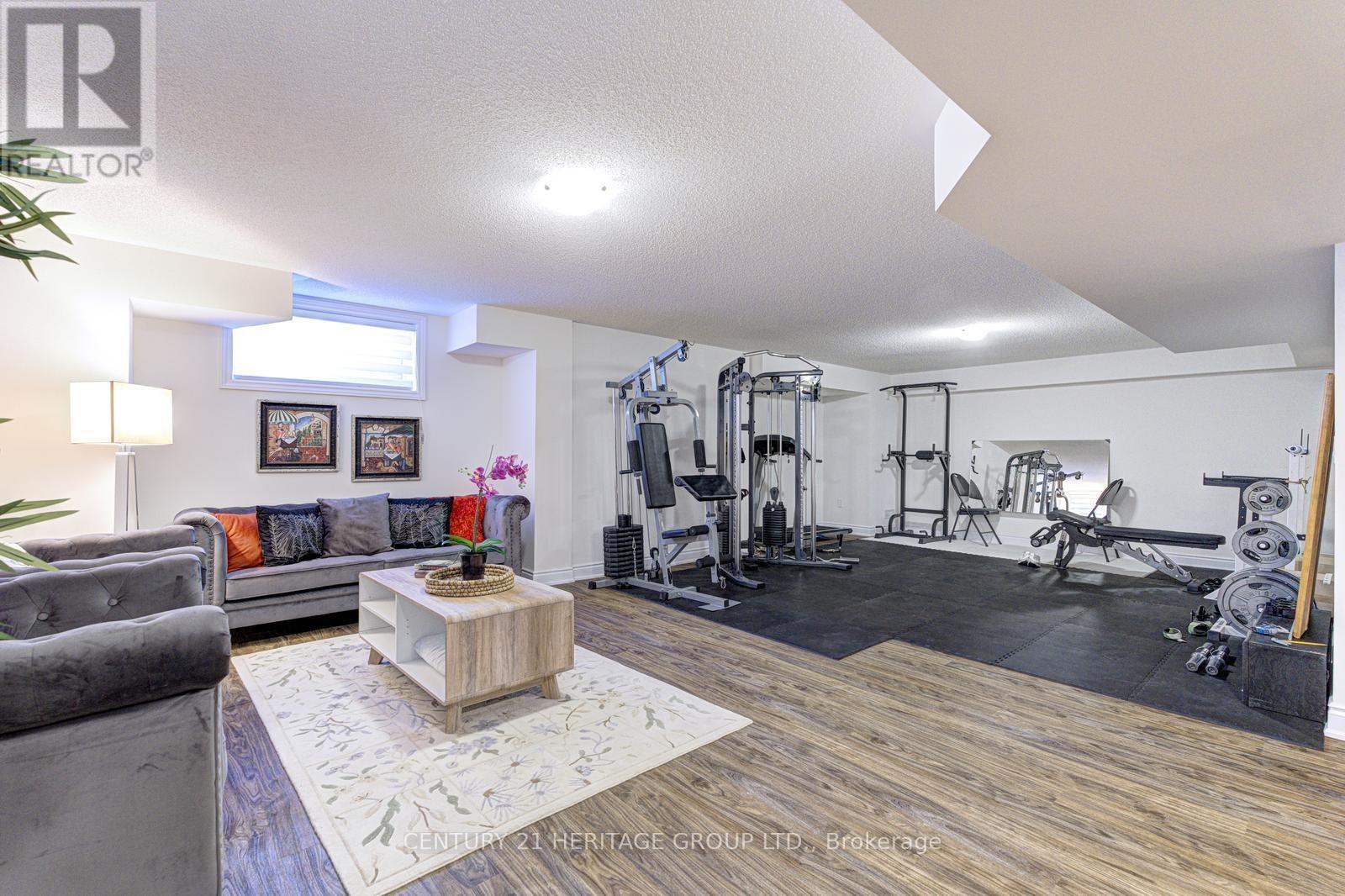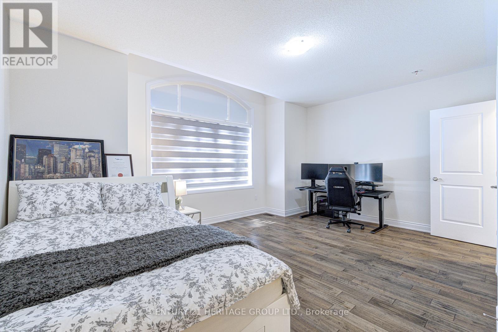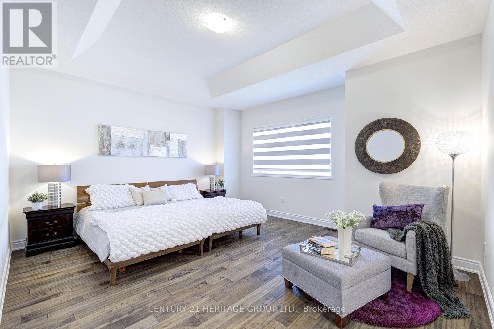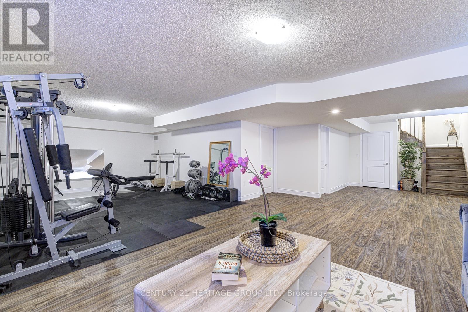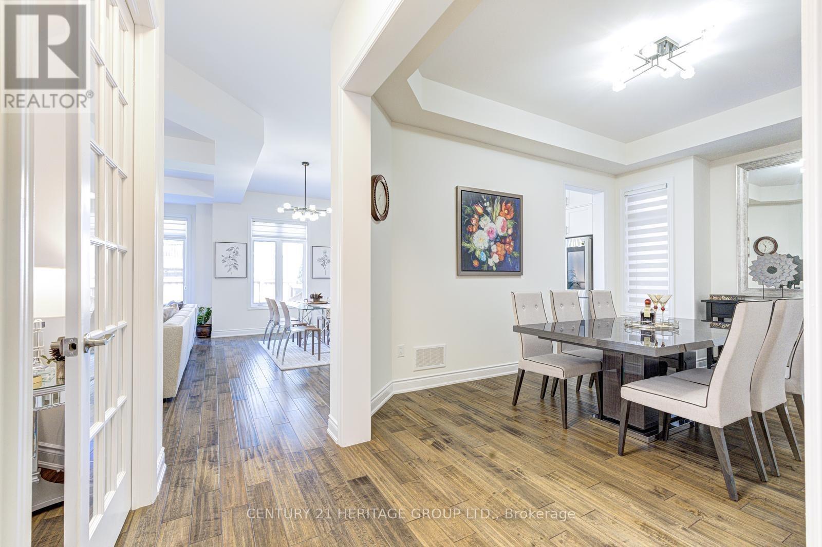 This stunning 4-year-new luxury home offers over 3,000 sq ft above grade and approximately 4,000 sq ft of total living space, including the finished basement. Featuring top-quality hardwood flooring throughout, this elegant residence blends modern design with exceptional comfort. The gourmet kitchen is equipped with high-end Bosch appliances, including a 5-burner cooktop, a large center island, and a premium Samsung refrigerator. It opens to a beautiful deck with a BBQ rough-in-perfect for entertaining family and friends. The open-concept main floor showcases a spacious family room and dining area, highlighted by a cozy electric fireplace and abundant natural light from large windows on both sides. A versatile main-floor den with French doors can easily serve as a home office, living room, or even a bedroom. Upstairs, you'll find a generous open-concept loft space, ideal as a family lounge or convertible into a fifth bedroom. The second floor also features a conveniently located laundry room with high-end LG washer and dryer. Additional upgrades include stylish zebra blinds throughout, as well as custom double-layered sheer curtains on the large patio door. The basement boasts high ceilings and enlarged windows, bringing in plenty of natural light. The home also includes a high-ceiling garage with EV rough-in and an upgraded air conditioning system. Ideally located close to parks, schools, highways, hospitals, and shopping, this exceptional property offers the perfect combination of luxury, convenience, and lifestyle. (id:50787)