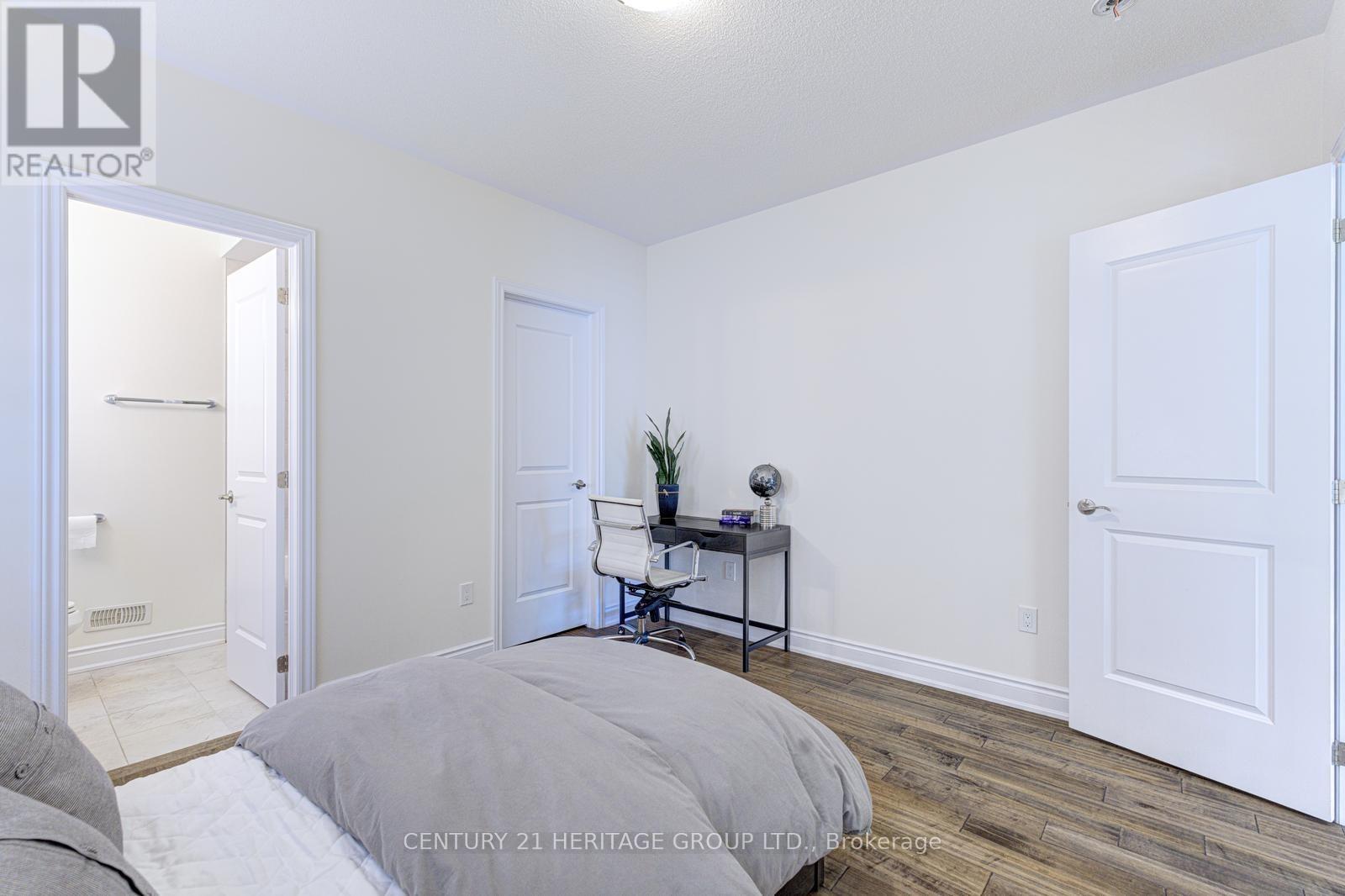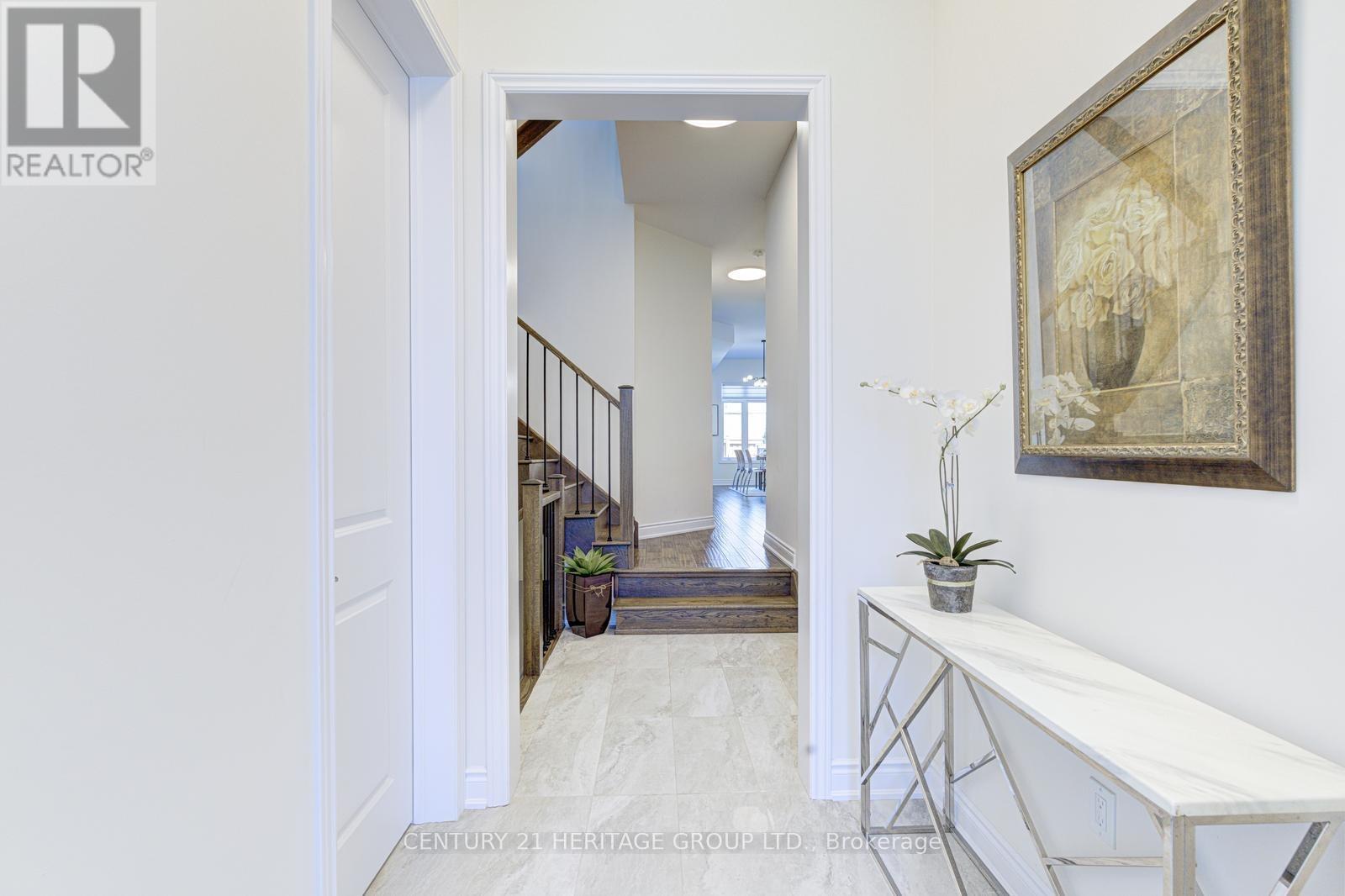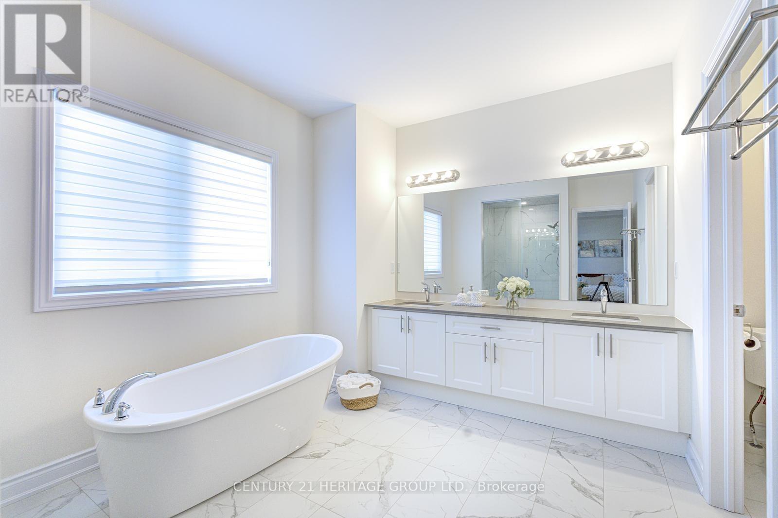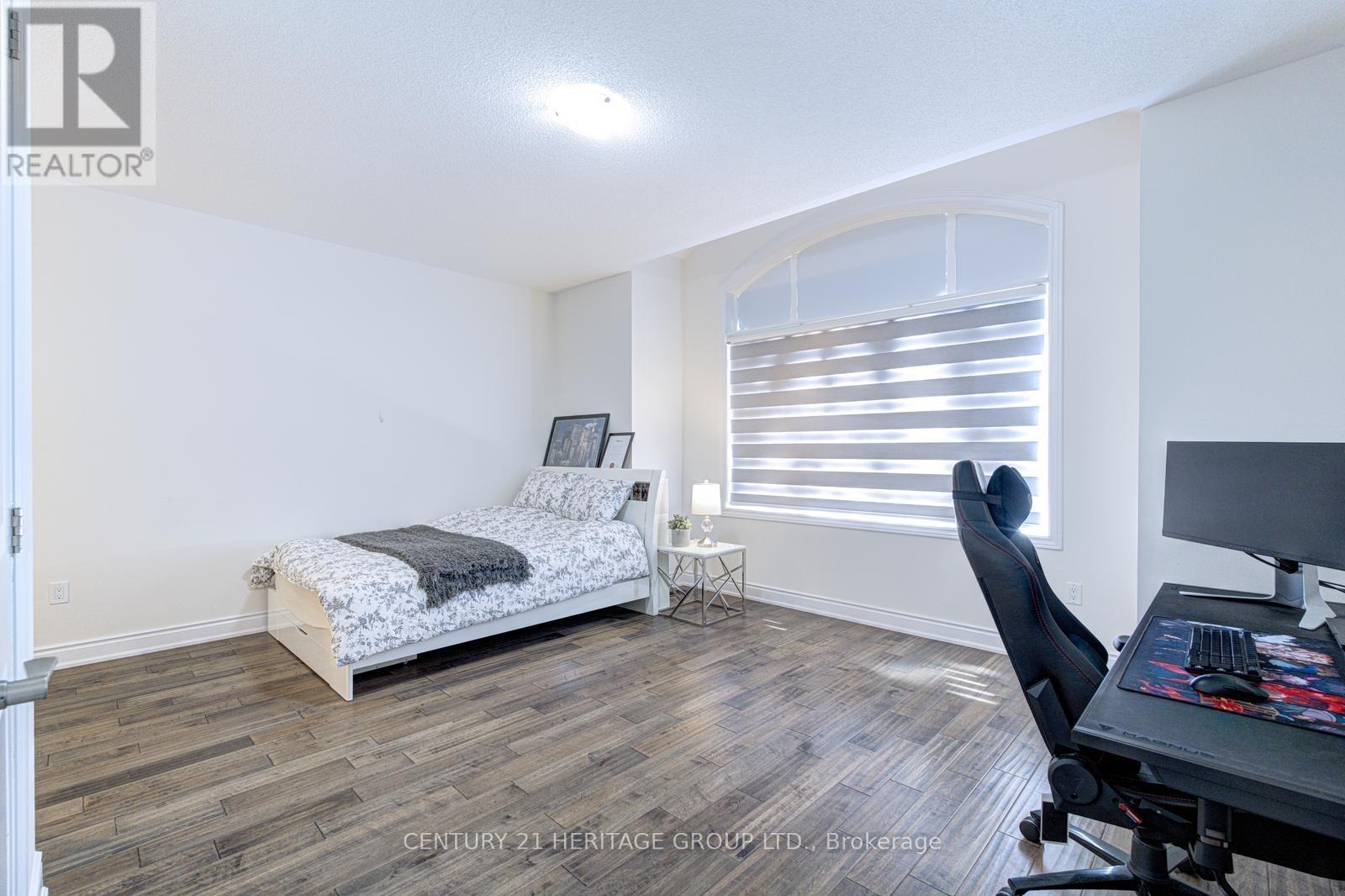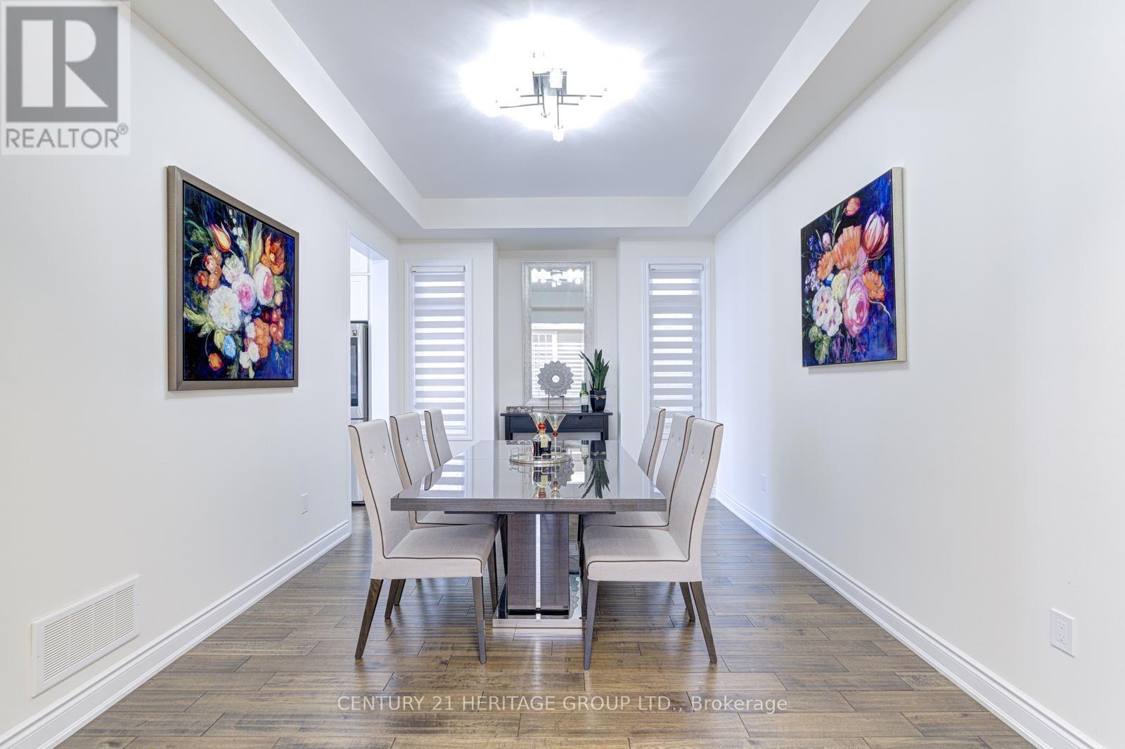 This stunning 4-year-new luxury home offers over 3,000 sq ft above grade and approximately 4,000 sq ft of total living space, including the finished basement. Featuring top-quality hardwood flooring throughout, this elegant residence blends modern design with exceptional comfort. The gourmet kitchen is equipped with high-end Bosch appliances, including a 5-burner cooktop, a large center island, and a premium Samsung refrigerator. It opens to a beautiful deck with a BBQ rough-in-perfect for entertaining family and friends. The open-concept main floor showcases a spacious family room and dining area, highlighted by a cozy electric fireplace and abundant natural light from large windows on both sides. A versatile main-floor den with French doors can easily serve as a home office, living room, or even a bedroom. Upstairs, you'll find a generous open-concept loft space, ideal as a family lounge or convertible into a fifth bedroom. The second floor also features a conveniently located laundry room with high-end LG washer and dryer. Additional upgrades include stylish zebra blinds throughout, as well as custom double-layered sheer curtains on the large patio door. The basement boasts high ceilings and enlarged windows, bringing in plenty of natural light. The home also includes a high-ceiling garage with EV rough-in and an upgraded air conditioning system. Ideally located close to parks, schools, highways, hospitals, and shopping, this exceptional property offers the perfect combination of luxury, convenience, and lifestyle. (id:50787)