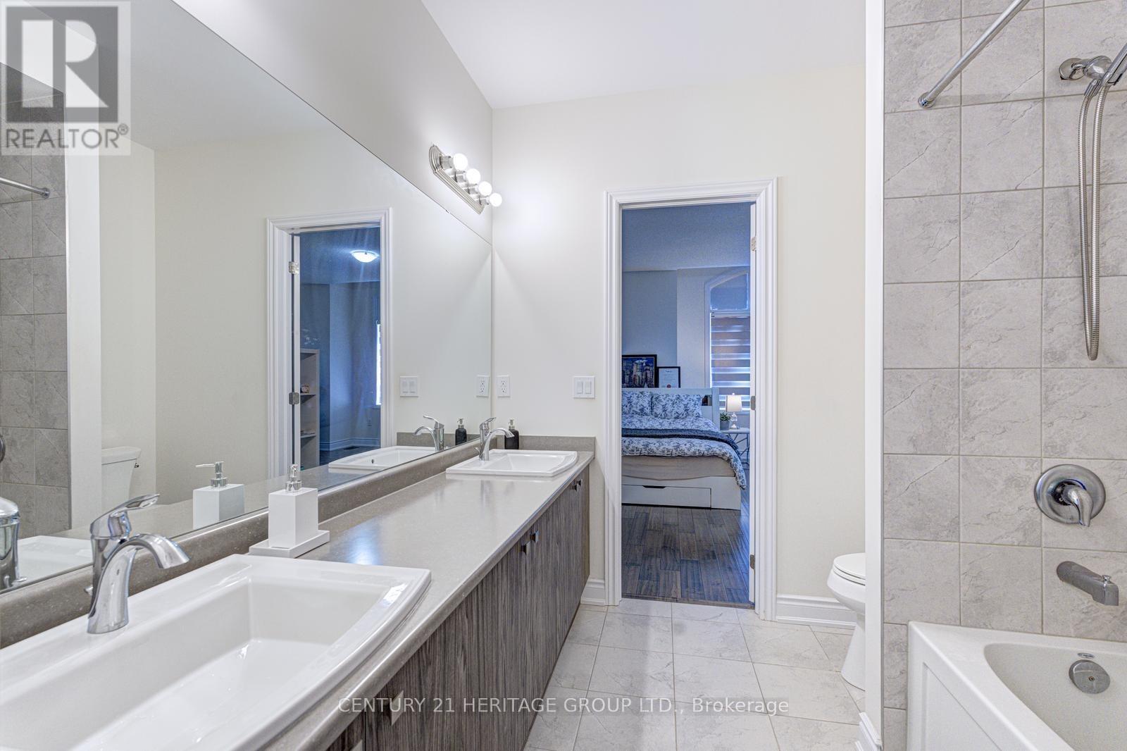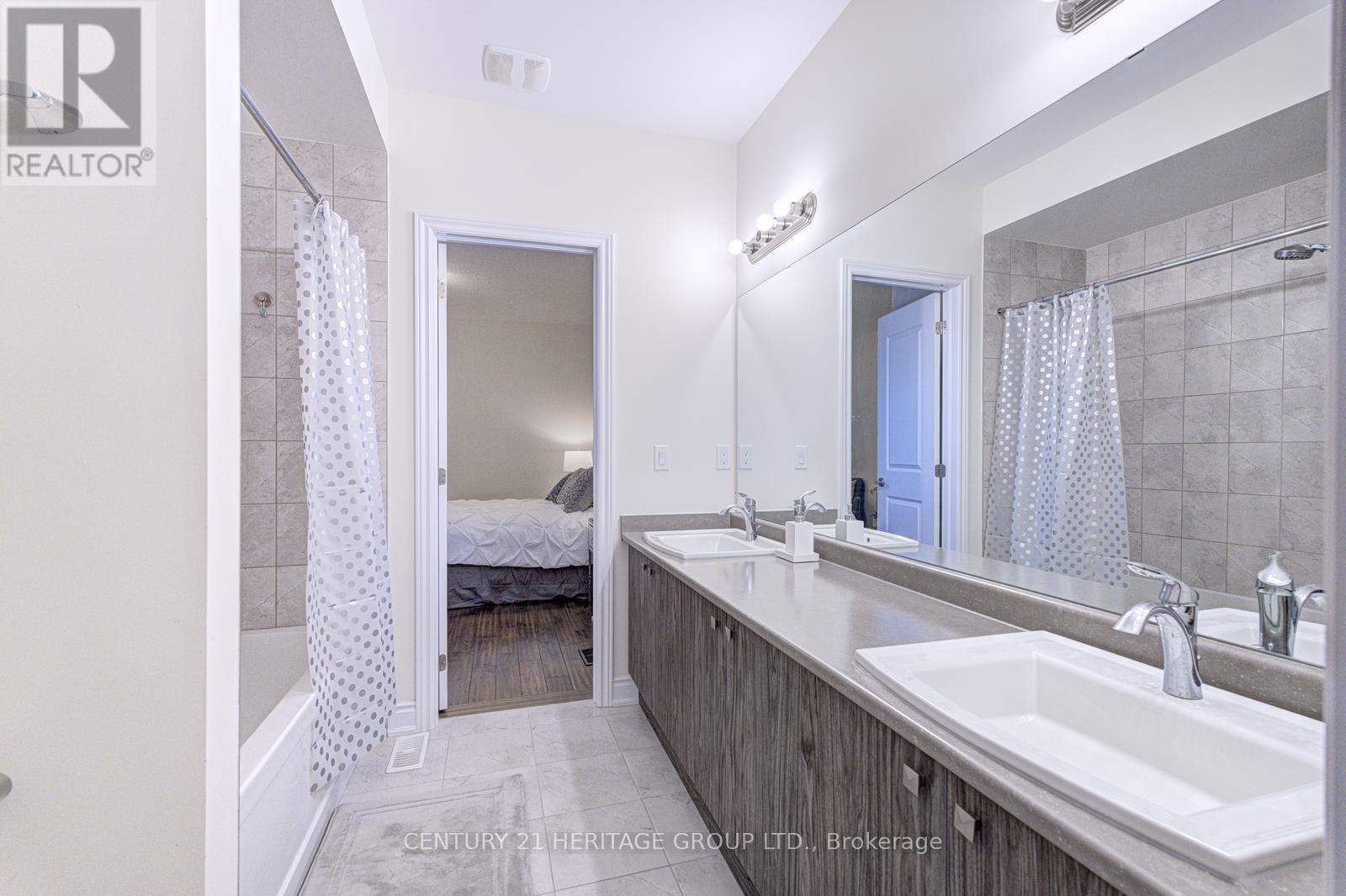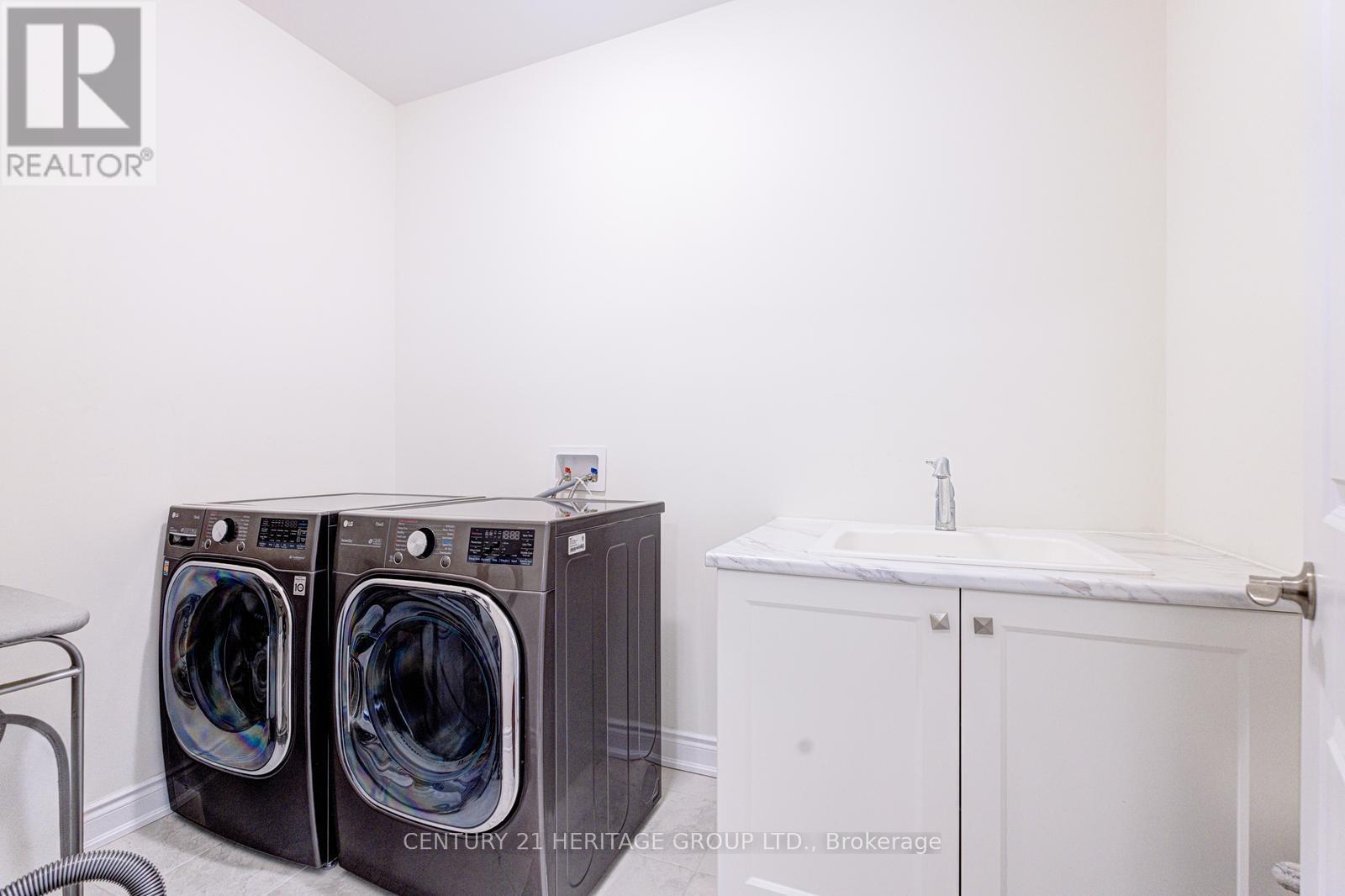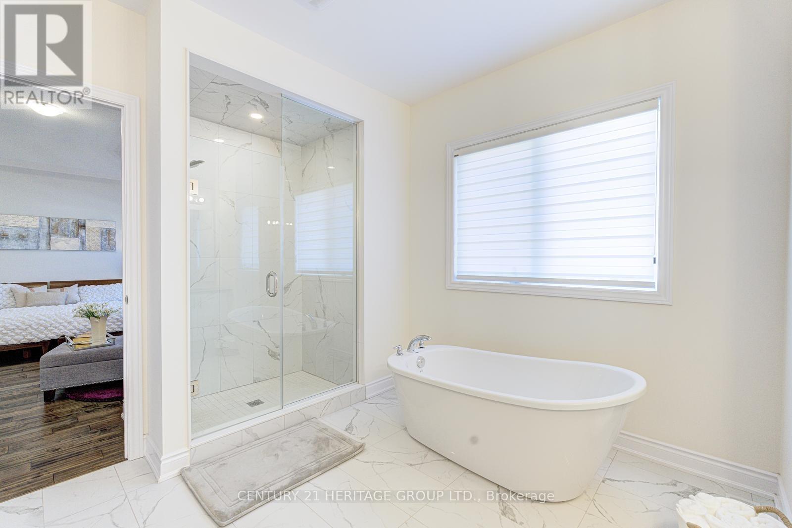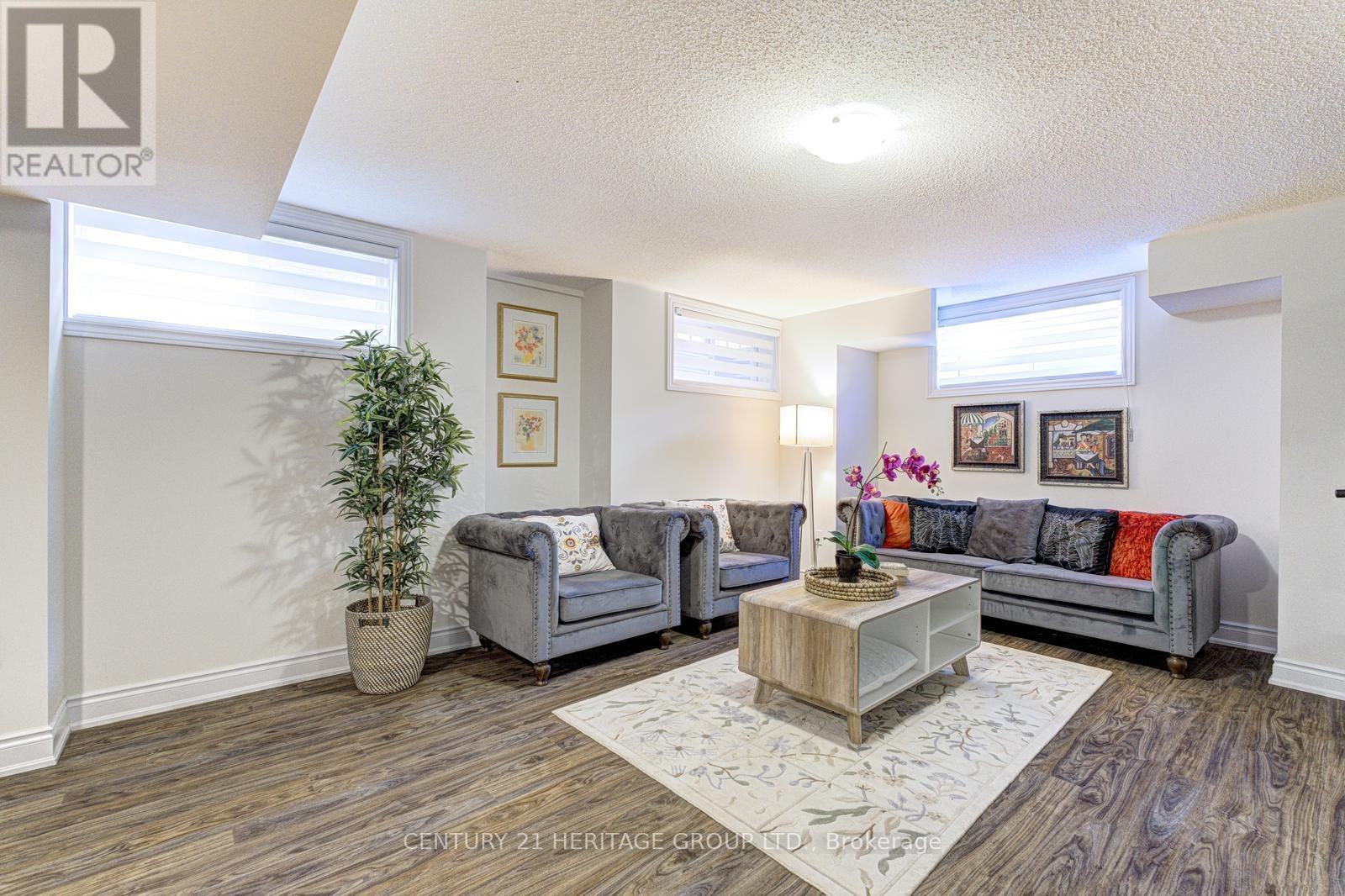 This stunning 4-year-new luxury home offers over 3,000 sq ft above grade and approximately 4,000 sq ft of total living space, including the finished basement. Featuring top-quality hardwood flooring throughout, this elegant residence blends modern design with exceptional comfort. The gourmet kitchen is equipped with high-end Bosch appliances, including a 5-burner cooktop, a large center island, and a premium Samsung refrigerator. It opens to a beautiful deck with a BBQ rough-in-perfect for entertaining family and friends. The open-concept main floor showcases a spacious family room and dining area, highlighted by a cozy electric fireplace and abundant natural light from large windows on both sides. A versatile main-floor den with French doors can easily serve as a home office, living room, or even a bedroom. Upstairs, you'll find a generous open-concept loft space, ideal as a family lounge or convertible into a fifth bedroom. The second floor also features a conveniently located laundry room with high-end LG washer and dryer. Additional upgrades include stylish zebra blinds throughout, as well as custom double-layered sheer curtains on the large patio door. The basement boasts high ceilings and enlarged windows, bringing in plenty of natural light. The home also includes a high-ceiling garage with EV rough-in and an upgraded air conditioning system. Ideally located close to parks, schools, highways, hospitals, and shopping, this exceptional property offers the perfect combination of luxury, convenience, and lifestyle. (id:50787)