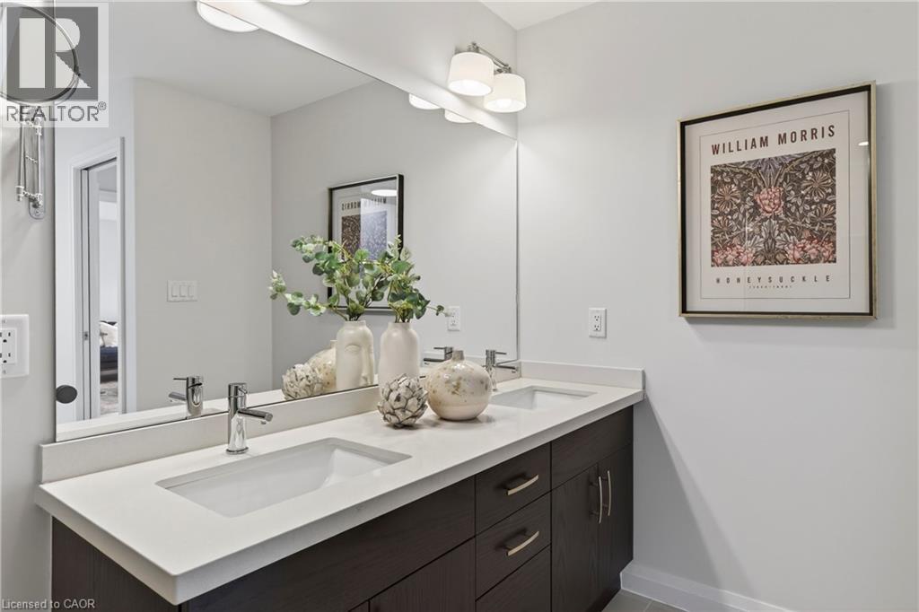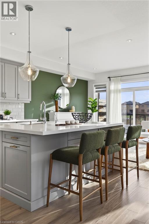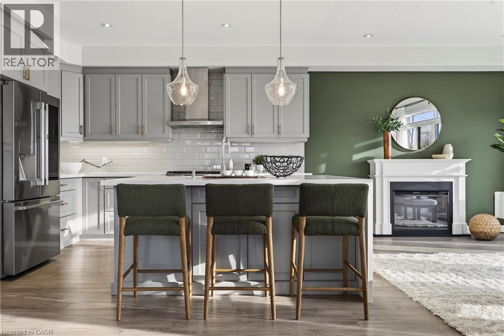 Beyond a home, Fallingwater is a statement of arrival and a masterpiece of the esteemed Losani Collection. This is not merely Unit #1; it is the vision that set the standard, the original model home that showcased the full potential of contemporary luxury living in Stoney Creek. Commanding the most expansive, pie-shaped lot, this end-unit sanctuary offers unrivaled privacy and a breathtaking, direct view over a tranquil outdoor pond—a serene vista enjoyed from your principal rooms. With only three units in the complex, exclusivity is paramount, and this residence represents the undisputed pinnacle. Step inside to discover over 2,441 square feet of impeccably designed, living space, artfully enhanced by high ceilings that amplifies the sense of light and volume. The home unfolds with the grace of a gallery, leading you to a sprawling 164 sq. ft. elevated terrace, your private stage for outdoor entertaining. Ascend further to the 241 sq. ft. rooftop terrace—a crowning glory offering panoramic views and an unparalleled space for sunset soirees or peaceful contemplation. While other, more modestly scaled units are available in the complex, Fallingwater stands apart. It is the largest, the first, and by every measure, the finest. This is the home for those who seek not just square footage, but significance; not just a view, but a vista; not just a unit, but a legacy property. Presented with professional photography that captures its exquisite d architectural brilliance, Fallingwater awaits its final curator. This is your chance to acquire the cornerstone residence of Stone Creek's most distinguished address. (id:50787)