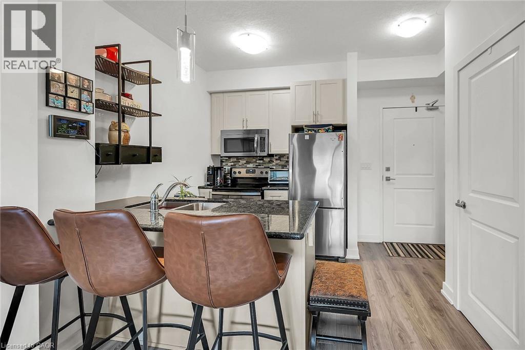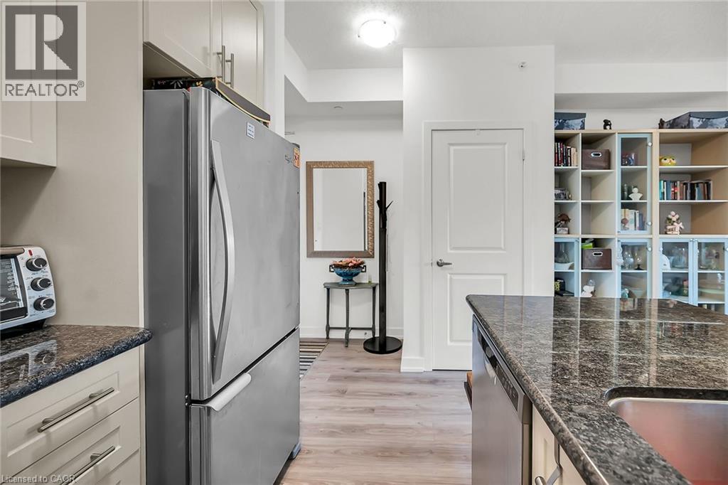 $522.34 MonthlyWelcome to Waterfront Trails --- Lakeside Living at Its Finest! Step into this immaculate 1-bedroom condo just steps from the lake. This bright, open-concept unit boasts floor-to-ceiling windows, modern laminate flooring, and an upgraded kitchen complete with quartz counters, a breakfast bar island, and premium stainless steel appliances. Enjoy the outdoors from your 63 sq. ft. private balcony, and appreciate the convenience of underground parking and a secure storage locker. High-end blackout blinds add comfort and privacy. This well-managed lifestyle building offers a host of amenities, including a party room, yoga studio, and an expansive rooftop terrace with comfortable seating and breathtaking lake views. The building also features eco-friendly geothermal heating and cooling, keeping your utility bills low. Located in a peaceful lakefront community, yet close to highways, shopping, and some of Ontario's best wineries, it's the perfect blend of serenity and accessibility. (id:50787)