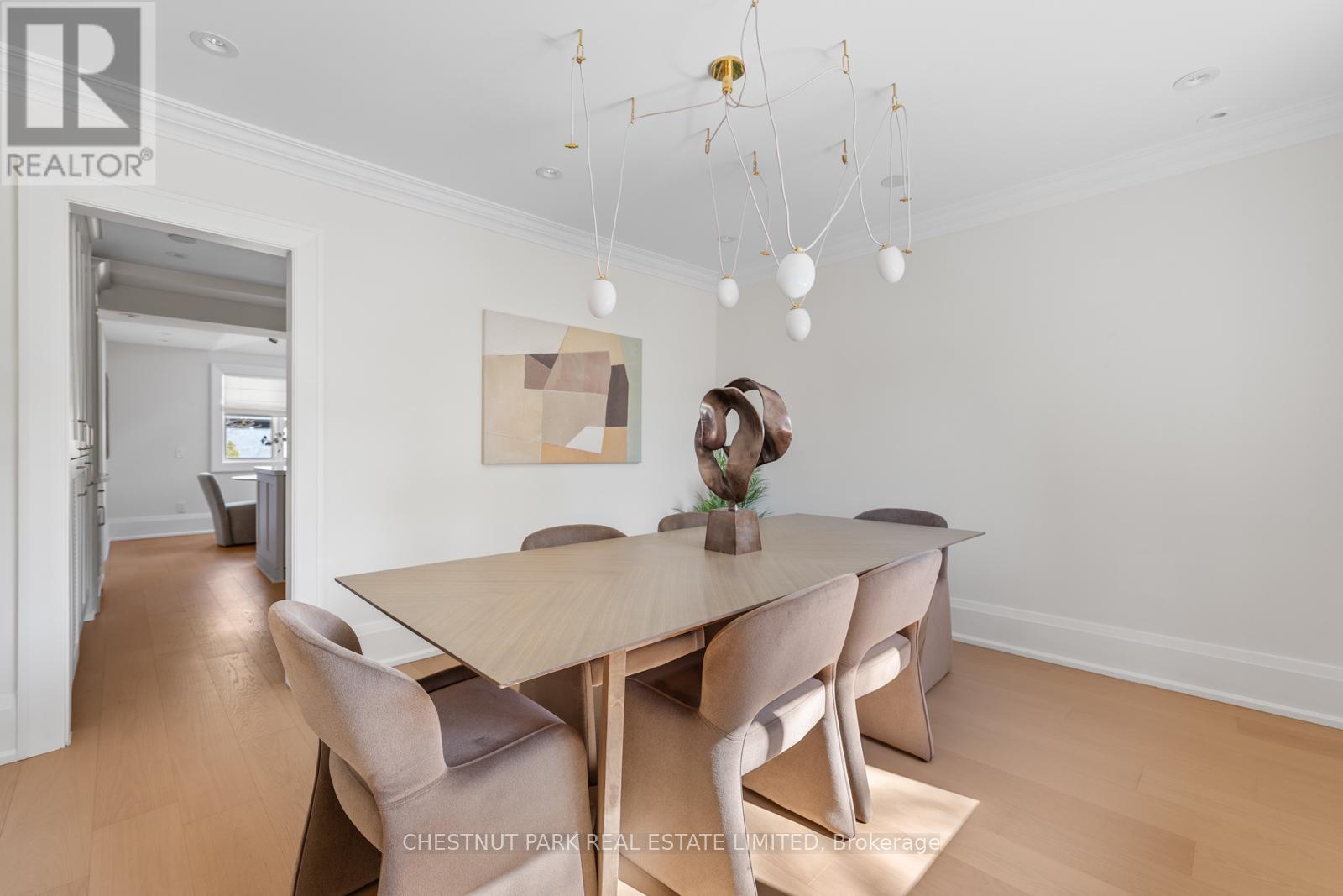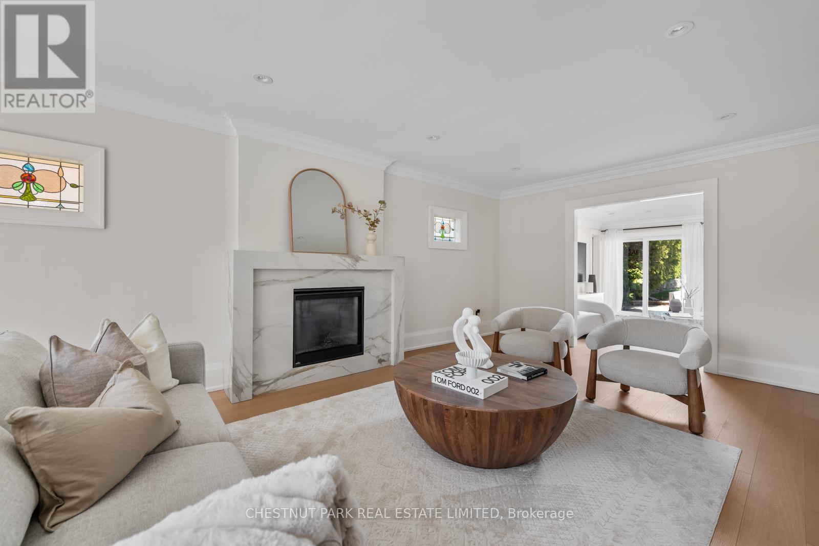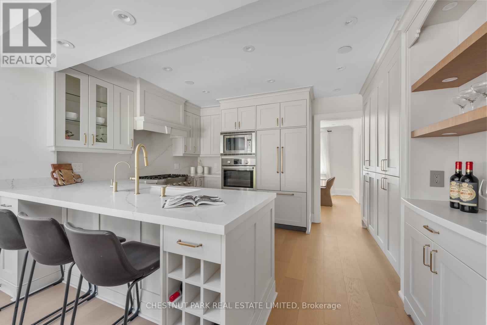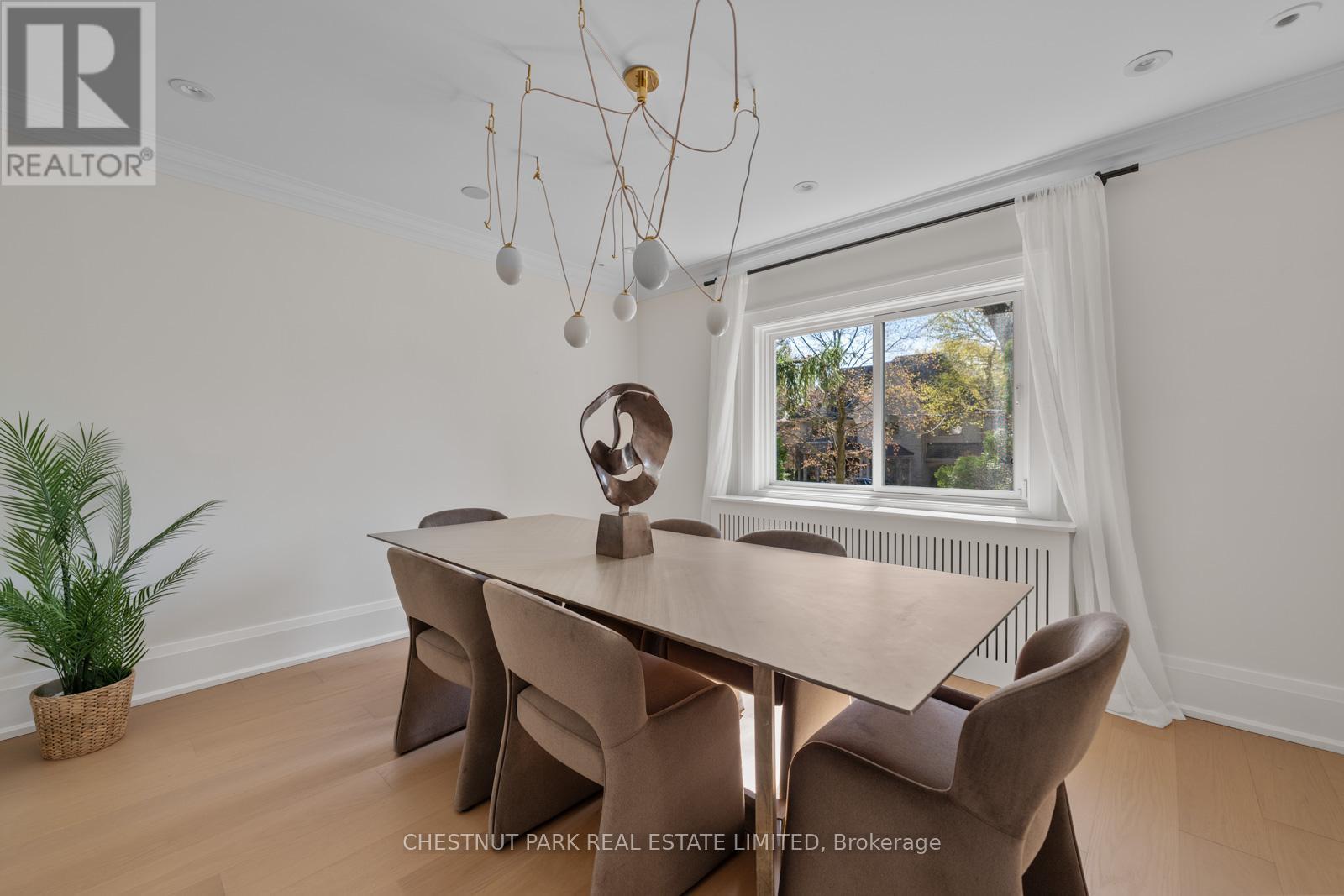 Situated on the best block of Weybourne Crescent, one of Lawrence Park's most coveted streets, this award-winning Georgian home blends timeless charm with modern family comfort. The manicured front yard frames a warm red-and-brown brick façade with a classic portico and beautiful dormers. Inside, a generous foyer with designer black natural stone heated floors, panelled designer closet, and a skylight sets an elegant tone. To the right, the formal dining room with a large window and designer chandelier flows naturally into the sun-filled kitchen, featuring refined finishes and a breakfast nook wrapped in curved windows overlooking the private backyard. The centre hall leads to a practical mudroom in the rear of the home with heated tiled flooring and a thoughtfully placed powder room also with heated floor. To the left of the main entrance sits the spacious formal living room with a gas fireplace connecting to an inviting family room with a custom media wall, arched built-in shelving, a large skylight, and floor-to-ceiling windows opening to the backyard oasis. Throughout the home, engineered white oak floors, pot lights, and integrated speakers elevate every space. The second floor offers a bright primary suite with an updated ensuite and walk-in closet, alongside two additional bedrooms and a convenient laundry closet. The third floor provides two more large bedrooms with built-ins and windows. Lower level extends the living space with two versatile rooms, a modern bath, a large laundry room, and a tidy utility room. Outdoor living shines with landscape lighting, smart irrigation, outdoor speakers, and rare parking for up to nine cars, including a two-car detached garage behind a Metal remote-controlled gate. Steps to Lawrence Station, Yonge Street, parks, and top schools, including TFS, Crescent, and Havergal, this turn-key residence offers exceptional lifestyle, location, and charm in one of Toronto's most sought-after neighbourhoods. (id:50787)