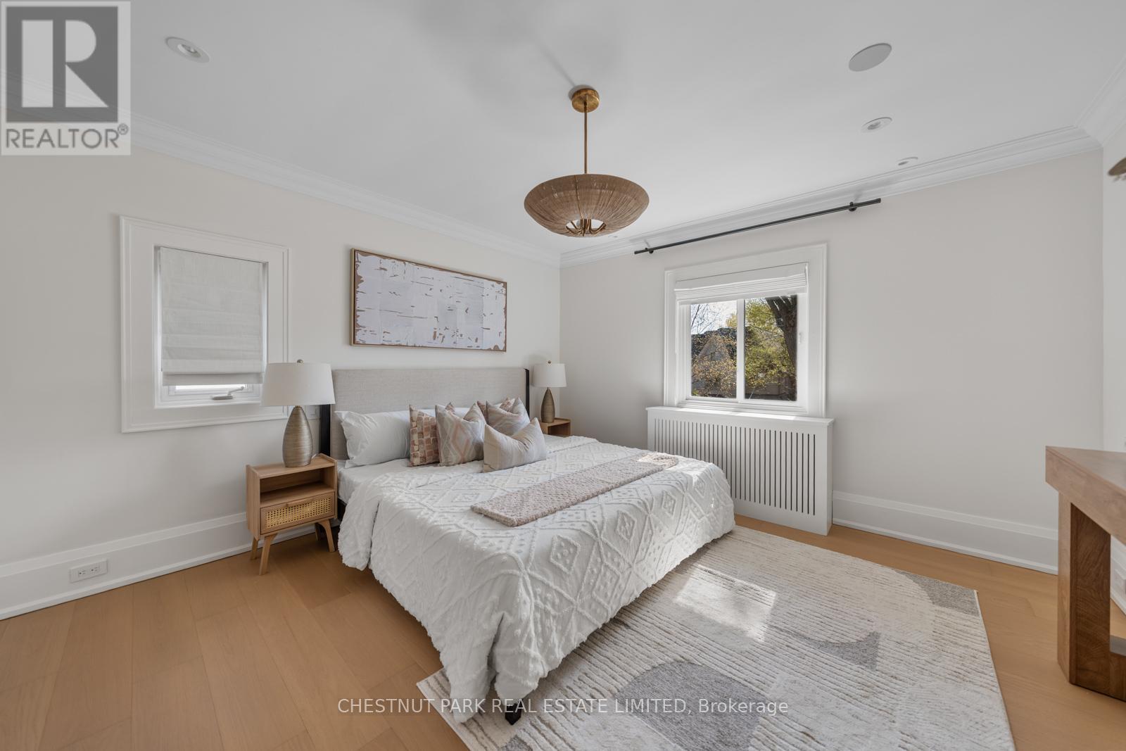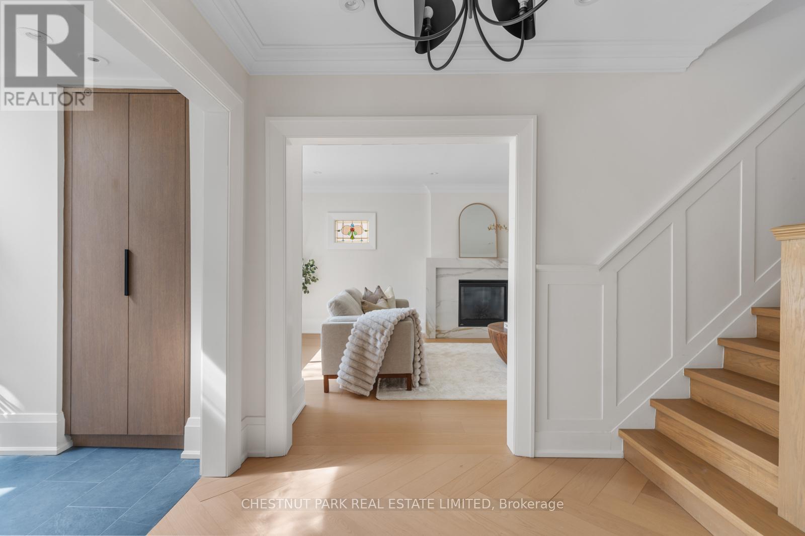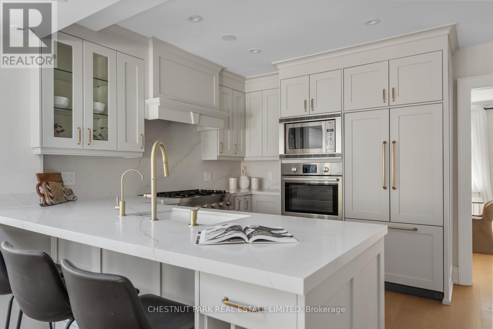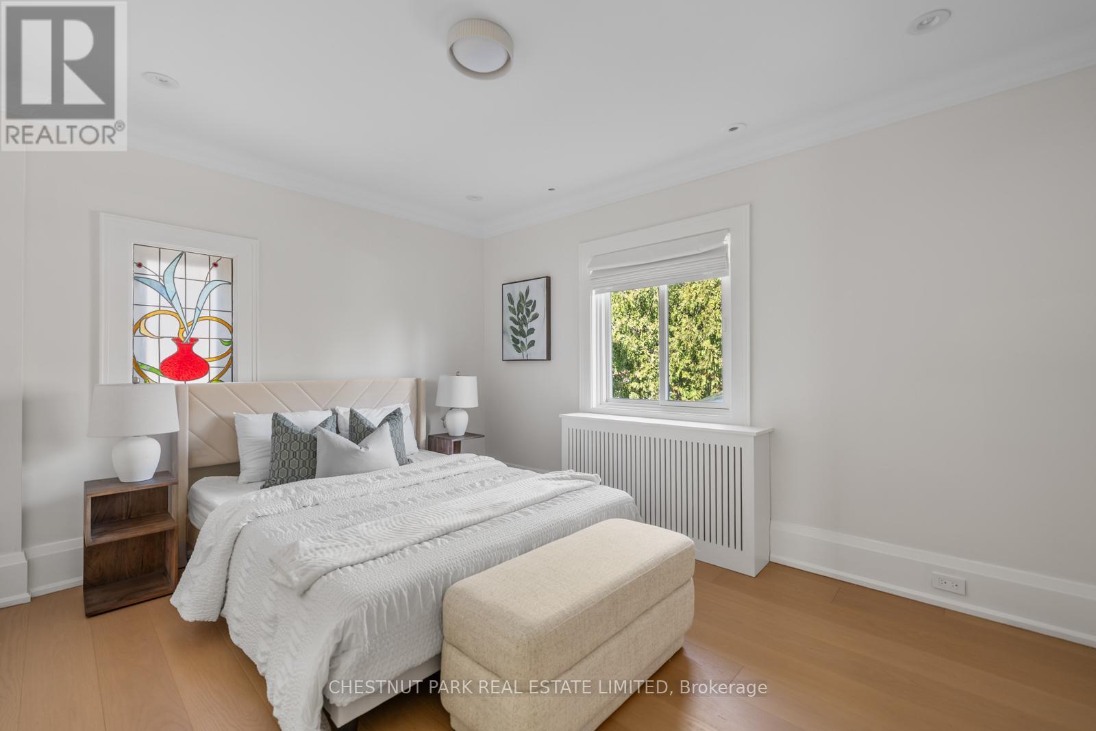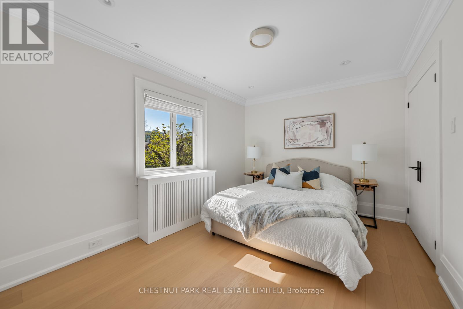 Situated on the best block of Weybourne Crescent, one of Lawrence Park's most coveted streets, this award-winning Georgian home blends timeless charm with modern family comfort. The manicured front yard frames a warm red-and-brown brick façade with a classic portico and beautiful dormers. Inside, a generous foyer with designer black natural stone heated floors, panelled designer closet, and a skylight sets an elegant tone. To the right, the formal dining room with a large window and designer chandelier flows naturally into the sun-filled kitchen, featuring refined finishes and a breakfast nook wrapped in curved windows overlooking the private backyard. The centre hall leads to a practical mudroom in the rear of the home with heated tiled flooring and a thoughtfully placed powder room also with heated floor. To the left of the main entrance sits the spacious formal living room with a gas fireplace connecting to an inviting family room with a custom media wall, arched built-in shelving, a large skylight, and floor-to-ceiling windows opening to the backyard oasis. Throughout the home, engineered white oak floors, pot lights, and integrated speakers elevate every space. The second floor offers a bright primary suite with an updated ensuite and walk-in closet, alongside two additional bedrooms and a convenient laundry closet. The third floor provides two more large bedrooms with built-ins and windows. Lower level extends the living space with two versatile rooms, a modern bath, a large laundry room, and a tidy utility room. Outdoor living shines with landscape lighting, smart irrigation, outdoor speakers, and rare parking for up to nine cars, including a two-car detached garage behind a Metal remote-controlled gate. Steps to Lawrence Station, Yonge Street, parks, and top schools, including TFS, Crescent, and Havergal, this turn-key residence offers exceptional lifestyle, location, and charm in one of Toronto's most sought-after neighbourhoods. (id:50787)