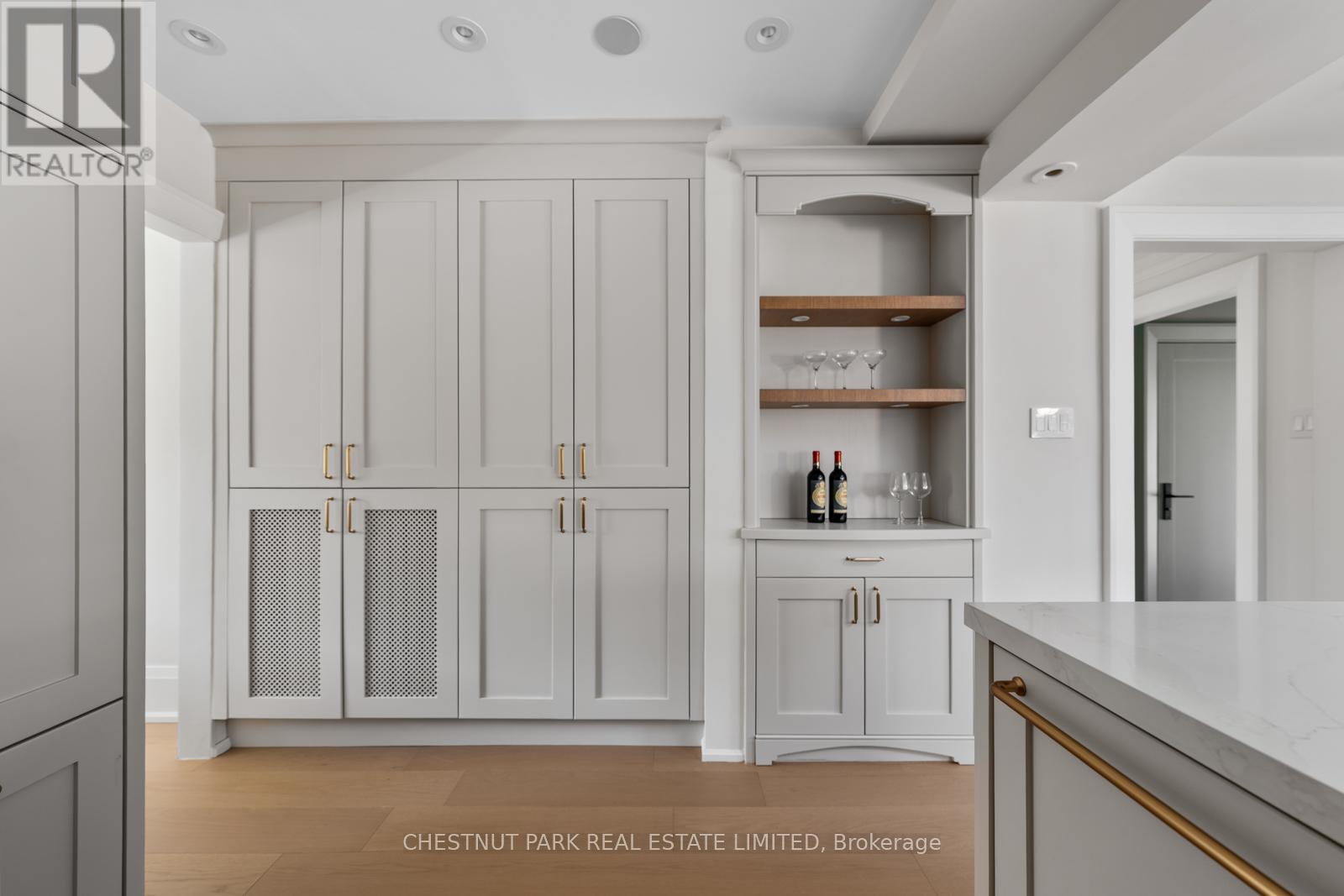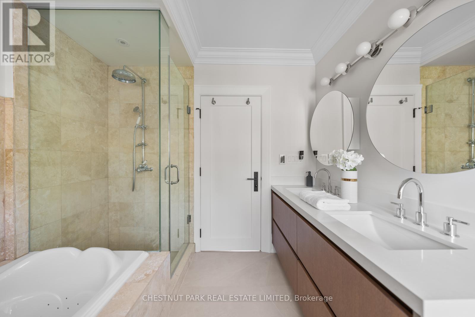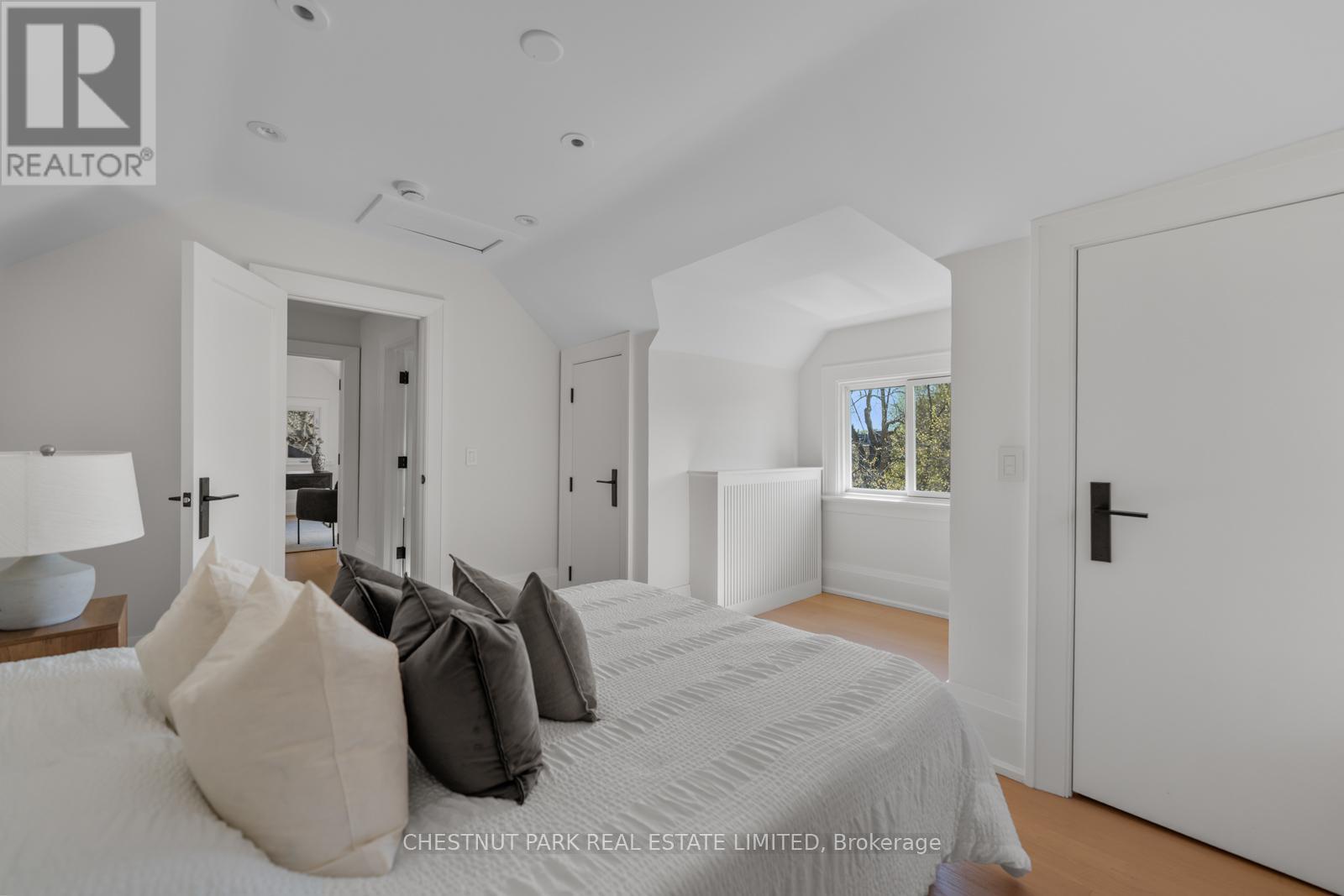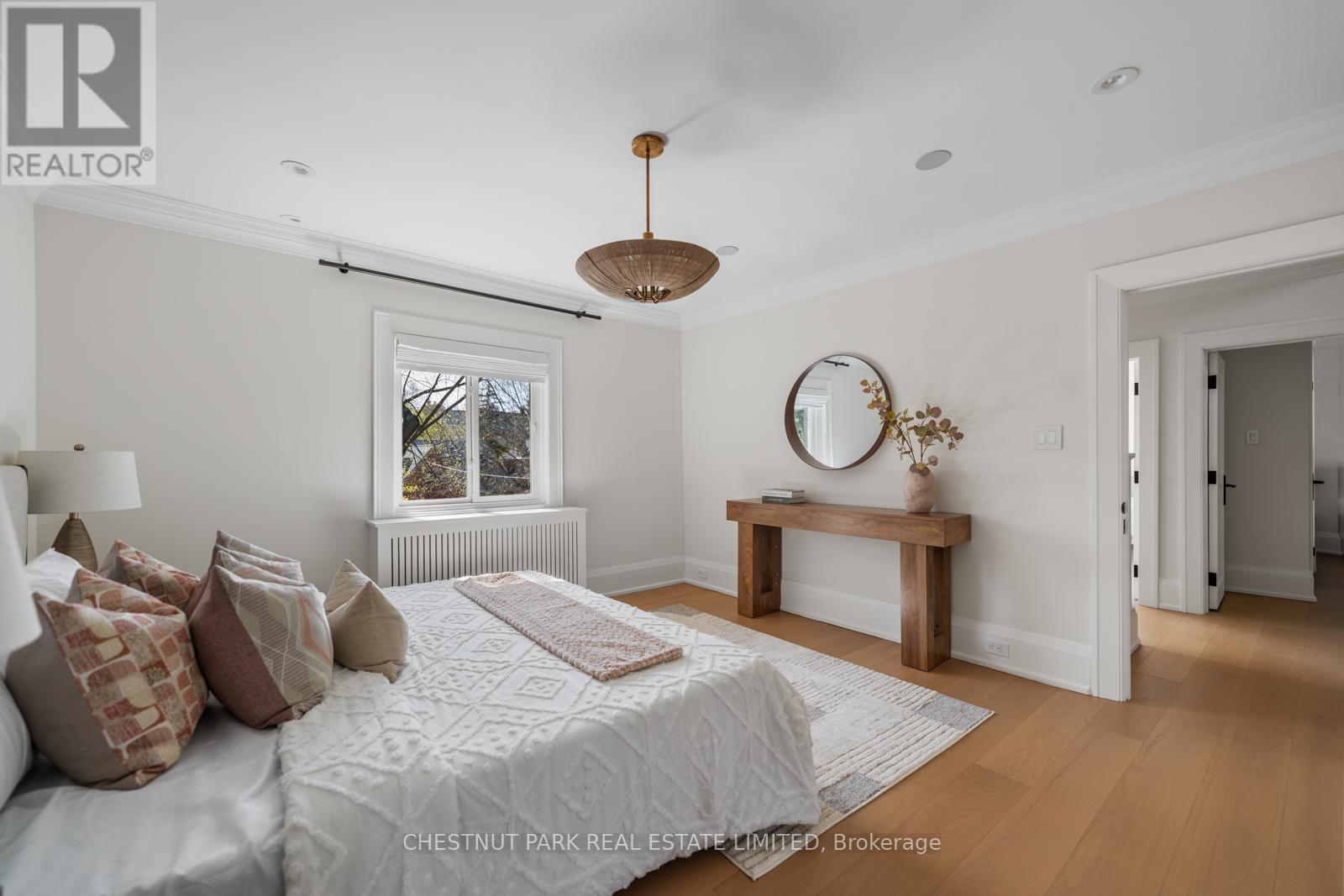 Situated on the best block of Weybourne Crescent, one of Lawrence Park's most coveted streets, this award-winning Georgian home blends timeless charm with modern family comfort. The manicured front yard frames a warm red-and-brown brick façade with a classic portico and beautiful dormers. Inside, a generous foyer with designer black natural stone heated floors, panelled designer closet, and a skylight sets an elegant tone. To the right, the formal dining room with a large window and designer chandelier flows naturally into the sun-filled kitchen, featuring refined finishes and a breakfast nook wrapped in curved windows overlooking the private backyard. The centre hall leads to a practical mudroom in the rear of the home with heated tiled flooring and a thoughtfully placed powder room also with heated floor. To the left of the main entrance sits the spacious formal living room with a gas fireplace connecting to an inviting family room with a custom media wall, arched built-in shelving, a large skylight, and floor-to-ceiling windows opening to the backyard oasis. Throughout the home, engineered white oak floors, pot lights, and integrated speakers elevate every space. The second floor offers a bright primary suite with an updated ensuite and walk-in closet, alongside two additional bedrooms and a convenient laundry closet. The third floor provides two more large bedrooms with built-ins and windows. Lower level extends the living space with two versatile rooms, a modern bath, a large laundry room, and a tidy utility room. Outdoor living shines with landscape lighting, smart irrigation, outdoor speakers, and rare parking for up to nine cars, including a two-car detached garage behind a Metal remote-controlled gate. Steps to Lawrence Station, Yonge Street, parks, and top schools, including TFS, Crescent, and Havergal, this turn-key residence offers exceptional lifestyle, location, and charm in one of Toronto's most sought-after neighbourhoods. (id:50787)