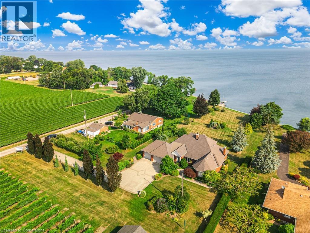 RARE OPPORTUNITY: LAKEFRONT LUXURY MEETS VINEYARD EXCELLENCE. Nestled along 120 feet of Lake Ontario shoreline, this extraordinary estate allows for both sophisticated living and vineyard cultivation. Set on a coveted 10.9 acres, this magnificent property offers an unparalleled lifestyle opportunity. Embrace the vintner's lifestyle with 8.5 acres of meticulously maintained vineyard featuring four distinguished grape varieties: Shiraz, Kerner, Sauvignon Blanc, and Gewürztraminer. Whether you're an enthusiast seeking to produce your own collection or a connoisseur desiring the ultimate wine country lifestyle, this vineyard offers both prestige and potential. The property's shoreline has been professionally reinforced and protected, ensuring lasting enjoyment of your waterfront investment. Crafted in 1995 by the esteemed builder this 2,543 square foot residence features four bedrooms, 2.5 bathrooms, triple car garage and municipal water. The main-floor primary suite offers views of Lake Ontario, a walk-in closet and an updated 4-piece ensuite. Additional structures include a detached garage/workshop with concrete flooring and hydro service, and a solid 48' x 24' barn. Home features a propane fueled automatic backup power generator. This exceptional estate represents a once-in-a-lifetime opportunity to acquire a premium lakefront property with productive vineyard acreage—a combination rarely found. Here, luxury living meets agricultural heritage in perfect harmony, offering not just a home, but a distinguished lifestyle and potential legacy. Please Note: some photos have been virtually staged. (id:50787)