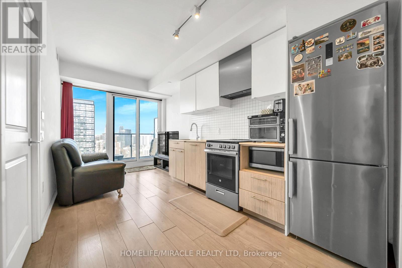 $647 MonthlyRare Brightspacious 1+Den with unobstructed east views ith 1 parking and 1 locker included. A large open balcony-perfect for morning coffee or evening relaxation. Freshly painted with new flooring and modern light fixtures throughout. Functional layout with a versatile den ideal for a home office or study. Open-concept kitchen with quartz countertops and stainless steel appliances. Located in downtown Toronto, steps to Eaton Centre, TMU, TTC/subway, restaurants, and the Financial District. Enjoy premium amenities including a 16,000 sq ft rooftop terrace, gym, and outdoor pool. Move-in ready (id:50787)