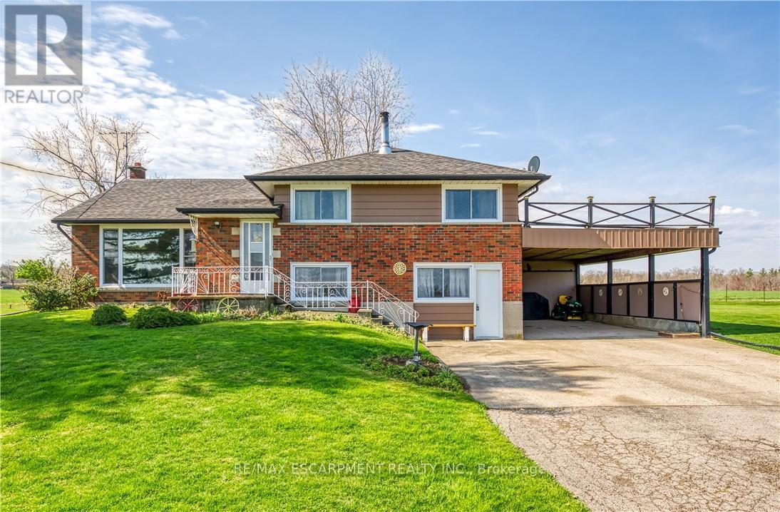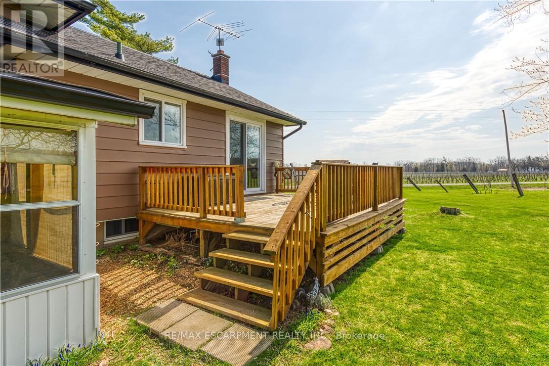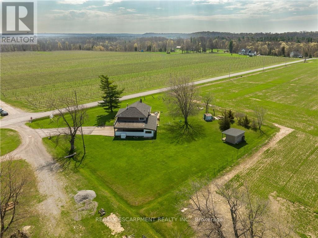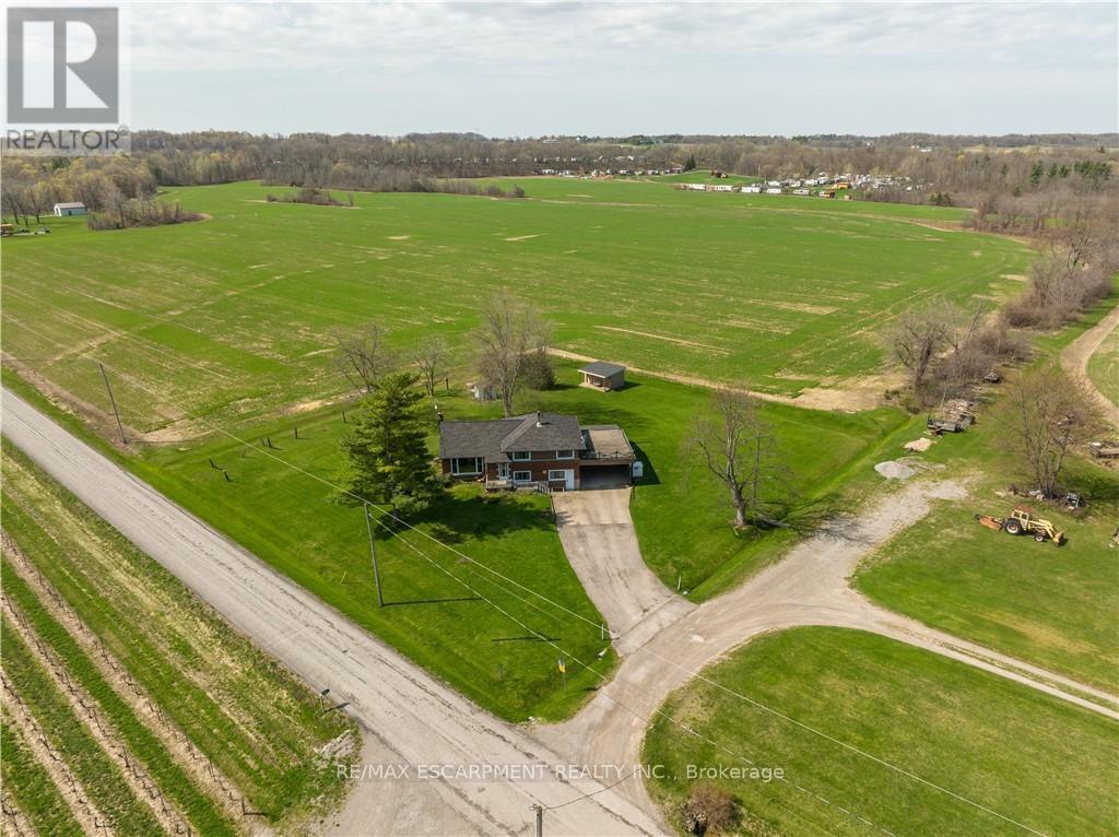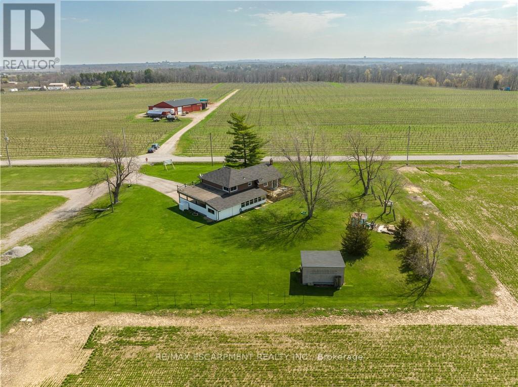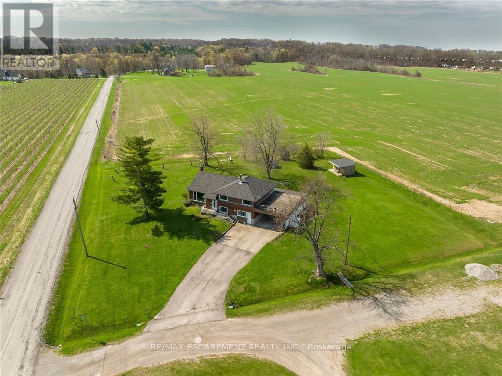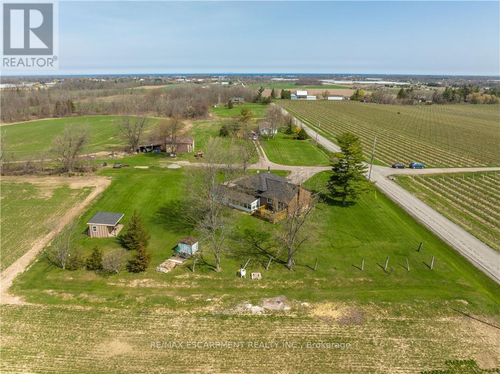 A rare opportunity to own prime real estate on the Lincoln Bench! Privacy & peaceful living are available at this picturesque 56 acre property. Located on a dead end road with views of farmer's fields everywhere you look. The property includes 38 workable acres & 13.5 acres of bush. 3 road frontages (Fifteenth Street, Seventeenth Street and Bigger Avenue). Well maintained 3 bedroom side split with a partially finished basement. Foyer has ceramic tile flooring and a double entry way closet. Kitchen includes a ceramic tile backsplash and ceiling fan. The formal dining room features laminate flooring and a patio door that leads to the rear deck overlooking the fields. Living room has a large north facing window and laminate flooring. The 4-piece bathroom offers a bath fitter tub/shower. Cozy main floor family room brings the country feel to life with a wood stove, laminate flooring and a double closet. Conveniently located mud room off the carport with two closets. Large sunroom off the back of the carport has new flooring (2022) and offers another space for you to enjoy that country lifestyle. The basement offers a rec room with wood wainscoting and pot lights. Garden shed in rear yard. Tar and gravel roof over the car port; asphalt shingles over the rest of the home (replaced in 2017). All windows were replaced within the past 5 years. Bell Expressvu TV available at the house, not currently in use. NWIC is current internet provider. (id:50787)