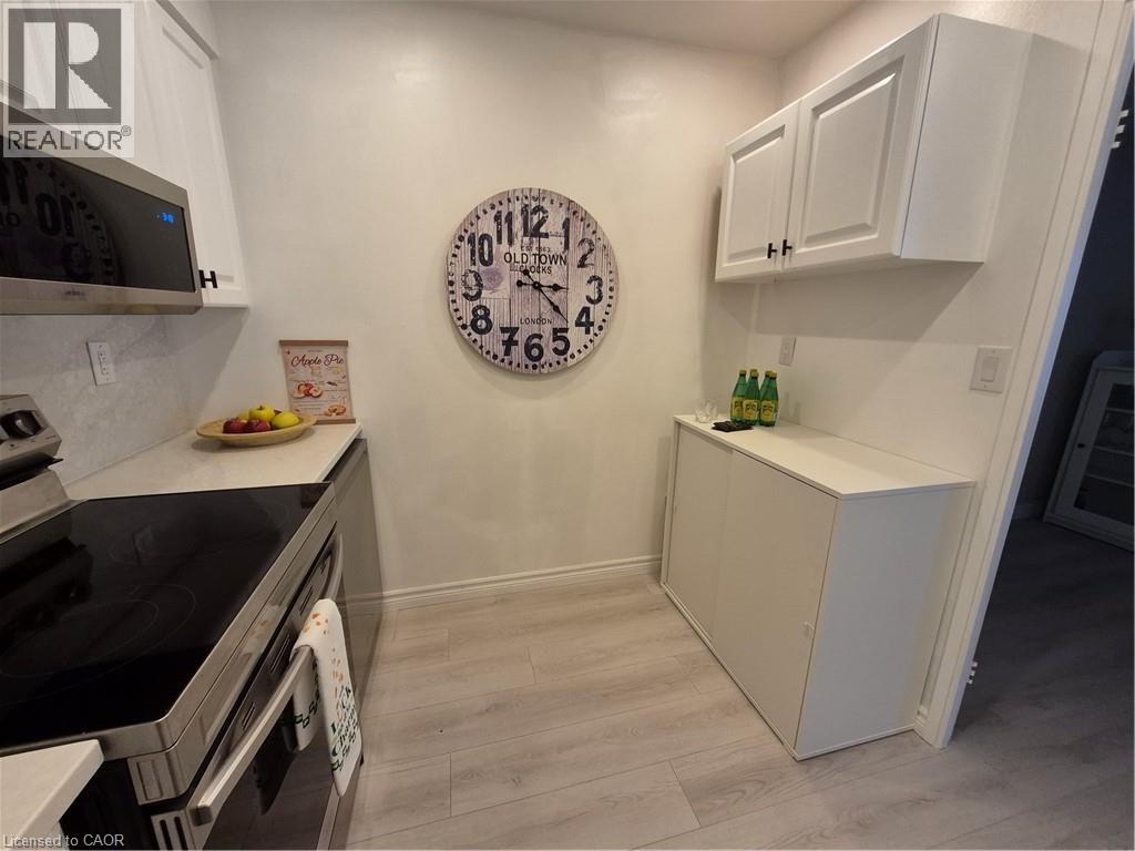 Welcome to a well-maintained renovated two level condo with 3-bedrooms, 1.5 bath in the north end of Brantford. This condo offers approximately 1199 sq.ft. of living space. Renovated in 2024/2025 including new electrian panel/wiring, high quality 12mm laminate flooring throughout, numerous pot lights, high baseboards, quality appliances, new toilets & vanities. The main level features a sun filled living room with pot lights & walk-out to balcony, inviting dining room, an updated white kitchen with stainless steel appliances, pot lights, upgraded sink & faucet & a main floor bedroom that can be used as den/office & reno'd 2pc bath & closet. The reno'd upper level comes complete with two spacious bedrooms, the four piece bath, 2nd balcony & the in-suite laundry for added convenience. The large master bedroom has wall to wall windows, walk in closet & walk-in storage room. Condo fees include heat, hydro, water, building insurance, exterior maintenance, landscaping, recycling & 2 parking spaces - 1 underground & 1 above ground. Building amenities include an exercise room, party room, library/extra laundry area. Just minutes to Highway 403 & numerous shopping centres, restaurants, schools, public transit & walk to Gretzky Community Sports Centre. (id:50787)