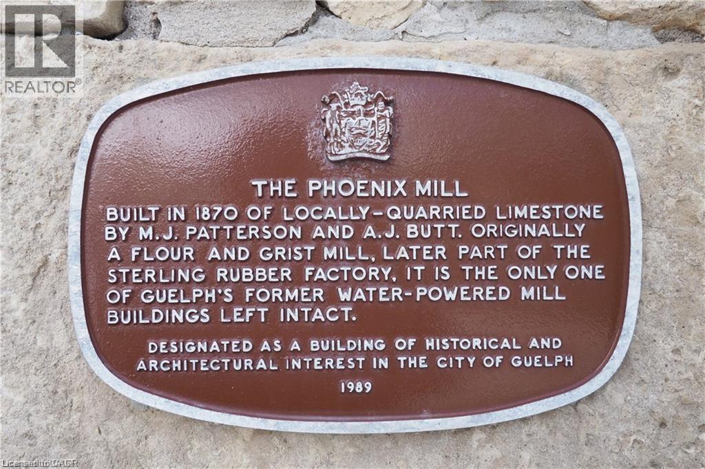 Public Remarks: FIRST TIME BUYERS OR SENIORS !! Establish your roots in this spacious 2-bedroom, 2-bathroom condominium located in the historic Phoenix Mill — a beautifully restored limestone building dating back to circa 1870. With only six other units in the building, this unique property offers both privacy and the ease of condominium living in a truly one-of-a-kind heritage setting. This bright main-floor suite features its own private entrance, approximately 980 square feet of living space, 9-foot ceilings with elegant crown molding, large deep-silled windows, and beautiful hardwood flooring throughout. The thoughtful layout includes a generous primary bedroom with double closets and a cheater door to the 4-piece ensuite, which offers a jetted tub and separate shower. The second bedroom is also spacious, with ample natural light and a double closet. A 2-piece guest bath and convenient in-suite laundry complete the floor plan, providing comfort and functionality. Nestled beside Howitt Creek, the Phoenix Mill offers a serene park-like setting surrounded by mature trees and benches, creating a peaceful outdoor retreat just steps from your door. Owners of this building also have access to the amenities at 358 Waterloo Avenue, which include a small fitness centre, party room, and outdoor BBQ and picnic area — perfect for enjoying gatherings with friends and family. This desirable location is directly across from the Speed River and the Royal Recreation Trail System, providing endless opportunities for walking, cycling, and connecting with nature. It’s also within walking distance to downtown Guelph, the River Run Centre, public transit, restaurants, shops, and offers quick highway access for commuters. A rare opportunity to own a piece of Guelph’s history in a heritage building that blends timeless architecture with the conveniences of modern living. (id:50787)