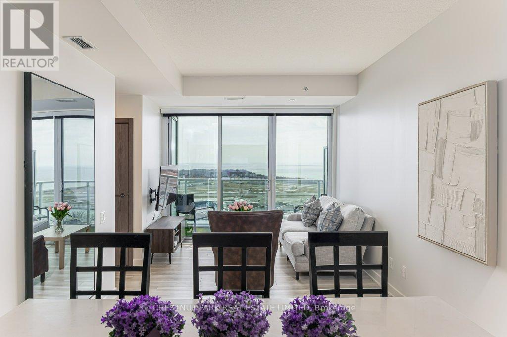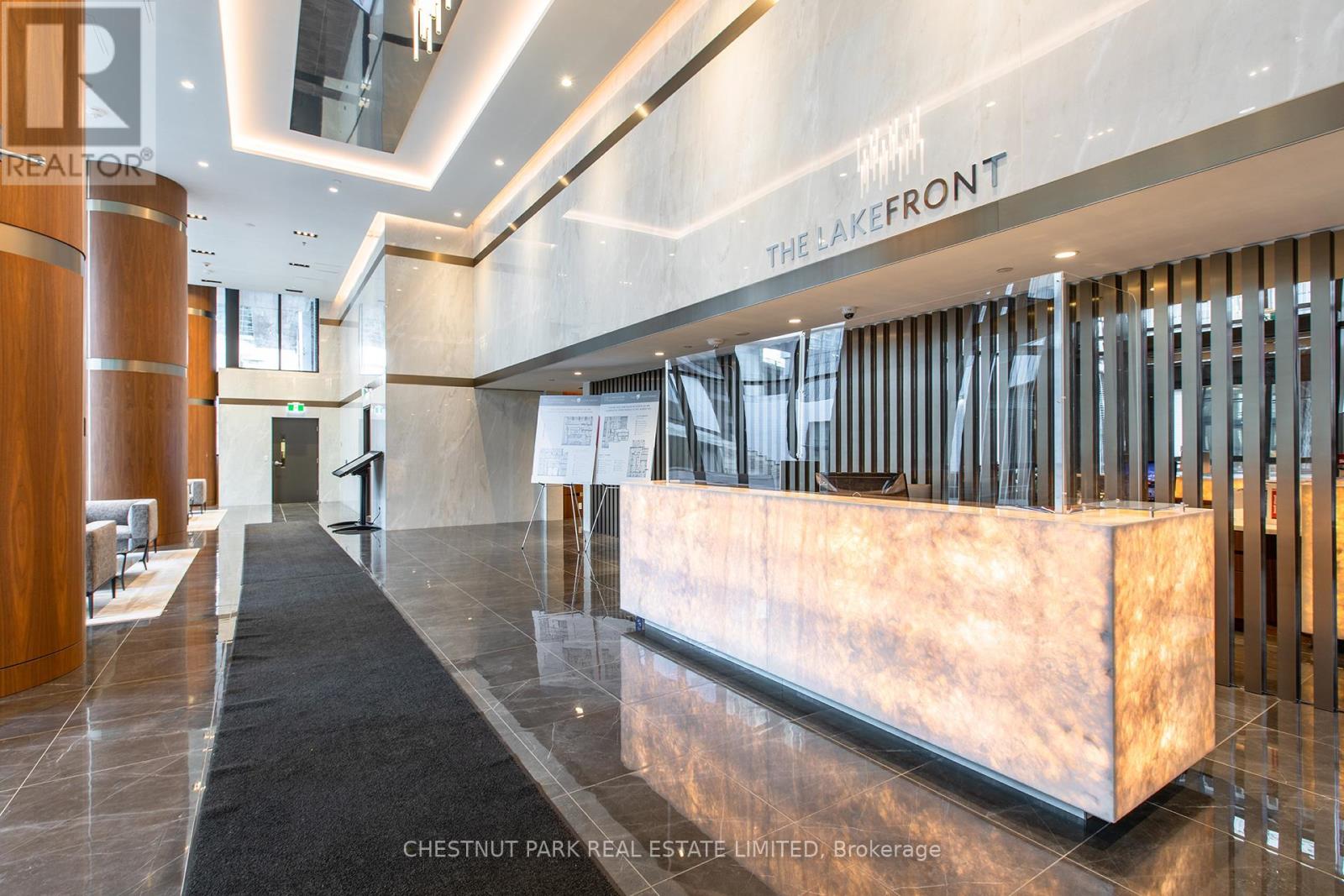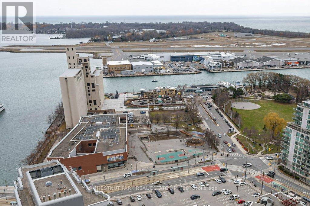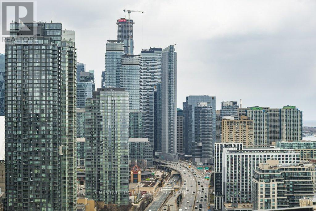 Outstanding unobstructed south, east and west views through the expansive wall-to-wall windows of this beautifully upgraded corner suite. Walk out to an open balcony to enjoy the island and lake views. Enjoy tranquility in the sky while living in the most vibrant part of the city! This suite is one of the premium units above the 31st floor that have 9' ceilings and a long list of superior features. This includes custom kitchen wood grain cabinetry, including integrated appliance panels, soft-close drawers, marble tile backsplash, stone counters, large single stainless steel sink with Grohe faucet. Owner has upgraded with a custom center island breakfast bar with matching Caesar stone waterfall countertop. Appliances are Bosch and Panasonic. New stack washer/dryer. Both 4-Piece bathrooms have modern skirted toilets, surrounded by marble. The guest bathroom has a new custom movable glass enclosure. This is a three-bedroom suite with generous closets with organizers. The third bedroom is presently being used as a den. This is the most comfortable suite! Enjoy 23,000 SF of amazing amenities that include a rooftop sky garden on the 47th floor with BBQ's, dining and fireside sitting areas. Other floors include a fitness area, spa, music and theatre rooms, to mention just a few. Ideally located, this building is within walking distance of the iconic, historical refurbished 50,000 SF Loblaws flagship store, nearby LCBO, TTC, and easy access to Lakeshore Blvd, Gardiner Expressway, and Billy Bishop airport. Steps to the best entertainment venues this city has to offer. Roger's Centre, Scotia Plaza, Ripley's Aquarium and numerous fabulous restaurants, cafes, bars and theatres. Opportunity awaits! (id:50787)