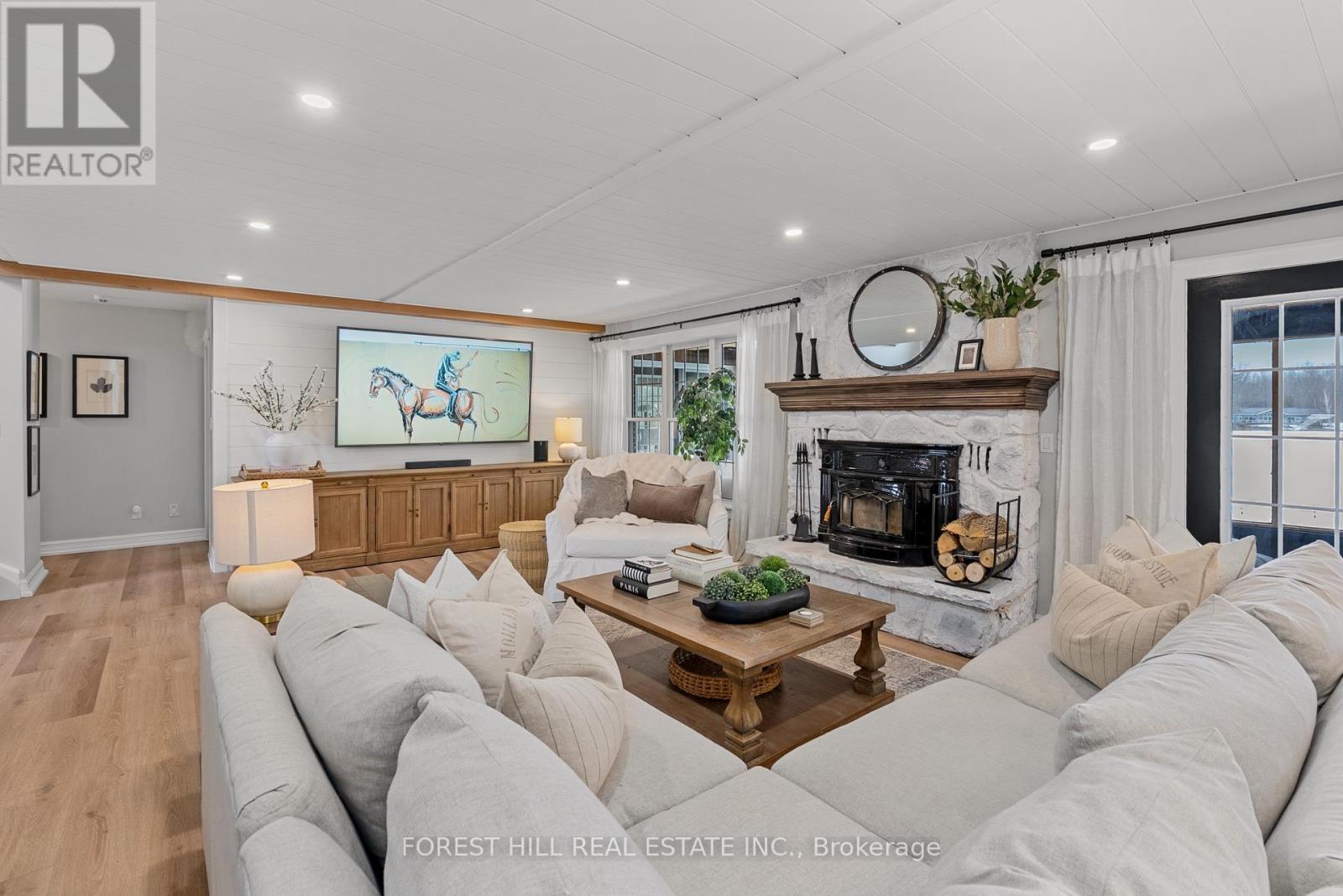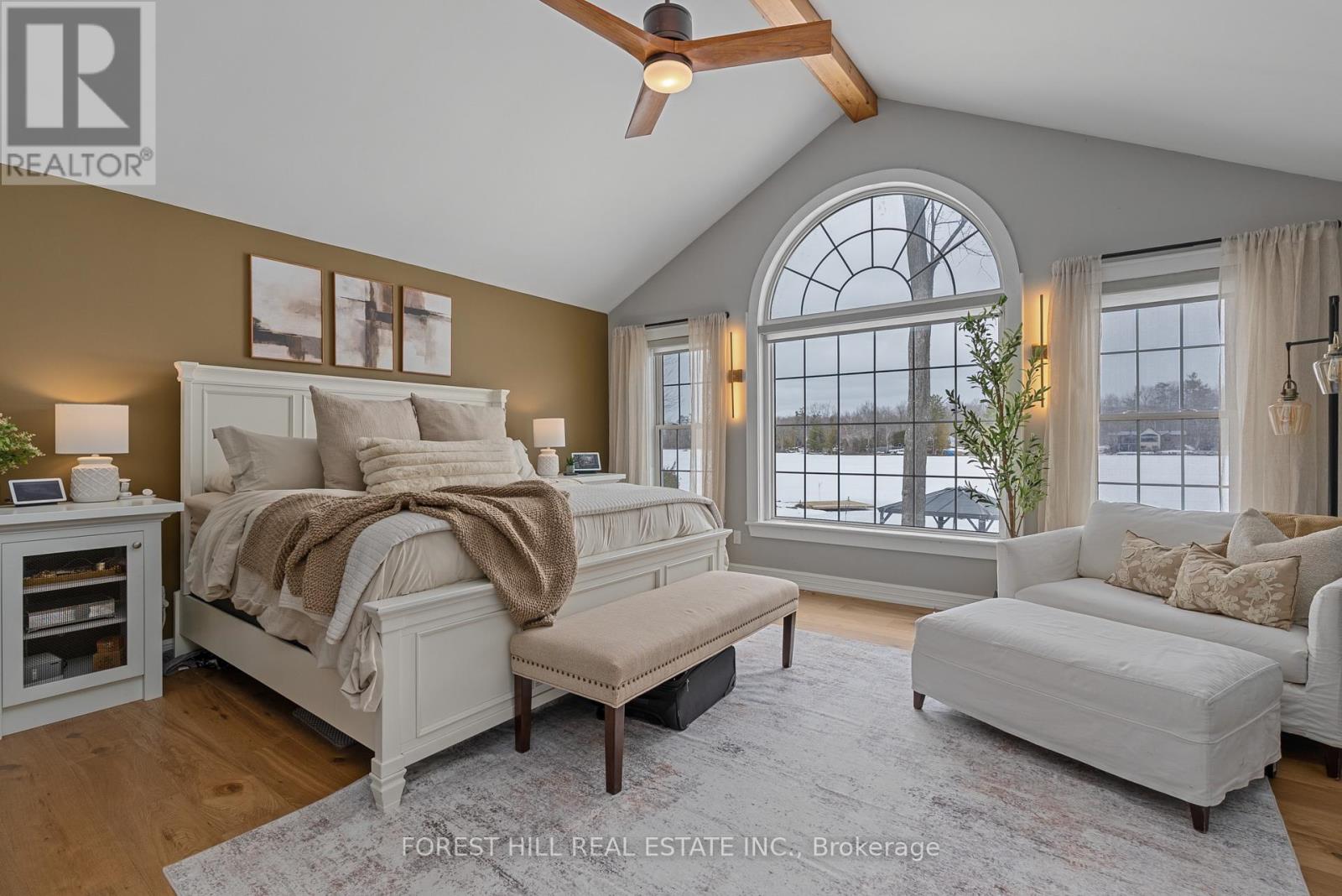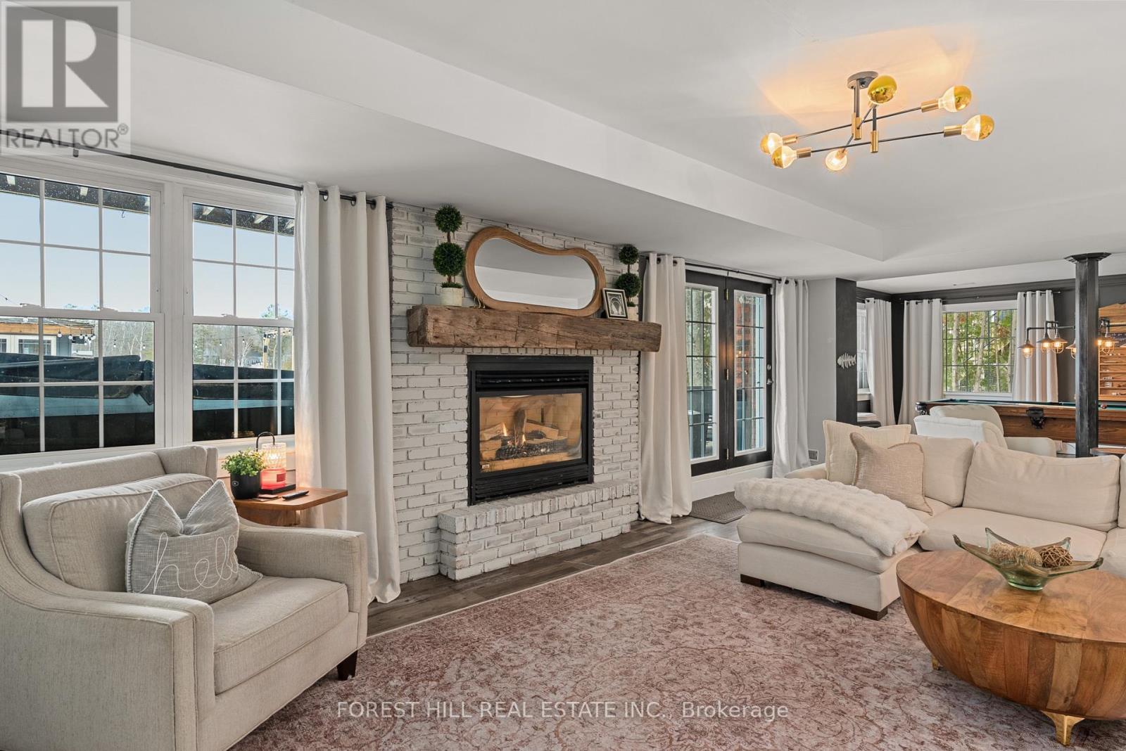 Welcome to this extraordinary, fully renovated waterfront residence offering refined design and effortless lakeside living. Set on a sandy, clean shoreline, this property delivers a rare and highly desirable waterfront experience, ideal for both relaxation and entertaining. chef-inspired kitchen is the heart of this exceptional waterfront home, featuring stainless steel appliances, a built-in buffet, and a large island, with walkout to a wraparound Muskoka room complete with sauna and outdoor kitchen-perfect for seamless indoor-outdoor living and entertaining. The home showcases stunning light flooring throughout, a new light oak staircase, custom millwork, shiplap detailing, and wood beam accents, creating a warm yet sophisticated ambiance.The main living area features a fabulous wood-burning fireplace and is perfectly positioned to capture breathtaking lake views, while the ground-level great room offers a gas fireplace, pool table, and wet bar-an ideal space for hosting family and guests.The primary suite is a private retreat with cathedral ceilings, panoramic lake views, direct walkout to the Muskoka room, a spa-inspired ensuite with heated floors, and custom wall-to-wall closets.Set on a sandy, clean shoreline, this fully renovated waterfront residence offers a rare and highly desirable lakeside lifestyle. Outdoor living is exceptional with expansive decking, new dock, custom fire pit, and a charming bunkie/wine bar. The screened Muskoka room with cedar ceilings, integrated speakers, sauna, and winter panels offers year-round enjoyment.Extensive upgrades include smart home integration, designer lighting, custom blinds, new septic system, brand new A/C, newer furnace, and UV filtration system.Located on a quiet bay on Lake Couchiching with boating access to the Trent-Severn Waterway and Georgian Bay. Minutes to Washago and Casino Rama Resort, and approx. 1.5 hours from Toronto. A rare opportunity to own a 7-bedroom luxury waterfront retreat. (id:50787)