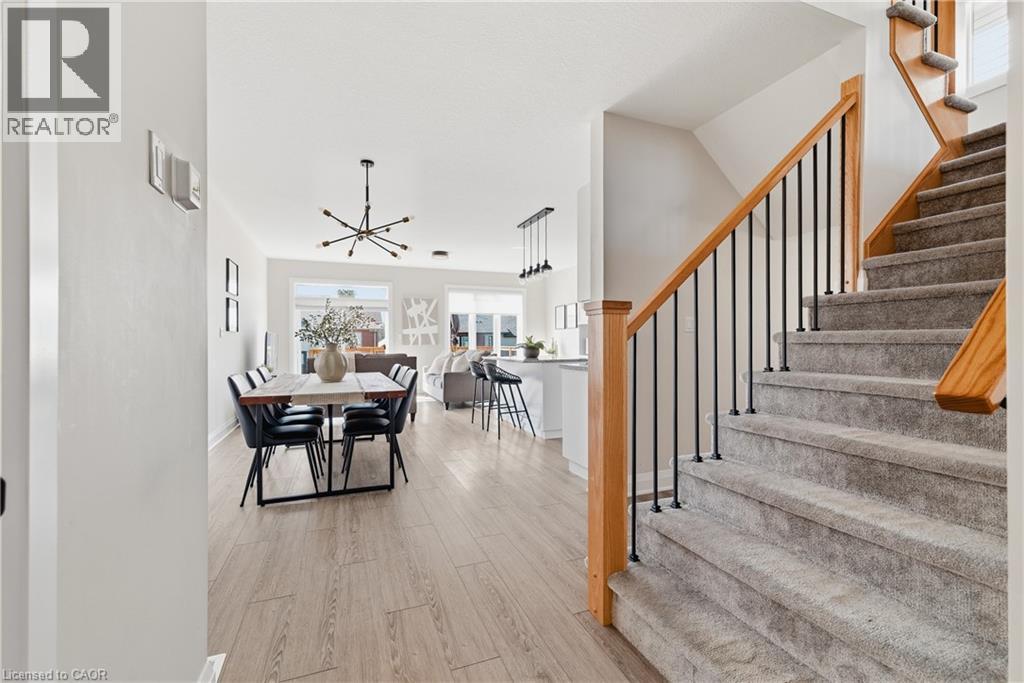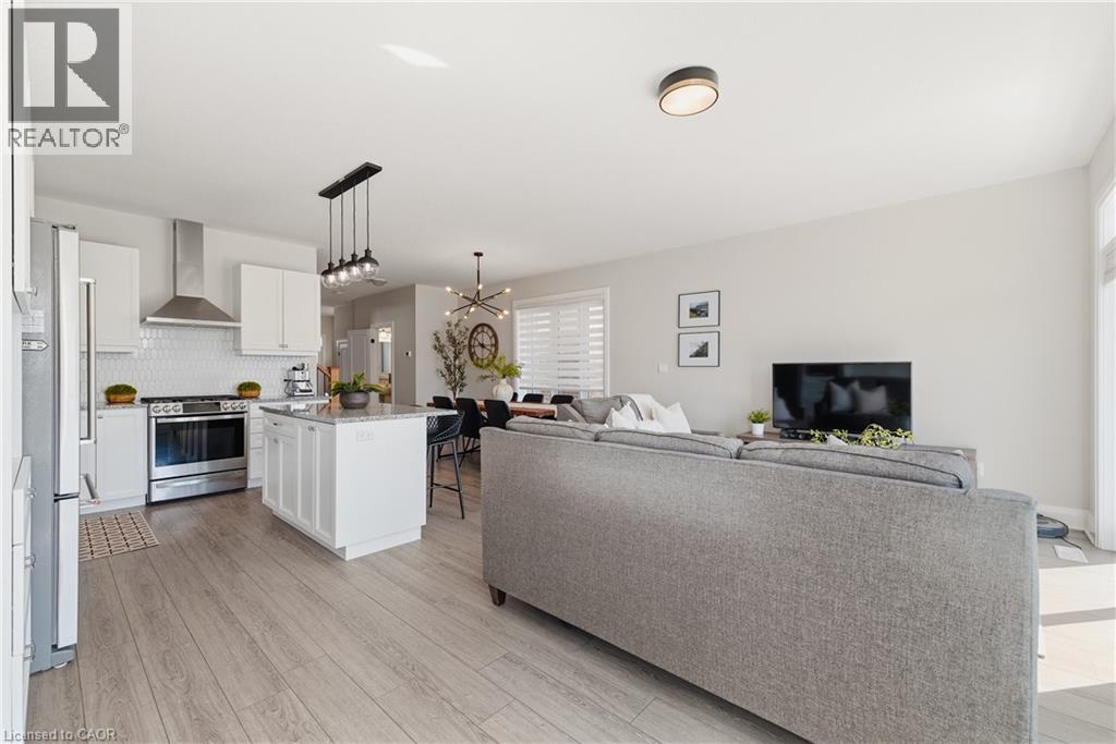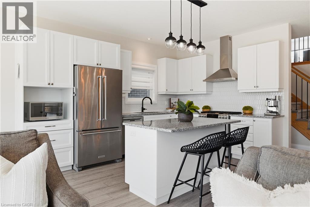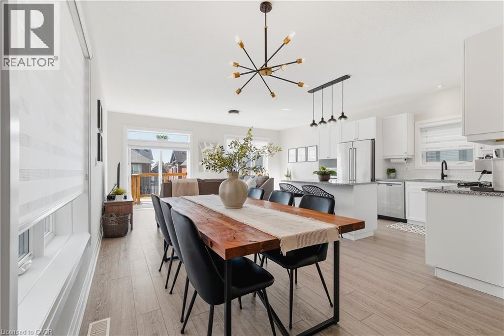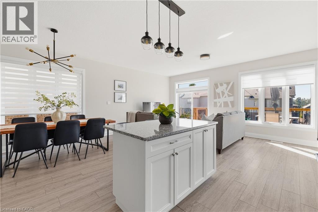 Welcome to 38 Sportsman Hill Street, a stunning detached home located in the highly sought-after Doon South neighbourhood of Kitchener, an ideal setting for families and commuters alike. Built in 2020, this beautifully maintained two-storey home offers modern finishes, thoughtful upgrades, and exceptional potential throughout. Step inside to an inviting open-concept main level featuring 9-foot ceilings and abundant natural light. The custom kitchen is a true standout, complete with granite countertops, quality cabinetry, and a functional layout that seamlessly connects to the living and dining areas, perfect for both everyday living and entertaining. Upstairs, you’ll find three spacious bedrooms along with a versatile bonus room featuring vaulted ceilings over 9 feet and large windows, ideal as a family room, home office, or easily converted into a fourth bedroom. The primary suite offers a luxurious retreat with an upgraded ensuite, showcasing a large freestanding tub and an oversized glass shower for a spa-like experience. The unfinished walkout basement presents incredible future potential, complete with a rough-in for a full bathroom, ready for your custom vision, whether it be an in-law suite, recreation space, or additional living area. Outdoor living is just as impressive, featuring a large elevated deck (built in 2021) with stairs leading down to a fully fenced backyard (completed in 2022), perfect for relaxing, entertaining, or enjoying time with family. The extended driveway accommodates two vehicles in addition to the single-car garage. Located just minutes from Highway 401, this home provides excellent connectivity for commuters. Enjoy the convenience of being within walking distance to several parks, and close proximity to both public and Catholic schools, making it an excellent choice for growing families. A rare opportunity to own a stylish, move-in-ready home in one of Kitchener’s most desirable communities, this property truly has it all. (id:50787)