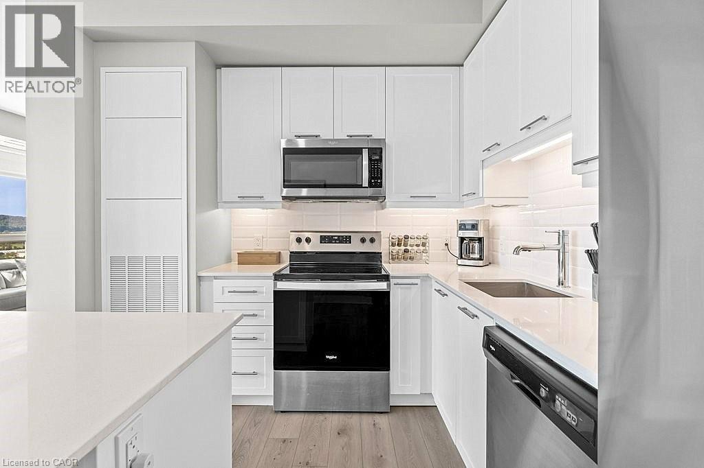 $614.28 MonthlyLOVE THE LAKESIDE LIFESTYLE! Feel this vibrant Grimsby-On-The-Lake hot spot as you enjoy the fresh breezes, breathtaking views of Lake Ontario, Niagara Escarpment and picturesque sunsets! Steps to the lake, trails, many shops & restaurants with Hwy access right off the road. Rare corner unit offers 2 balconies, facing south and west. Floor to ceiling windows to let that sunshine pour in. 2 Bedrooms & 2 Bathrooms with nearly 1,000sq ft of living space. Gleaming floors and counters, modern finishes and many updates throughout. Be amazed as you step into the open kitchen and living room, seeing clear skies and blue waters. Master bedroom offers a private ensuite as the 2nd bedroom is spacious enough for your larger furniture. Stackable laundry in unit, 1 Parking & 1 Locker space. Stylish, modern and young building that includes so much: 24hr concierge, massive rooftop patio/BBQ lounge and party room, fitness and yoga rooms & even a dog spa. You'll fall in love with YOUR next home! (id:50787)