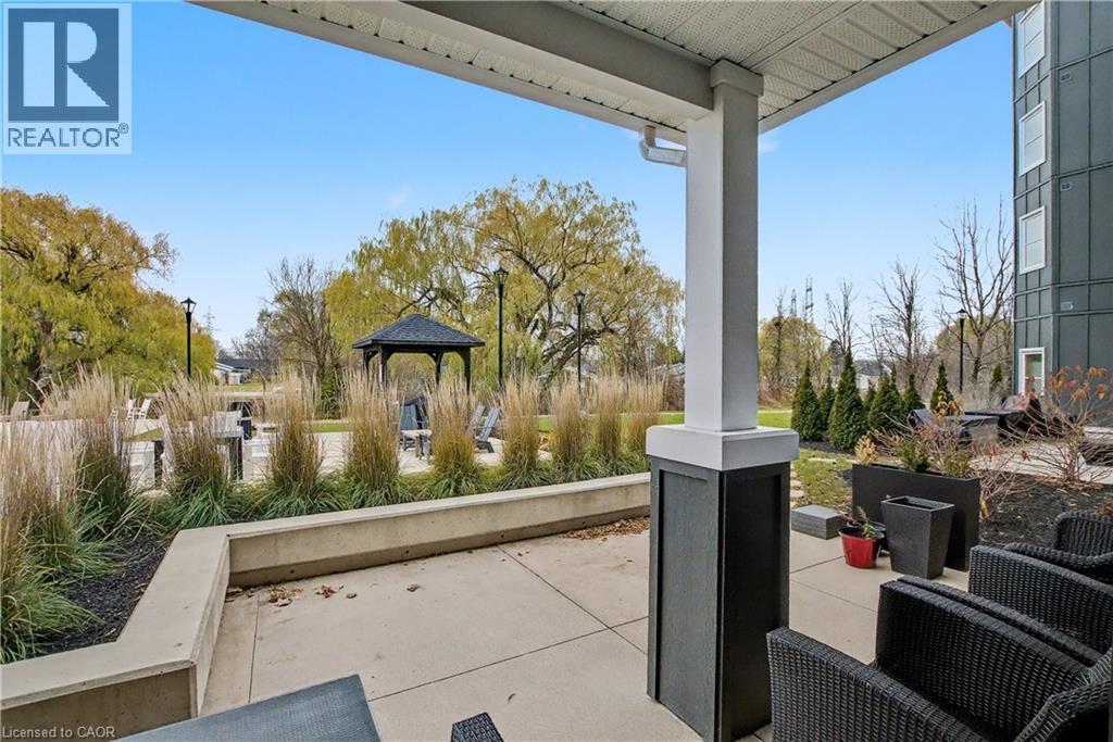 Welcome to the Upper Mill Pond apartments at St. Elizabeth Village, a gated 55+ community offering a vibrant lifestyle with modern conveniences. This home is one of the larger one bedroom layouts at 890 square feet and features open concept living with soaring 10 foot ceilings and luxury vinyl flooring throughout. The kitchen flows seamlessly into the spacious living and dining area and includes a peninsula with seating for casual meals or entertaining. The living space is bright and welcoming, with South-facing windows that fill the home with natural light all day. Step outside to the large 384 square foot private outdoor terrace, available exclusively to this unit, providing a rare opportunity for outdoor living and entertaining. The home has been tastefully updated with wainscoting throughout, a custom stone fireplace in the living room, and built-in cabinets in the bedroom for added storage. Additional conveniences include underground parking and a private storage locker. Residents of this building enjoy access to outstanding amenities including a heated indoor pool, gym, saunas, hot tub, and golf simulator. The Village also offers a wide range of services just steps away such as a doctors office, pharmacy, massage clinic, and public transportation. Within a five minute drive you will also find grocery stores, shopping, and restaurants. This home combines thoughtful updates, a unique outdoor terrace, and a welcoming community atmosphere, creating an exceptional opportunity to enjoy all that St. Elizabeth Village has to offer. (id:50787)
