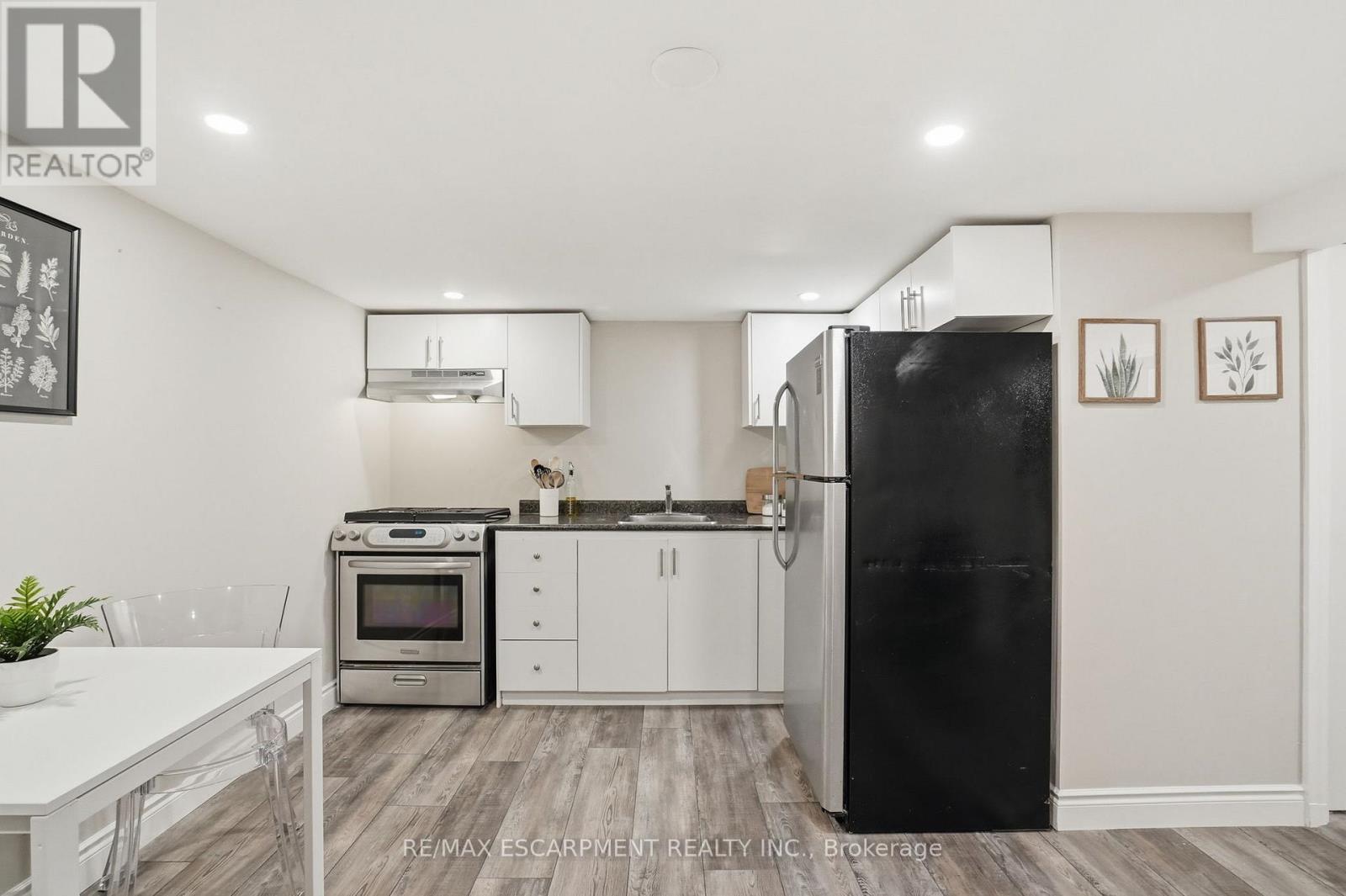 Completely remodelled brick bungalow in the sought-after Kirkendall neighbourhood, just a 2-minute walk to Locke Street. Enjoy boutique shops, cafés, and top-rated restaurants right at your doorstep. This versatile property offers a main home plus an in-law suite with an optional separate entrance. The main floor features luxury vinyl plank flooring throughout and a sun-filled living room. An optional bedroom or home office is tucked just off the main space, ideal for privacy and separation from the other two bedrooms. The bright white eat-in kitchen is complete with stainless steel appliances, a large island, and quartz countertops. A stylish 4-piece bathroom and convenient main floor laundry complete this level. The modern lower-level suite includes 1 spacious bedroom with room for an art easel, yoga space, or a comfortable work-from-home setup. A full kitchen, dining area, and separate laundry room make it ideal for rental income, house hacking, or multi-generational living. Updates include 2024 roof shingles and fresh paint throughout. The fully fenced, low-maintenance yard offers privacy and space to relax or entertain. Detached garage plus 2-car driveway parking is very rare for this location. Located in a vibrant, walkable neighbourhood just steps to Locke Street, with local favourites like CIMA Enoteca, Donut Monster, Bardo, and The Gym on Locke nearby, plus a popular dog park! Additional amenities are just minutes away, including McMaster University (9 min), Waterdown (9 min), Ancaster Meadowlands (13 min), and Burlington (15 min). Set on a quiet, tree-lined street surrounded by charming century homes, with quick highway access and close proximity to downtown. A rare opportunity to own a turnkey home in one of Hamilton's most walkable and vibrant communities. (id:50787)