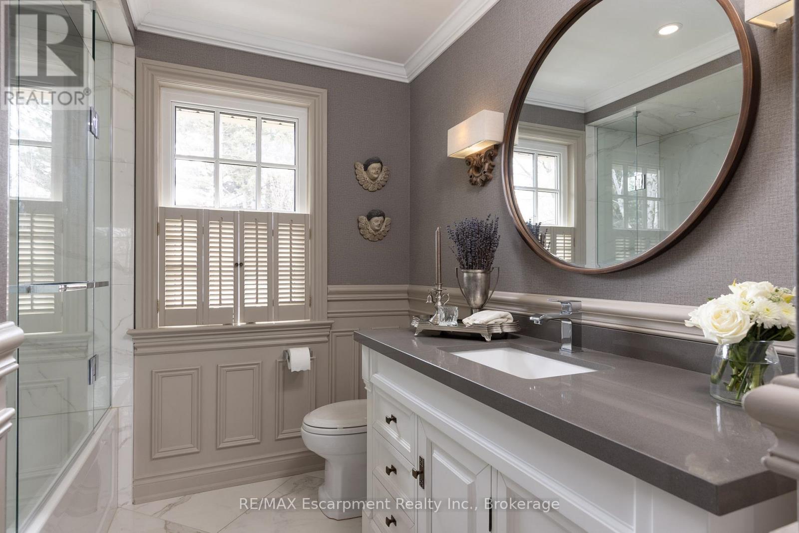 Tucked into one of Oakville's sought-after neighbourhoods, 392 Aspen Forest Drive is a home professionally and thoughtfully reimagined through a complete renovation where every detail reflects craftsmanship, comfort, and modern family living. Taken "back to the studs" and meticulously renovated between 2021-2022, this three plus one bedroom, four-bathroom residence offers 3,177 total square feet, blending timeless design with contemporary function across all three levels. From the moment you step inside, warm tones and custom millwork in the library with a coffered ceiling set the stage, offering a refined space separate from the main living area. The open concept main floor invites connection, from quiet mornings in the sunlit kitchen to evenings gathered around the island. At the heart of the home, a beautifully designed kitchen by Millbrook Cabinetry offers both elegance and practicality, featuring quartz surfaces, integrated storage, and premium appliances. The living room, with its gas fireplace finished in travertine tile and media wall, creates a perfect space to unwind, while the dining area opens seamlessly to the outdoors. Upstairs, three well-appointed bedrooms provide comfort and privacy, including a serene primary retreat with a spa-inspired ensuite. The fully finished lower level extends the living space with a cozy rec room and office with electric fireplace, a stylish 3 piece bath, and a versatile fourth bedroom ideal for guests or a growing family. Outside, a private southwest facing backyard offers a peaceful setting with mature trees, curated gardens, and stonework, perfect for relaxing or entertaining. Close to top ranked schools, parks, trails, transit, and downtown Oakville, this is more than a home it's a lifestyle ready to be lived and loved. (id:50787)
