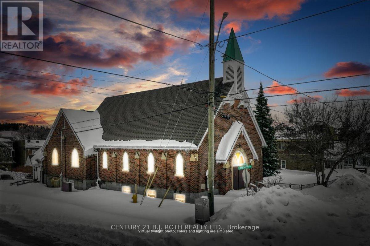 Rare opportunity to acquire a well-maintained church property in a central Sudbury location. Situated on a generous lot in a mature neighbourhood, this property offers excellent potential for a variety of uses. The existing building features a large sanctuary, meeting rooms, offices, and ample common space, making it well-suited for continued religious use, community programming, institutional purposes, or potential redevelopment subject to municipal approvals. On-site parking available. Solid structure with flexible layout ideal for investors, organizations, or groups seeking space with character and functionality. Conveniently located with easy access to surrounding residential areas, transit, and amenities. Property being sold in as-is condition. Buyers to complete their own due diligence regarding zoning and permitted uses. Additional parking can potentially be created off Antwerp and Jean Ave. (id:50787)