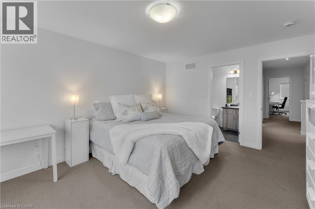 Welcome to this Losani-built freehold townhome in the highly desirable Vista Ridge community of Beamsville, offering nearly 1,500 sq ft of modern living space with no condo fees. Perfect for first-time buyers, young families, or professionals commuting to Hamilton or the GTA, this 3-bedroom, 3-bathroom home features a bright open-concept main floor with 9-foot ceilings, hardwood flooring, and a stylish kitchen with quartz countertops, a large breakfast island, extended cabinetry, under-mount lighting, and pot lights. Upstairs you'll find three spacious bedrooms including a primary suite with walk-in closet and ensuite bath, plus convenient bedroom-level laundry. The unfinished basement provides excellent potential for future living space, while the attached garage offers inside entry for everyday convenience. Ideally located just minutes from local schools, parks, shops, restaurants, Niagara wine country, and quick QEW access, this home delivers the perfect balance of comfort, lifestyle, and commuter convenience in one of Beamsville's most sought-after neighbourhoods. (id:50787)