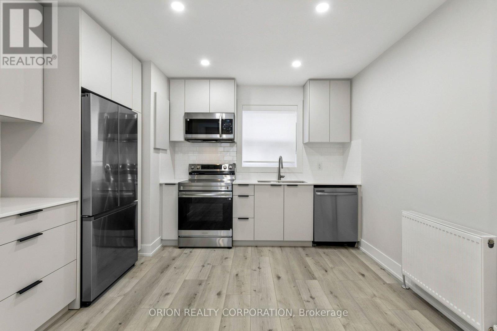 Stunning fully renovated 2-bedroom main floor apartment in prime South Etobicoke, just steps to Lake Ontario and Prince of Wales Park. Located on a quiet residential street in one of Etobicoke's most desirable lakefront neighbourhoods, this bright and spacious suite offers modern finishes and excellent natural light throughout.The thoughtfully designed layout features a brand new modern kitchen with stainless steel appliances, quartz countertops, modern cabinetry, and stylish finishes, opening into a comfortable living space with pot lights and large windows that create a bright and welcoming atmosphere. Two well-sized bedrooms and a sleek renovated bathroom complete this beautifully updated unit. Enjoy waterfront living just a short walk to Lake Ontario, parks, and scenic waterfront trails, while still being conveniently close to shops, transit, and easy access to the Gardiner Expressway and downtown Toronto. Soon to be a brand new coin-operated laundry located in the building. Surface parking available at the rear of the property (new asphalt scheduled for the driveway and parking).This unit and the building has undergone extensive capital improvements, with further renovations underway or scheduled, including a full renovation of the unit (March 2026) with new insulation, windows, kitchen cabinets and counter-tops, bathroom, doors, lighting, flooring and paint, stainless steel appliances, faucets, vanity, toilet, bathtub, and more. An excellent opportunity to live in a quiet, well-maintained multiplex in the heart of South Etobicoke's waterfront community. Please note that the photos are of an identical unit one floor above and are for demonstrative purposes to show expected final look and finishes. The unit will be ready for occupancy April 15th and is in final stages of renovations, but can be viewed in person. Ideal for professionals seeking a quiet, well-maintained building close to the waterfront, parks, and transit. (id:50787)
