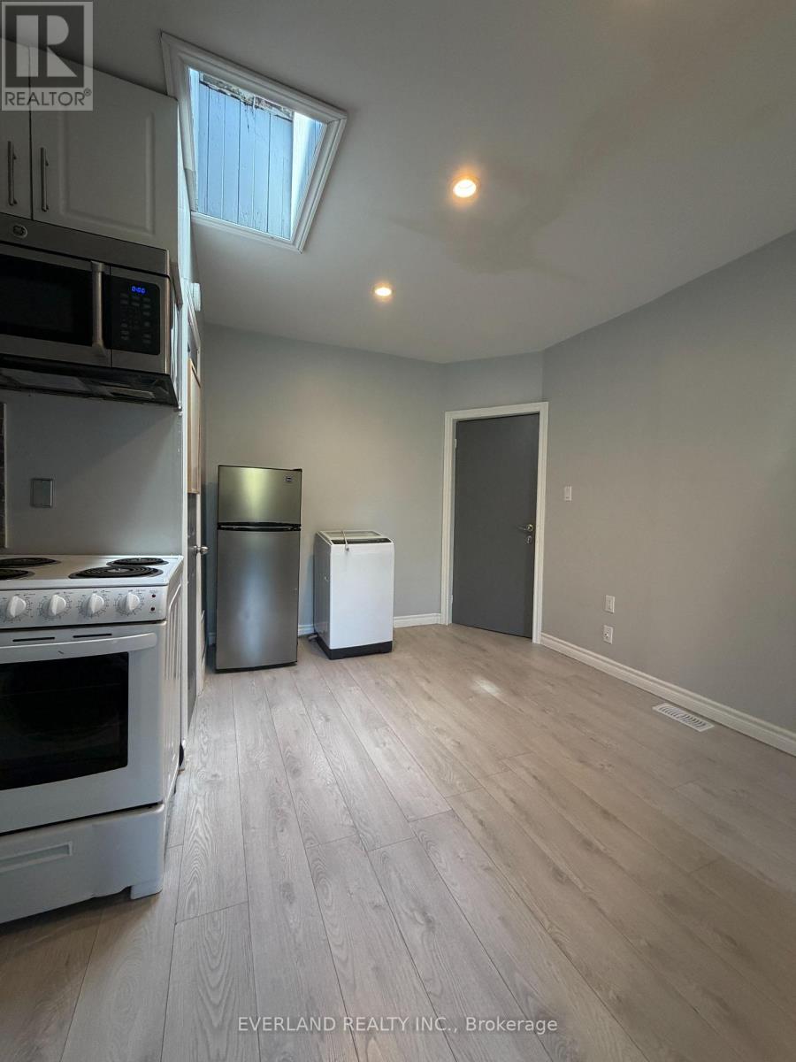 Steps from the subway and bus terminal, This bright two-bedroom apartment suite offers a functional layout with modern finishes and plenty of natural light. The unit features two separate bedrooms with large windows, light wood-style flooring, and neutral grey walls for a clean, contemporary feel. The kitchen includes a stove, microwave, refrigerator, and overhead skylight that enhances brightness in the main living area. A full bathroom with bathtub and in-suite washer and dryer provide everyday convenience. Overall, the space is practical, easy to maintain, and ready to be personalized for comfortable living. (id:50787)