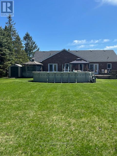 Discover the perfect blend of comfort, space and lakeside living in this custom built bungalow, nestled in the sought-after Lakeside Village Community on Sturgeon Lake. Proudly offered by its original owner, this thoughtfully designed home features a unique layout with, 4' wide hallways, 32" interior doors as well as elegant radius corners. Step into the welcoming foyer and experience true open concept living. The great room is ideal for both everyday comfort and entertaining, complete with hardwood flooring and a cozy propane gas fireplace. Enjoy meals bathed in natural light in the separate dining room, or unwind in the inviting living room - perfect for quiet conversation or evening cocktails. The well appointed kitchen overlooks beautifully manicured half acre grounds. From the breakfast area, walk out to an expansive deck designed for outdoor living, featuring a dining space and a covered gazebo - perfect for relaxing or entertaining on sunny days. Convenient main floor laundry room with garage access. Your private backyard oasis awaits, complete with an above ground pool and a secluded hot tub creating a true staycation right at home. As part of the Lakeside Community, enjoy exclusive access to the 10 acre common area with docks on Sturgeon Lake, along with community events and a shared water irrigation system. The primary bedroom is a peaceful retreat, featuring its own walkout to the deck and gardens, a spacious walk-in closet and a luxurious ensuite with a separate shower and jetted tub. The second bedroom, currently used as a home office, can accommodate the needs of a growing family. The finished lower level offers incredible versatility, including a large great room, 3 piece bath with shower, an additional bedroom with mirror closet doors, and a den - ideal for guests or extended family. A generous unfinished workshop area provides endless potential for customization and ample storage. (id:50787)