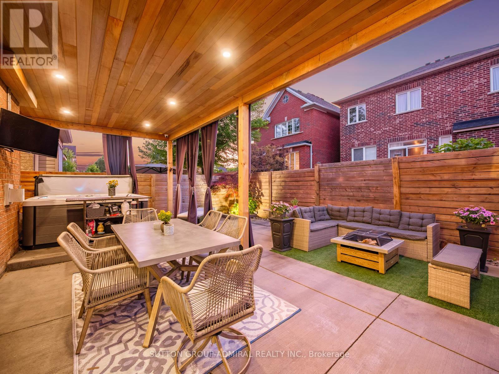 Located in a quiet, family-friendly pocket of Markham near top-rated schools, beautiful parks, and convenient amenities, 4 Haywood Drive offers the perfect blend of suburban comfort and city accessibility. This beautifully 4 bed, 4 bath upgraded home combines style, function, and thoughtful detail throughout. Step inside to a main floor featuring rich hardwood flooring and elegant wainscoting in the living and dining areas, creating a warm and refined atmosphere for everyday living and entertaining. The kitchen is both functional and stylish with granite countertops, ceramic flooring, and a unique layout offering separate upper and lower pantry spaces while opening up to the family room featuring a gas fireplace for cozy nights at home. Upstairs, you'll find 4 spacious bedrooms with hardwood floors and Cat 4 wiring, while ceramic tile enhances both second-floor bathrooms. The fully finished basement extends your living space with a versatile rec area and man cave featuring a built-in wall unit with included speakers, a granite-topped bar with mini fridge, a sleek bathroom with granite sink, three storage rooms, a cold room, smooth ceilings with energy-efficient pot lights, and durable laminate flooring throughout, with ceramic in the bar and bathroom. The oak staircase and handrails add warmth and character. Outside, enjoy a private backyard retreat with stamped concrete, a pergola with integrated pot lights, and a hot tub for year-round relaxation. Professionally landscaped with three Japanese Maple trees and enhanced by exterior and garden lighting on timers, the homes curb appeal is matched by function, with a stamped concrete driveway that fits two cars plus garage parking for one. Additional features include Central Vacuum, CCTV, built-in basement speakers, a garage door opener with remote, and an alarm system, offering a complete package of comfort, convenience, and modern living. (id:50787)