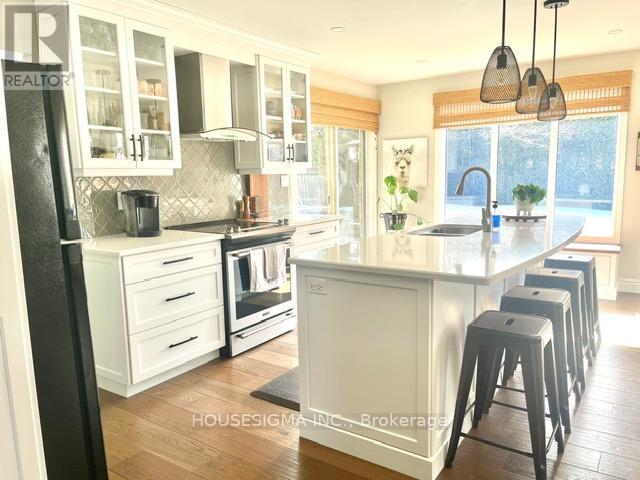 Welcome to this spacious 4+1 bedroom, 4 bathroom two-storey home offering over 3,000 sq ft of finished living space in the highly sought-after Kortright Hills neighbourhood of Guelph. Known for its quiet streets, mature trees, and family-friendly atmosphere, this area offers quick access to parks, scenic walking trails, excellent schools, the Hanlon Expressway, and south-end amenities.The main floor offers exceptional space and flexibility, featuring both a living room and separate family room-a sought-after layout that provides privacy and room for everyone. Whether entertaining guests or enjoying a quiet evening at home, the distinct living spaces offer comfort and versatility. The bright kitchen and open living area overlook a spacious backyard, made wonderfully private by a lush natural cedar hedge. Upstairs you'll find four generously sized bedrooms, including a primary suite with its own built-in sitting room, ensuite bathroom, and ample closet space-a relaxing retreat at the end of the day. The second bedroom also features a built-in sitting room, ideal for reading, studying, or quiet workspace.The finished basement adds valuable living space with a fifth bedroom, additional bathroom, and large recreation area, perfect for guests, teens, or a home office or gym.Outside, the beautifully maintained interlock driveway offers parking for up to 7 vehicles. The backyard is framed by towering 20-foot cedars for added privacy and features recent hardscaping with raised garden beds, a stone patio along the driveway edge, and a welcoming stone front deck-perfect for outdoor relaxation and entertaining.A fantastic opportunity to enjoy space, comfort, and one of Guelph's most desirable neighbourhoods. (id:50787)