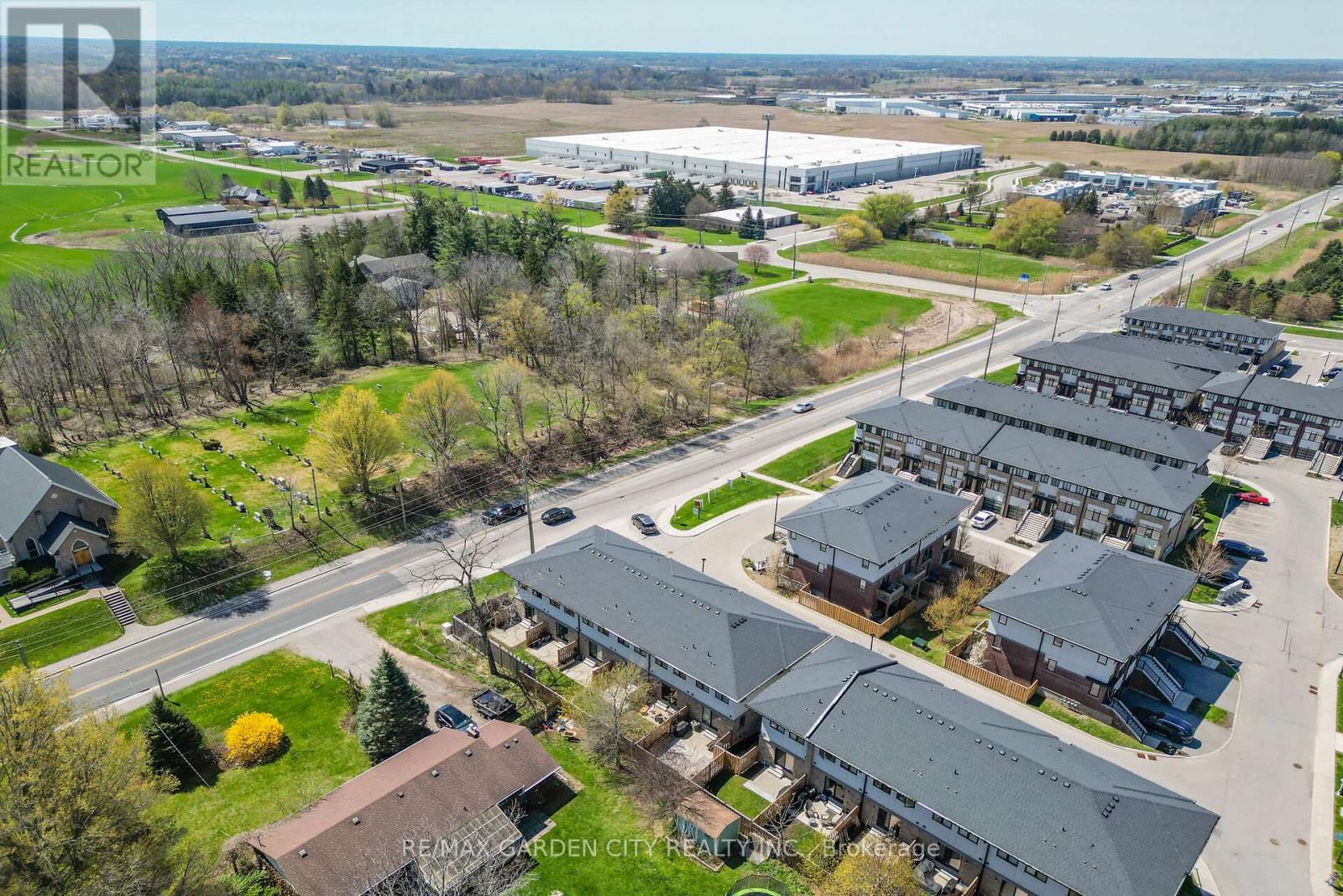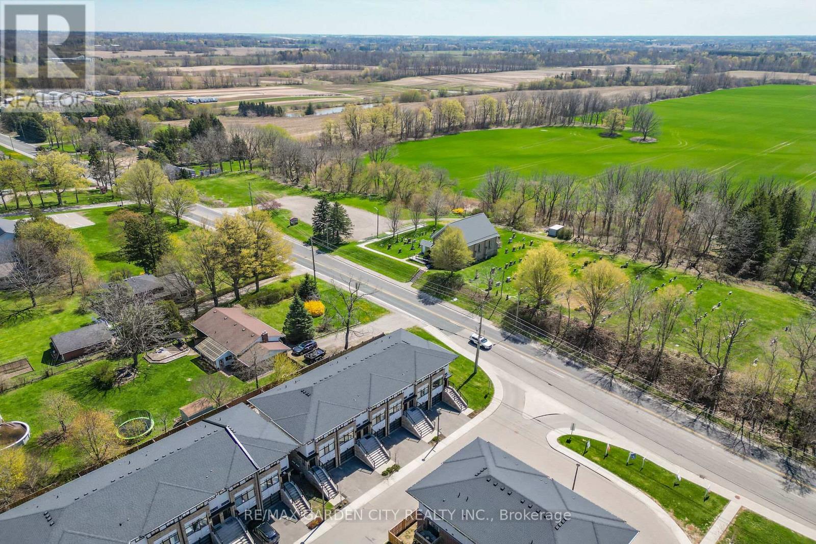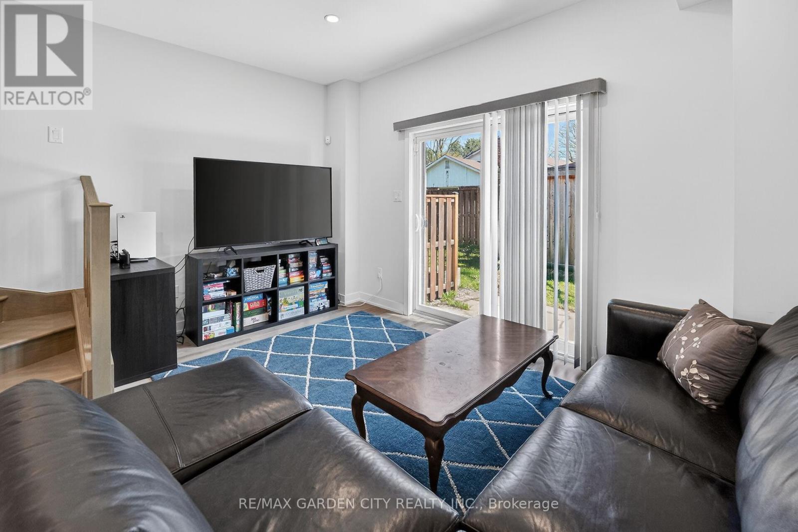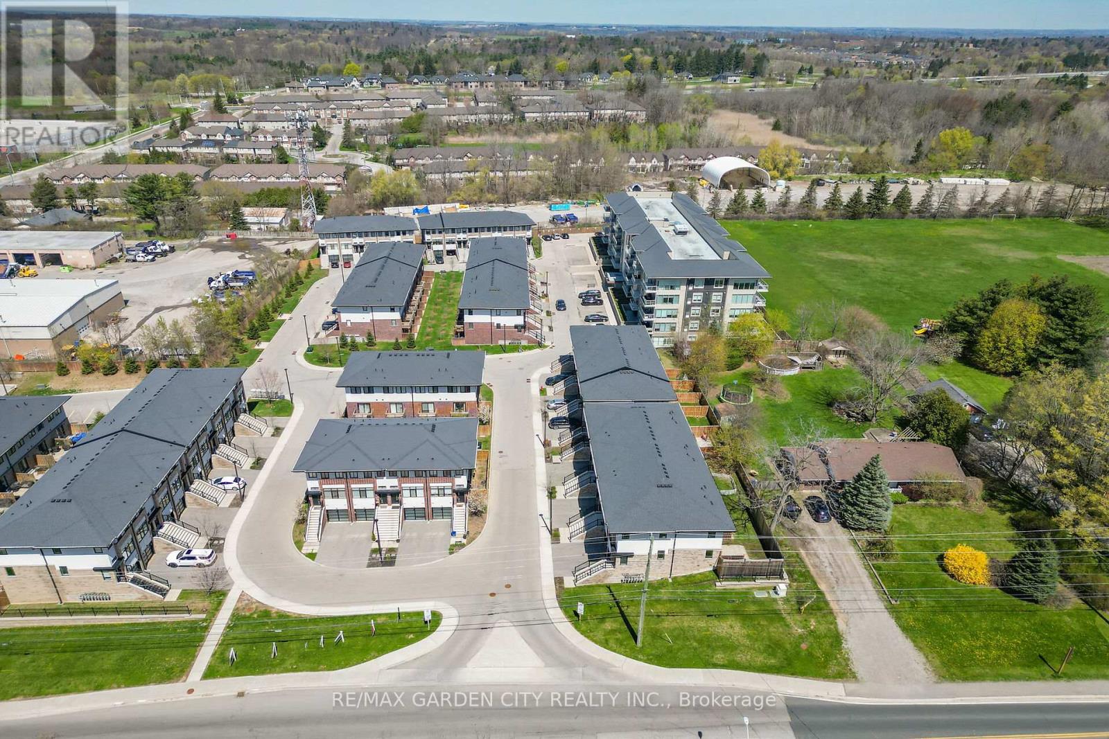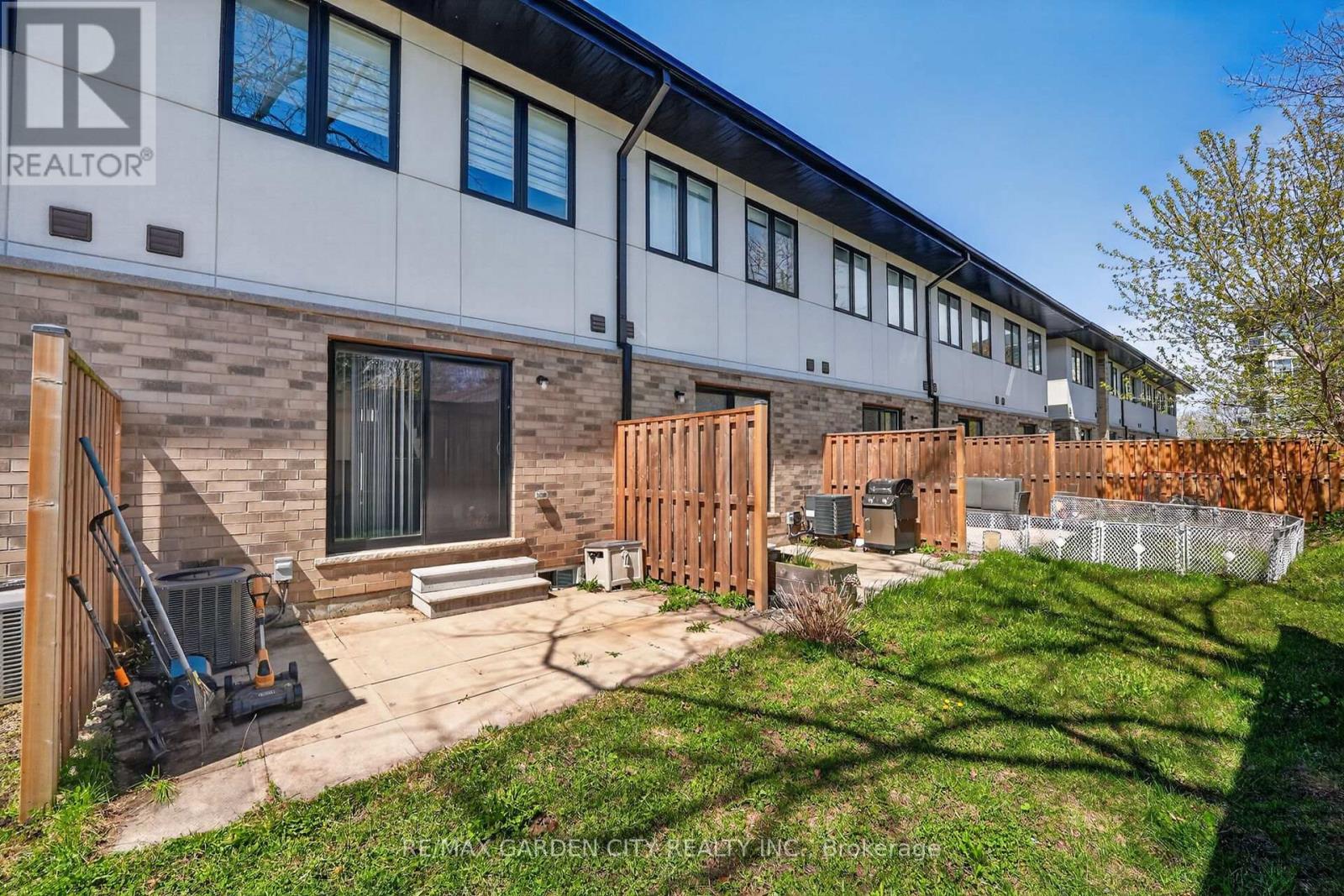 This stunning, move-in-ready 3-storey townhome showcases modern design and high-end finishes throughout. The bright, open-concept main floor features 9-foot ceilings, oversized windows, and elegant pot lighting, creating an inviting space perfect for both everyday living and entertaining. The chef-inspired kitchen is a true highlight, complete with quartz countertops, an under-mount stainless steel sink, a stylish subway tile backsplash, under-cabinet lighting, a spacious island with breakfast bar, and brand-new stainless steel appliances. Upstairs, the spacious primary suite offers a rare and highly desirable private ensuite bath, while the home also includes an additional full bathroom and a convenient powder room-providing exceptional functionality for families and guests alike. Enjoy seamless indoor-outdoor living with a private main floor patio and a walk-out to the backyard-perfect for relaxing or hosting. All levels of this home feature carpet-free floors. With impressive curb appeal, the stucco and brick exterior is complemented by a single-car garage, private driveway, and visitor parking. Located near Ancaster's SmartCentres (Walmart, Longo's, GoodLife Fitness, Lowe's and more), and just minutes from parks, schools, and Hamilton Health Sciences. Commuters will love the easy highway access, while being only a 15-minute drive to McMaster University, Mohawk College, and Redeemer University. Public transit is also within walking distance. (id:50787)