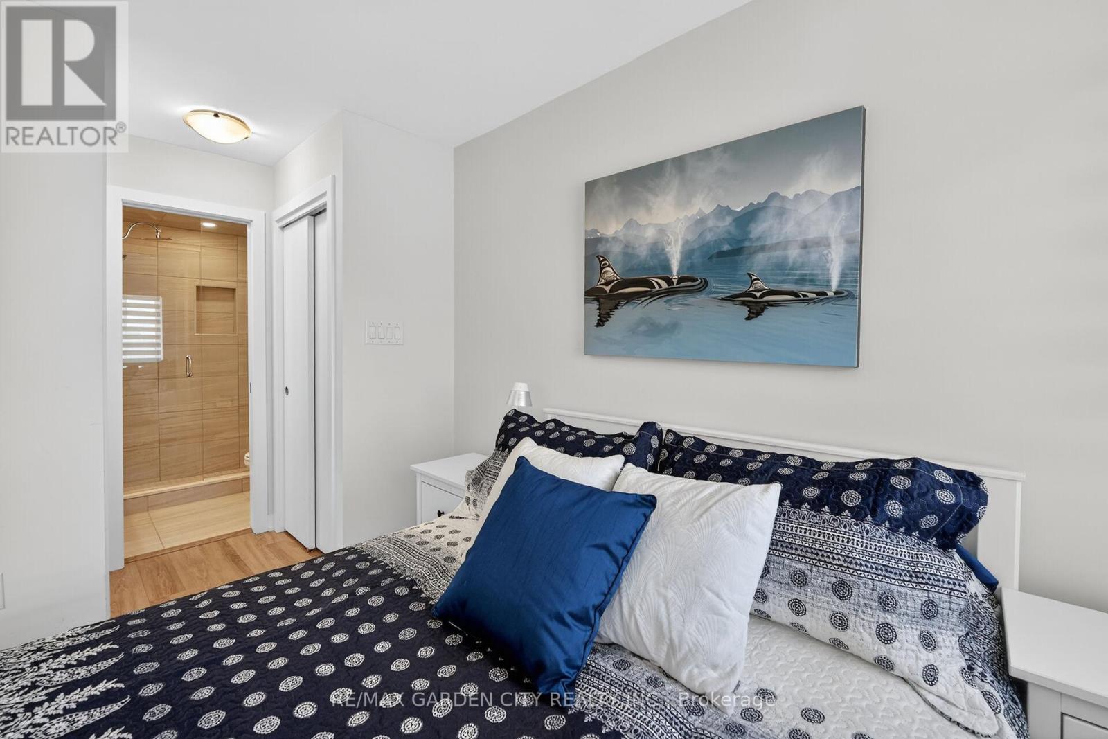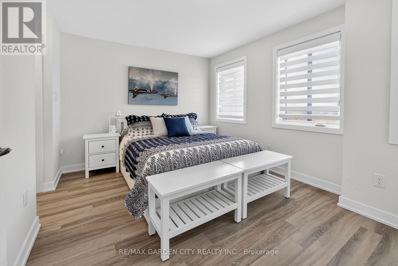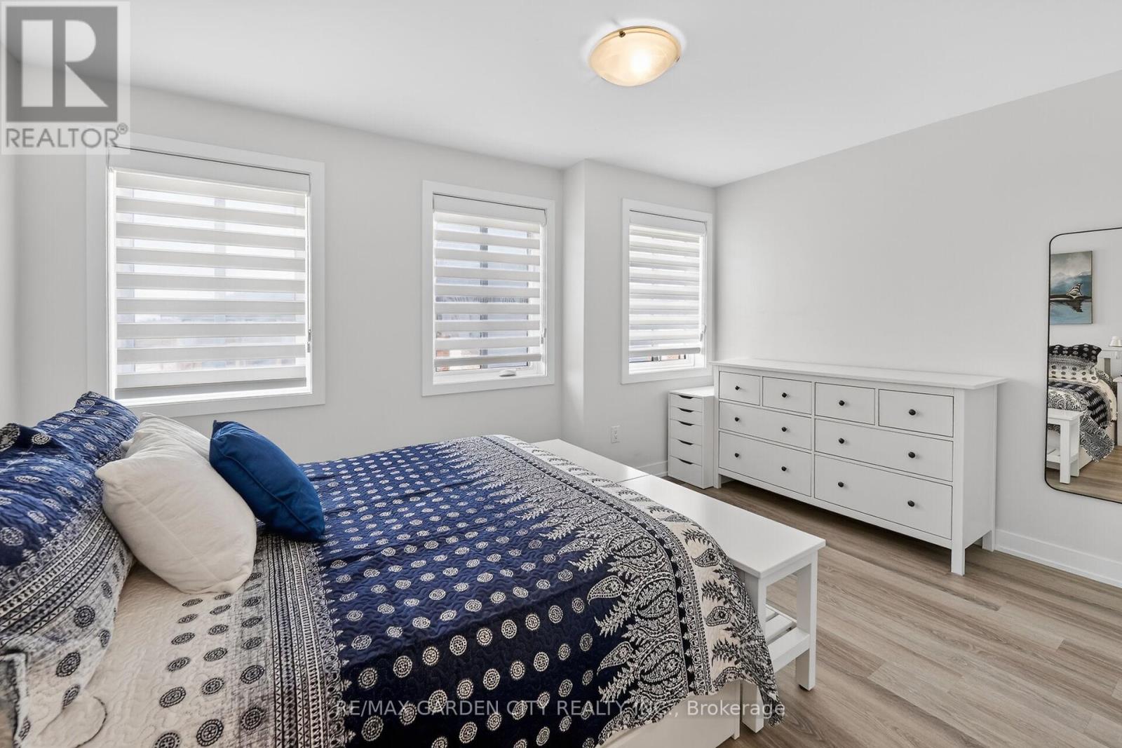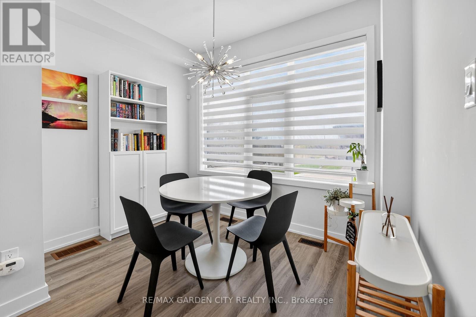 This stunning, move-in-ready 3-storey townhome showcases modern design and high-end finishes throughout. The bright, open-concept main floor features 9-foot ceilings, oversized windows, and elegant pot lighting, creating an inviting space perfect for both everyday living and entertaining. The chef-inspired kitchen is a true highlight, complete with quartz countertops, an under-mount stainless steel sink, a stylish subway tile backsplash, under-cabinet lighting, a spacious island with breakfast bar, and brand-new stainless steel appliances. Upstairs, the spacious primary suite offers a rare and highly desirable private ensuite bath, while the home also includes an additional full bathroom and a convenient powder room-providing exceptional functionality for families and guests alike. Enjoy seamless indoor-outdoor living with a private main floor patio and a walk-out to the backyard-perfect for relaxing or hosting. All levels of this home feature carpet-free floors. With impressive curb appeal, the stucco and brick exterior is complemented by a single-car garage, private driveway, and visitor parking. Located near Ancaster's SmartCentres (Walmart, Longo's, GoodLife Fitness, Lowe's and more), and just minutes from parks, schools, and Hamilton Health Sciences. Commuters will love the easy highway access, while being only a 15-minute drive to McMaster University, Mohawk College, and Redeemer University. Public transit is also within walking distance. (id:50787)
