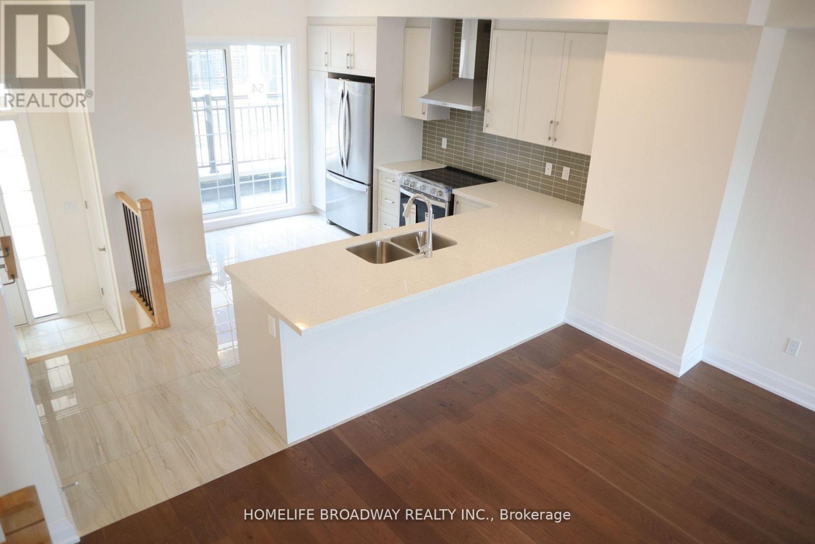 $157.96 MonthlySouth facing town house with unobstructed view, all bedrooms with private ensuite, granite countertop thru-out, extended upper cabinetry, backsplash, kitchen LED spotlights, canopy range hood, engineering hardwood flooring , upgraded Oak staircase with premium steel pickets, 6" baseboards with 2.75" casing with door step, open concept kitchen, 2 tandem car garage, Goodlife Fitness, banks, community center (id:50787)
