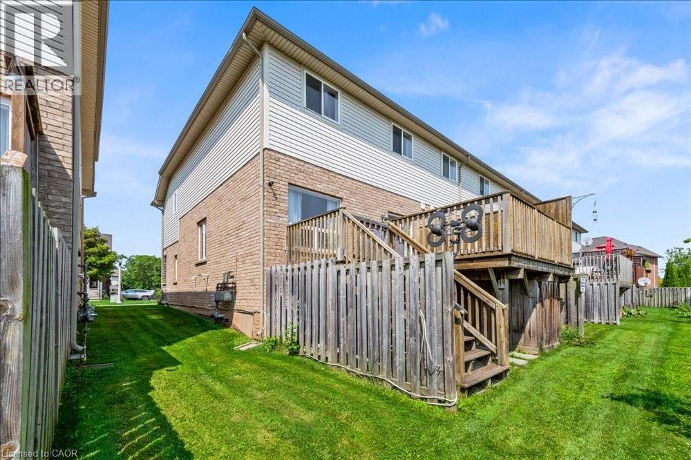 $250 MonthlyDiscover your serene oasis at 40 Dartmouth Gate in the highly desirable, family-friendly Stoney Creek neighbourhood!This spectacular corner townhouse boasts 3 spacious bedrooms plus 4 bathrooms, flooded with natural light and backing directly onto peaceful green space for added privacy and tranquility.Enjoy the fabulous location just a short walk to Lake Ontario, with quick access to the QEW, GO stations, Costco, and an abundance of shopping and amenities.Premium updates and features include:Granite countertops in the kitchen and all bathrooms, Beautiful hardwood floors throughout the main and upper levels, Generous primary bedroom with a walk-in closet and private 3-piece ensuite. Fully finished basement featuring a versatile rec room, 2-piece bath, wet bar, and bar fridge. Expansive outdoor entertainment space with a deck off the kitchen and convenient under-deck storage. Recent upgrades ensure peace of mind and move-in readiness: New roof (2022), New furnace and A/C (2023), New dishwasher (2025), New water heater and water softener. This exceptional home combines modern comfort, thoughtful updates, and an unbeatable location-truly a rare find in Stoney Creek. Don't miss the opportunity to make it yours! (id:50787)