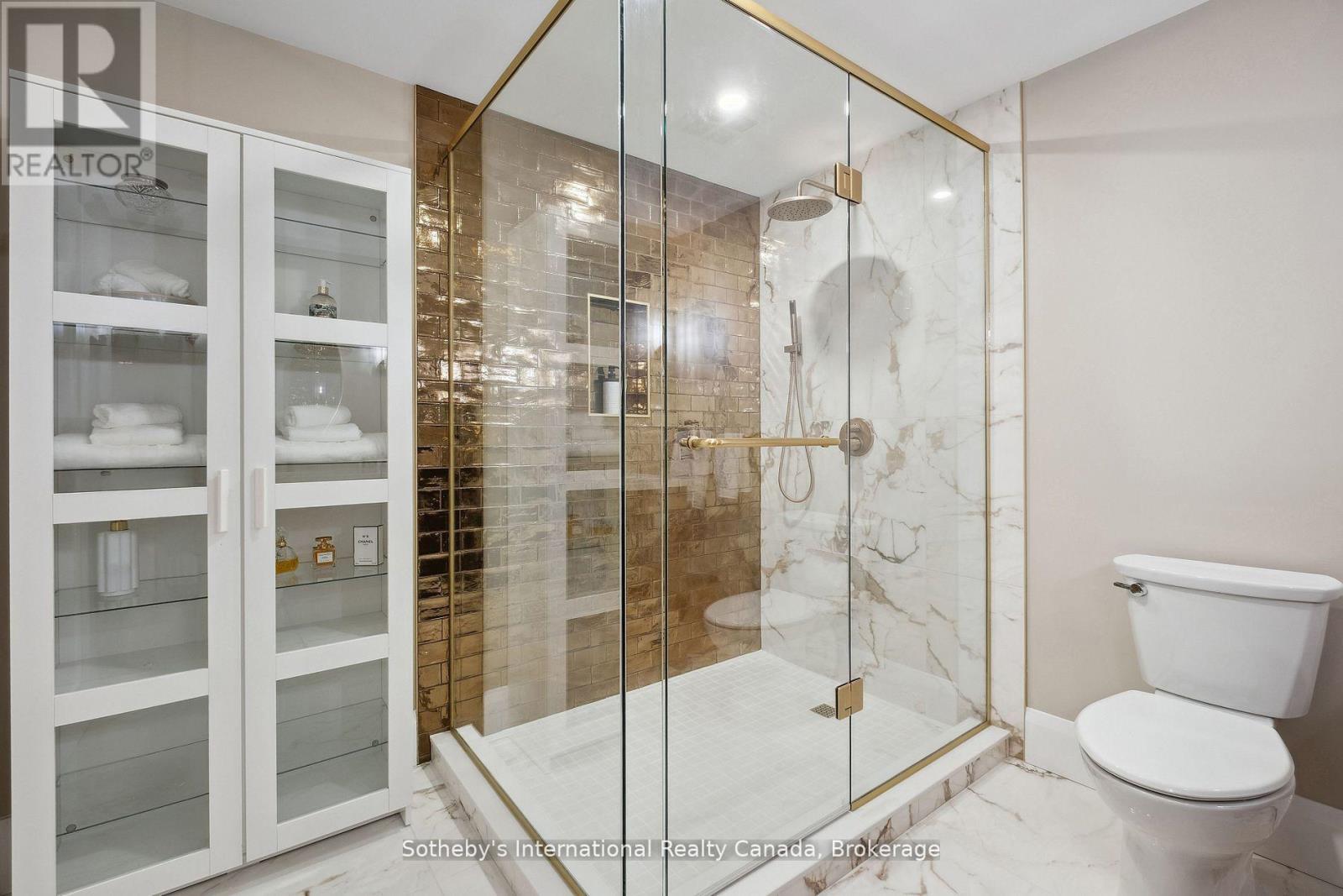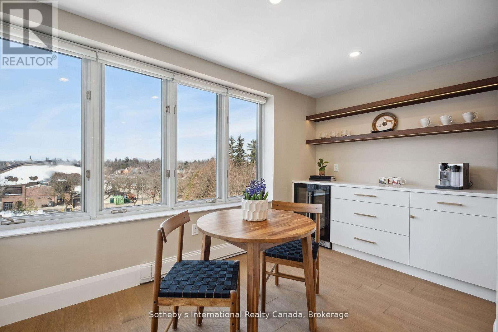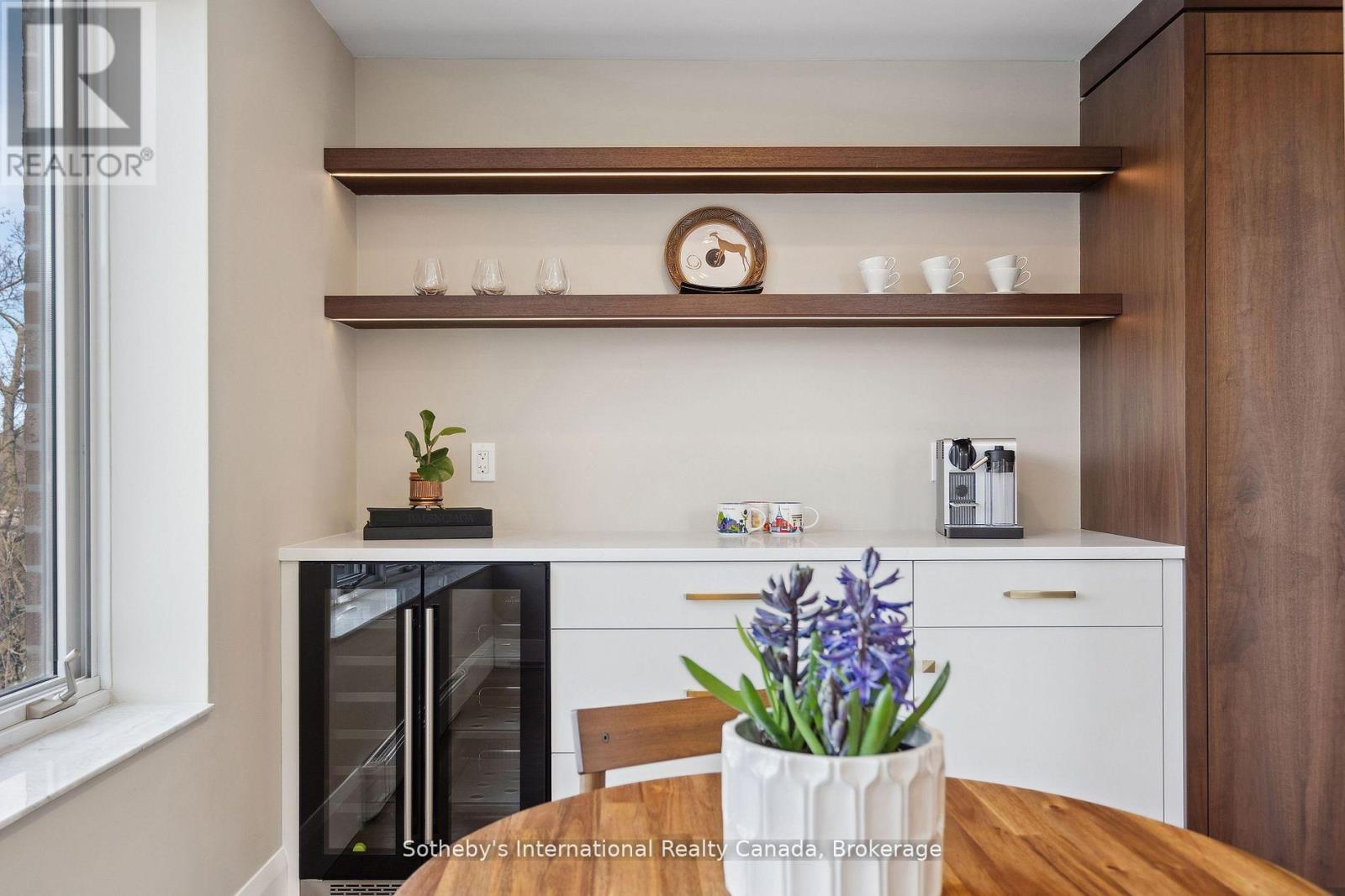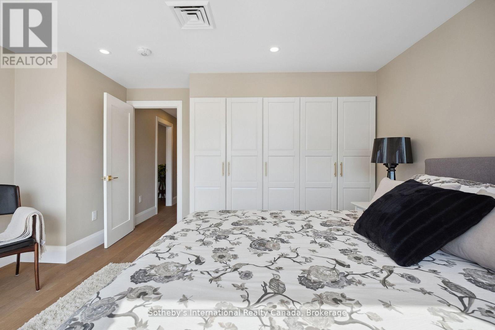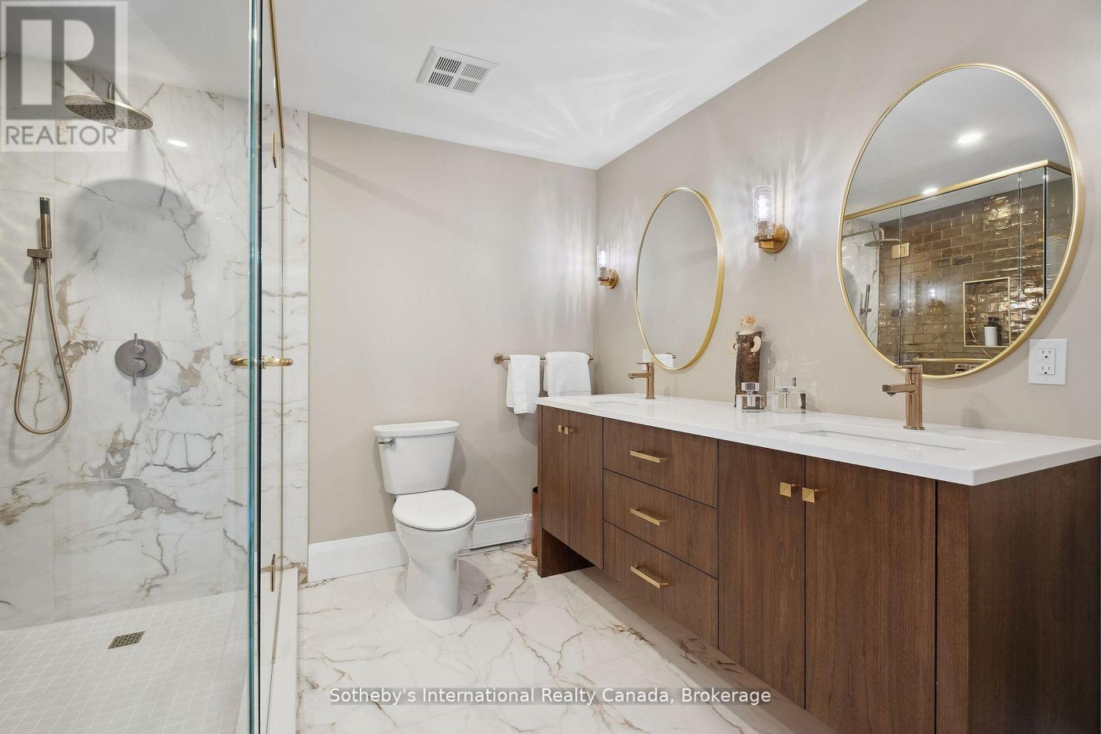 Perched above the picturesque Avon River, this spectacular penthouse at 30 Front Street isn't just a residence, it's a statement. A rare fusion of luxury, design, and location, this is where elevated living meets the cultural soul of Stratford. This one-of-a-kind suite redefines sophistication. Whether you're hosting champagne evenings on your private terrace or enjoying a quiet morning with theatre-district views, this penthouse is where your story unfolds and it's nothing short of extraordinary. Perfectly situated between the Festival and Tom Patterson theatres, this stunning top-corner unit offers an unbeatable location with southwest exposure, just steps from parks, restaurants, and all that downtown Stratford offers. This professionally redesigned residence at The Huntingdon boasts just over 1,500 sq. ft. of elegant living space with a smart, thoughtful layout. Featuring two spacious bedrooms with built-in closet systems, two full bathrooms with porcelain floors, and an inviting living room with vaulted ceilings, oversized windows, and a generous dining area, this suite is designed for comfort and style. A full wall of windows provides beautiful year-round views, while the large private corner terrace is perfect for morning coffee or evening cocktails. This floor plan includes added soundproofing, engineered European white oak flooring, and pot lights throughout. Custom walnut veneer cabinetry by Homestead Woodworking complements quartz countertops, a large island with extra storage, and top-tier integrated appliances: Fisher & Paykel wall oven, microwave, induction cooktop, and Bosch dishwasher. Includes deeded underground parking near the door and elevator, assigned locker, outdoor guest parking, controlled entry, visitor parking, and plans for EV charging. This pet-friendly, quiet building is home to professionals and theatre artists. Fully rebuilt with permits, this home offers a refined, maintenance-free lifestyle in Stratford's most desirable condo. (id:50787)