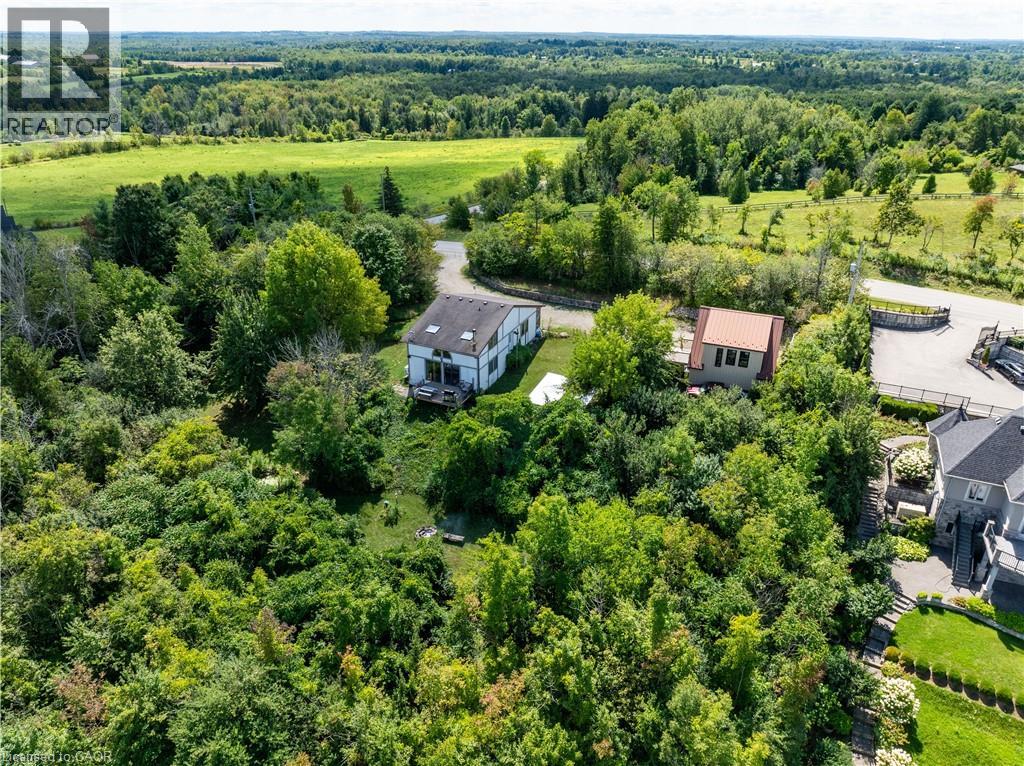 UNINTERRUPTED WATER VIEWS AWAIT YOU! Nestled atop one of the highest points in Puslinch and just minutes from the charming Campbellville equestrian community, this unique opportunity invites you to either build your dream home (initial drawings and survey available)or reimagine the existing structure on a generous 1-acre lot (225 x 194 feet). Experience a beautiful nature sanctuary with stunning views of Mountsberg Reservoir, which spans 472 acres outside your door. Each morning, wake up to vibrant sunrises illuminating your backyard. The recently constructed garage measures 24x28 ft and is fully insulated, featuring three layers of high-density foam beneath engineered wood siding. It is framed with sturdy 2x6 lumber, topped with a durable steel roof, and equipped with a 100 Amp electrical panel and an EV charger.With buried water and sewer lines running to the garage foundation, the upper level can easily be transformed into a workshop or studio apartment, enhancing the investment! This incredible setting isn't just a building lot; its also the perfect starter home for those dreaming of a country lifestyle that could become your family retreat. Currently, the property boasts a loft bungalow with an abundance of windows, a spacious great room, a luxurious kitchen ready for culinary adventures, and sleeping quarters with both a main floor bedroom and a whimsical loft bedroom. Theres also a wood stove, heat pumps, and AC. You'll also love the charming cordwood garden shed. Conveniently located close toHighway 401, commuting to Guelph, Burlington, Hamilton, and the GTA is easy. Experiences awaits nearby, including a boat launch where you can fish or paddle in your kayak or non-motorized boats. Additionally, you'll discover a variety of beautiful hiking trails and excellent fishing opportunities in the area, all surrounded by breathtaking scenery. Start planning your visit and be first in line for your new lifestyle and investment today! (id:50787)